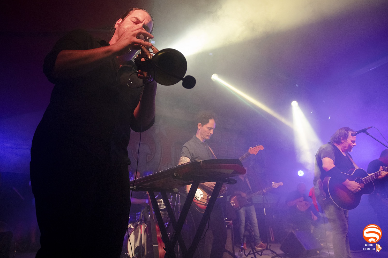 Sul palco, insieme a Cisco, erano presenti Alberto Cottica (fisarmonica), Marco Michelini (violino), Giovanni Rubbiani (chitarra), Massimo Giuntini (bouzouki, uilleann pipes, low whistle), Roberto Zeno (percussioni), Arcangelo “Kaba” Cavazzuti (batteria e chitarra), affiancati da due musicisti più giovani: Enrico Pasini (tromba, tastiere) e Bruno Bonarrigo (basso). Una formazione che ha saputo ricreare l’atmosfera degli esordi, con l’energia aggiunta delle nuove generazioni.