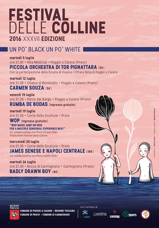 “Un po’ black, un po’ white” è il fil rouge del Festival delle Colline 2016, rassegna che da sempre privilegia proposte originali e creative, abbinandole a luoghi incantevoli dell’area pratese: dalle morbide colline di Poggio a Caiano, dove il festival è nato, alla scenografica Rocca di Carmignano, fino agli scorci d’arte della città del tessile.