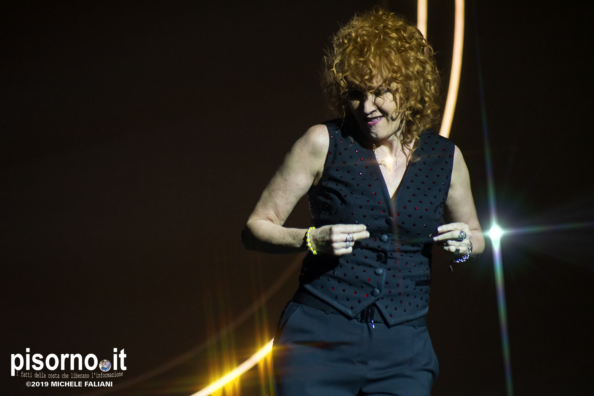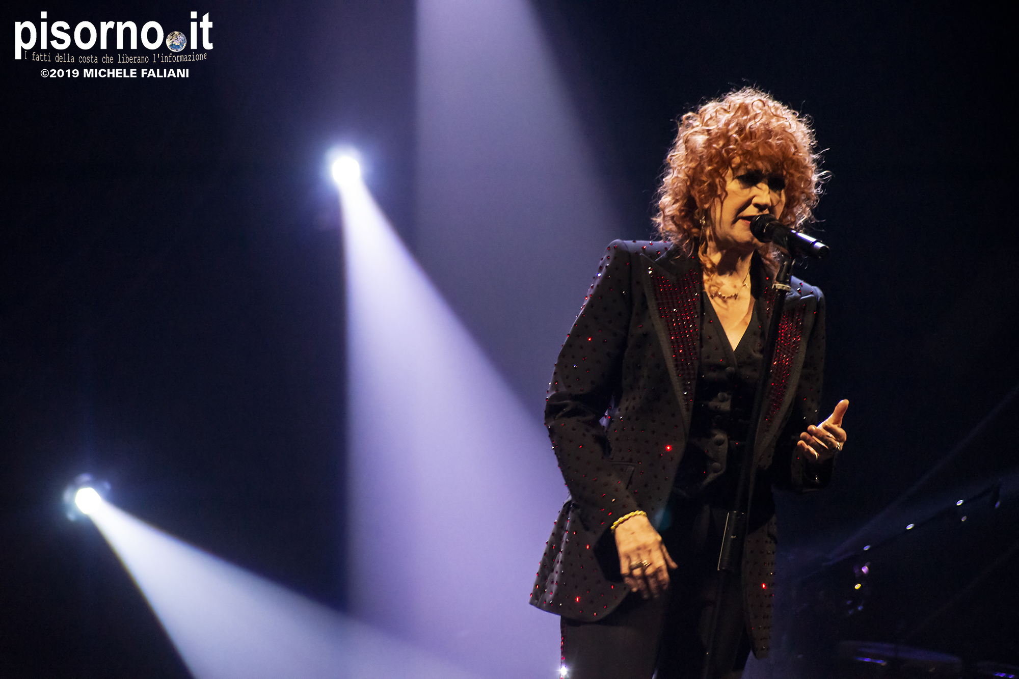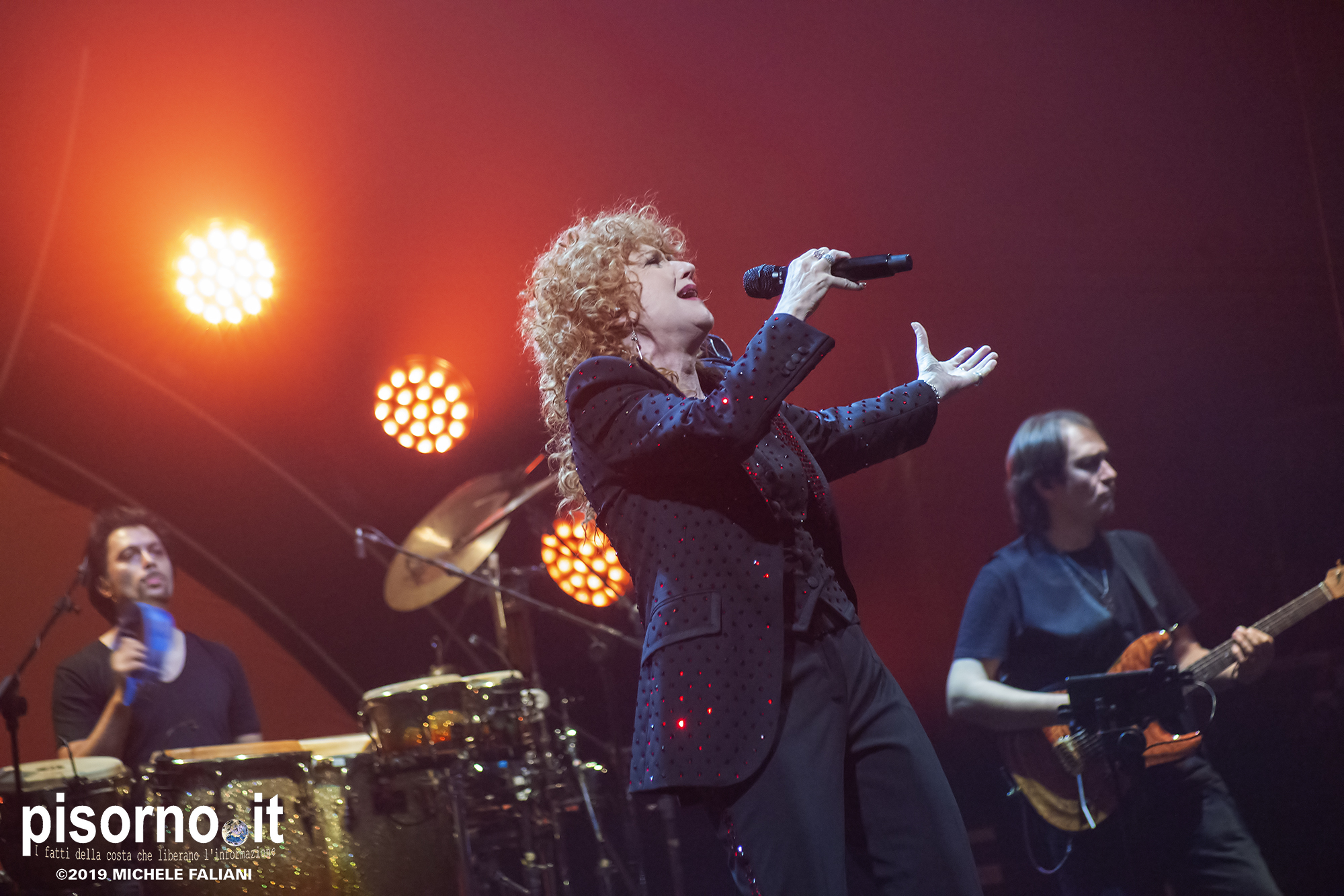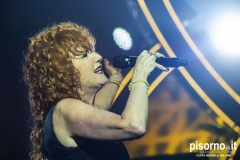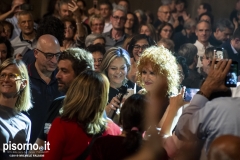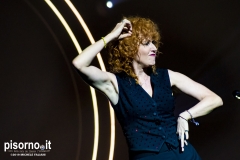 Non c’era una poltrona libera, all’interno del Teatro Verdi. D’altronde, se gli organizzatori avevano deciso di aggiungere un’altra data il giorno successivo, era ovvio che le vendite dei biglietti stavano andando più che bene già in prevendita. Bene, gli oltre 1500 spettatori presenti hanno riservato a Fiorella Mannoia un’accoglienza e un affetto davvero unici, che hanno finito per commuovere (davvero) anche la roscia più amata d’Italia. Il concerto, chiariamolo subito, è stato splendido, perfetto, addirittura migliore di quello che seguimmo ad agosto e del quale ha avuto almeno 18 canzoni della scaletta in comune, ma è ovvio che la band sia più rodata adesso che non ad inizio tour, ed anche Fiorella si trovi più a suo agio con le nuove canzoni. Che sono sempre più belle ad ogni nuovo ascolto, come le iniziali “Il peso del coraggio”, “Il senso” ed “Imparare ad essere una donna”. E poi ci sono i grandi classici, come “I treni a vapore”, “Sally”, “Come si cambia” e l’immancabile “Quello che le donne non dicono”, tutte cantate insieme al pubblico. Ma i momenti migliori, quelli da pelle accapponata, sono stati “Penelope” (con una lunga coda dal sapore di samba, sulla quale Fiorella ha danzato scatenata), “Lunaspina” (con un nuovo arrangiamento spettacolare) e “Povera patria” di Franco Battiato, con tanto di verso cambiato in “Ma non gli fanno un poco di pudore quei corpi in mare senza più calore?”.
