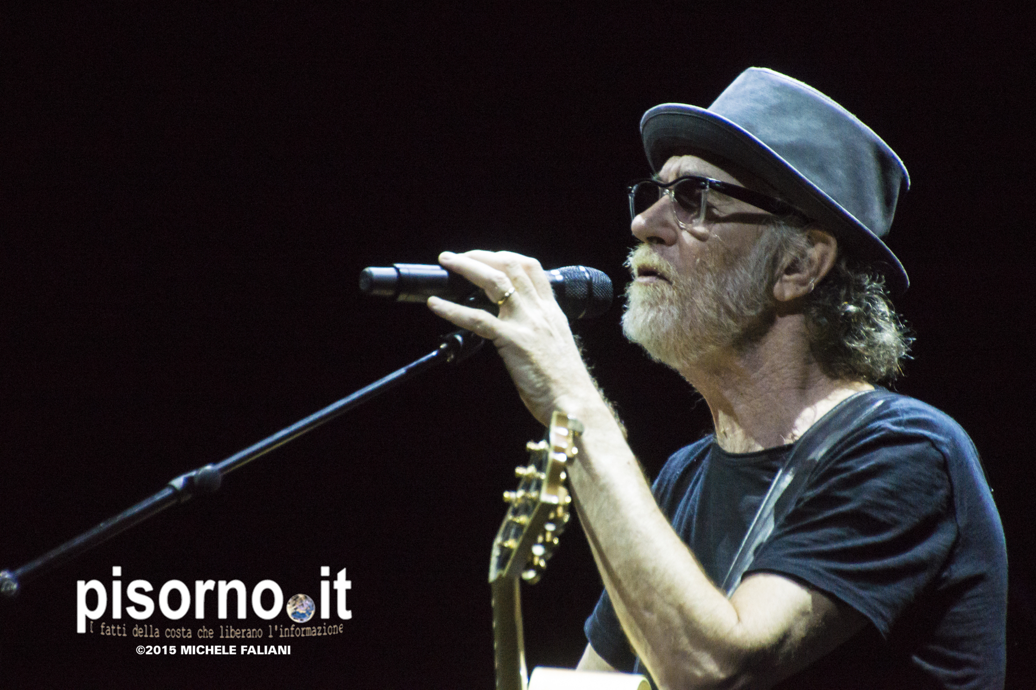 L’inizio, per esempio: De Gregori e la sua band attaccano con “Lettera da un cosmodromo messicano”, brevissima canzone che chiude l’album “Miramare” del 1989. A seguire “Ti leggo nel pensiero”, un bellissimo dialogo con Dio, uno degli inediti della raccolta “Mix”. La band, che segue De Gregori ormai da anni (Guido Guglielminetti al basso, Alessandro Arianti alle tastiere, Elena Cirillo al violino, Lucio Bardi e Paolo Giovenchi alle chitarre, Alessandro Valle alla pedal steel guitar e ai mandolini, Stefano Parenti alla batteria, più una sezione fiati), va come una scheggia. Bellissimi nuovi arrangiamenti, specialmente su “Il canto delle sirene” e “L’abbigliamento di un fuochista”. Il momento che ho preferito di tutto il concerto è stata l’esecuzione di “Falso movimento”, forse l’episodio più bello di “Sulla strada”, nella quale Ciccio ha sostituito il verso ‘Che dici, sarà il caso di ordinare?’ con ‘Desideri qualcosa di speciale?’. E poi c’è stato il momento che non ti aspetti, quello in cui Luigi Grechi, folksinger fratello di Francesco, sale sul palco per duettare ne “Il bandito e il campione” e per eseguire “Senza regole”.