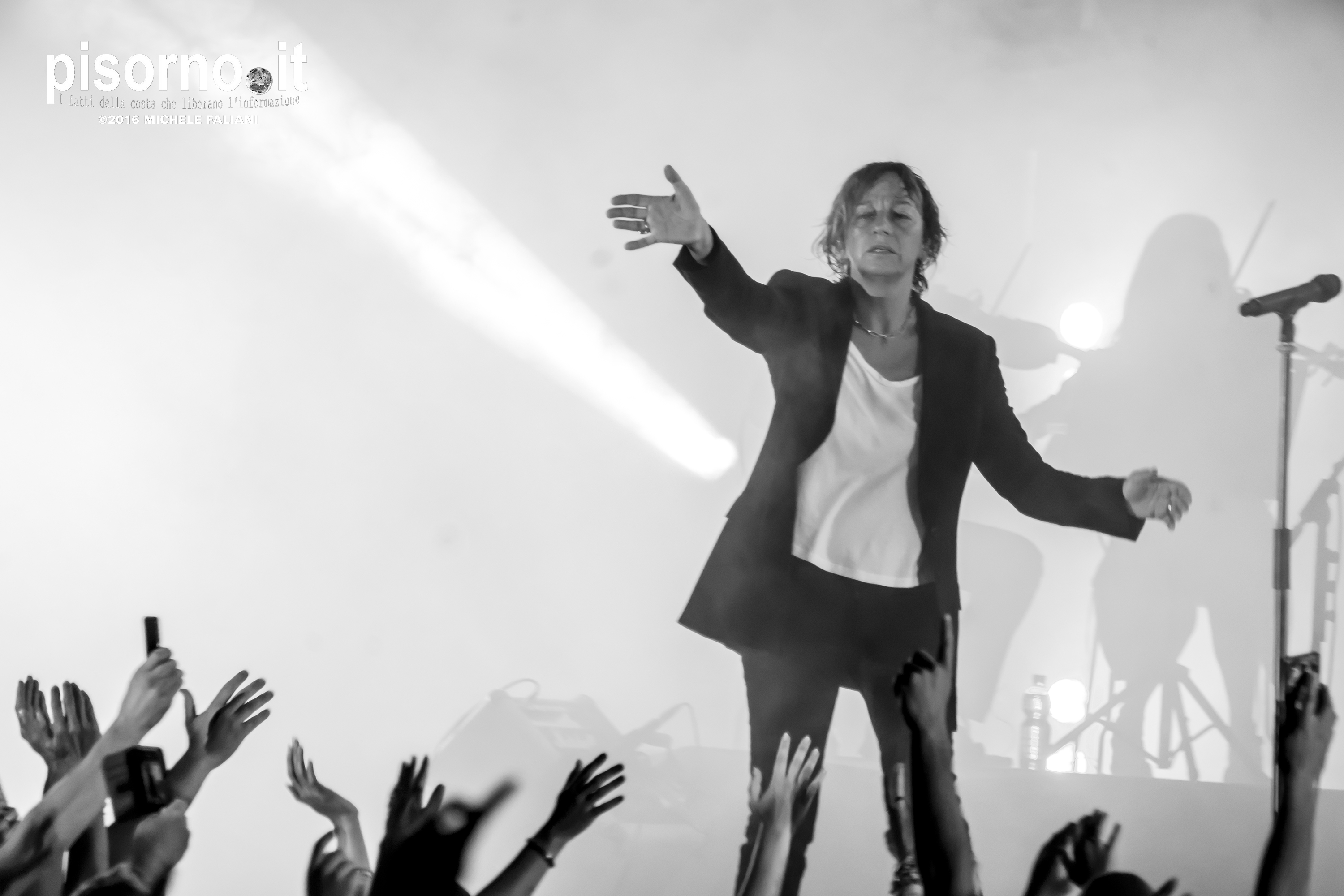 Più di 2500 persone hanno salutato il ritorno in Toscana di Gianna Nannini, che col tour promozionale di “Hitstory” sta attraversando la penisola. L’ennesimo sold-out per Villa Bertelli, che sta per chiudere questa quarta, trionfale stagione estiva. Ammetto di non essere un fan incallito di Gianna Nannini, di conoscere soltanto le canzoni più famose e di non averla mai ascoltata dal vivo prima del concerto di Forte Dei Marmi; alla fine del secondo pezzo, però, e scusate il francesismo, fra me e me ho pensato “Cazzo, che tiro”. Si, perché la Nannini ha DAVVERO fatto un gran concerto rock, con una band che ha DAVVERO fatto legna alle sue spalle, per tutte le due ore del concerto. C’è stato spazio per quasi tutte le hit del suo repertorio (tranne “California”, peccato…) e anche per qualche cover presente nell’album “Hitalia”, tra cui una sontuosa “Amandoti” dei CCCP Fedeli Alla Linea, e “Ciao, amore ciao” di Luigi Tenco. La chiusura, dedicata all’Italia, con il tormentone del 1990 “Un’estate italiana”.