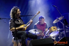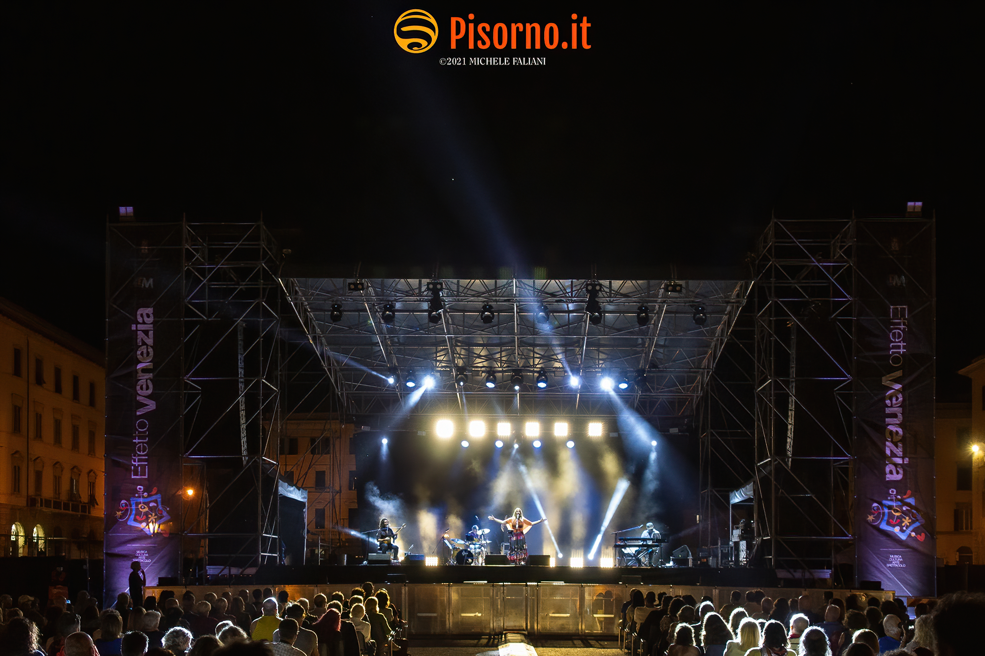 È arrivata alla fine la trionfale edizione 2021 di Effetto Venezia, che ha visto sul main stage di Piazza Repubblica, nell’ultima serata, Ginevra Di Marco. La cantante fiorentina, sul palco insieme a Francesco Magnelli, Andreino Salvadori e al batterista Luca Ragazzo, ha regalato ai livornesi un’ora e mezzo di pura energia, che ha reso impossibile restare seduti sulle poltrone di Piazza della Repubblica. Il viaggio di Donna Ginevra e dei suoi musicisti nella musica popolare, italiana e non, è cominciato con “Canzone arrabbiata” per proseguire con “Amuri amuri” e altre gemme del nostro patrimonio culturale (la bellissima “Rosa canta e cunta” di Rosa Balistreri, per esempio), alternate con un bel doppio omaggio a Luigi Tenco e a qualche incursione nel repertorio dei CCCP Fedeli alla Linea e dei C.S.I., con “Brace” e soprattutto con “Amandoti” (“Una canzone che ci è scappata di mano ed è diventata famosissima” ha detto Magnelli) cantata con tutto il pubblico. Che, a fine set, proprio non se ne voleva andare, ed ha costretto il quartetto a tornare sul palco per eseguire “Amara terra mia” di Modugno insieme alla special guest Bobo Rondelli, e le due canzoni che chiudono abitualmente il concerto della Di Marco, “La leggera” e “Malarazza”, che hanno portato a sforare leggermente sull’orario di ‘coprifuoco’. Più di un concerto, una festa collettiva di musica, parole, danze, memoria e bellezza.
