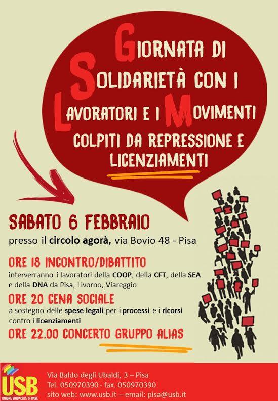 Sabato 6febbraio in Via Bovio 48 a Pisa, il circolo agorà ospita l’iniziativa della dell’Unione Sindacale di Base che organizza una