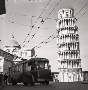 Ma gli anni Cinquanta sono anche quelli della “guerra fredda”, delle prime imprese spaziali, delle grandi scoperte scientifiche, dell’arrivo della televisione nelle case degli italiani. E nella vita quotidiana si colgono anche i primi segnali della società dei consumi di cui sono il simbolo la “Seicento” e la “Cinquecento” che danno avvio a quella motorizzazione di massa che porterà al “miracolo economico” nel decennio successivo. In America nascono i movimenti della beat generation e il rock ‘n roll, in Italia cominciano il Festival di Sanremo, le prime trasmissioni televisive che con Lascia o raddoppia? mobilitano grandi folle mentre il cinema di Hollywood e i film della “commedia all’italiana” invadono le sale. Di tutto questo si avvertono i riflessi anche nella vita in città insieme agli echi di eventi internazionali che maturano in quella stagione provocando manifestazioni e cortei, come quelli per la restituzione di Trieste all’ Italia e quelli di forte dissenso per la repressione della rivolta in Ungheria. E’poi negli anni Cinquanta, come documentano le foto di Frassi, che si assiste alla rinascita del Gioco del Ponte, alla ripresa delle feste goliardiche, alla fine del tram che esisteva dal 1912 e dalla sua sostituzione con i filobus.