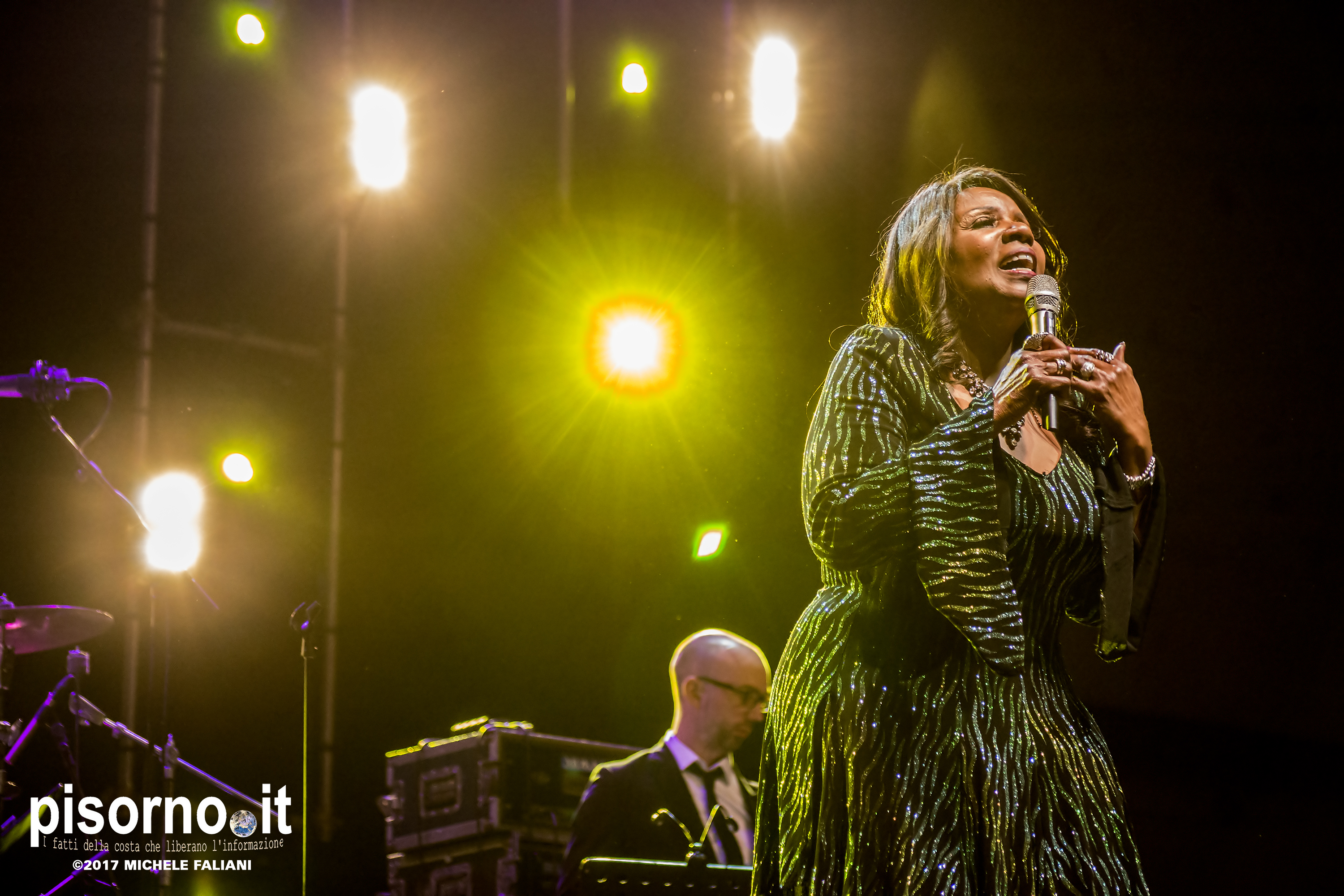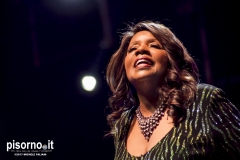 E’ stato davvero difficile restare fermi a tentare di scattare qualche foto: provateci voi, mentre una band incredibile di 10 elementi suona in maniera impeccabile “I will survive” o “Never can say goodbye” a non sentire il bisogno irresistibile di ‘tenere il tempo’ magari con il piede. E martedì, durante l’unica data italiana del tour europeo di Gloria Gaynor, nessuno è riuscito a stare seduto al proprio posto a lungo, neanche la numerosa delegazione del Consolato Americano che era fra i patrocinatori dell’evento. E Gloria Gaynor (che si avvia verso i 70 ma ha ancora una voce come quando di anni ne aveva 28) è stata ovviamente al centro di uno dei concerti più trascinanti a cui abbia mai assistito. In scaletta i grandi classici come era preventivabile, ma anche un paio di nuove canzoni tratte dal nuovo lavoro di pubblicazione, e qualche cover d’annata (“Can’t take my eyes off you”, “Last dance” di Donna Summer “Killing me softly” e “You are the first, the last, my everything”) che hanno scatenato i presenti.