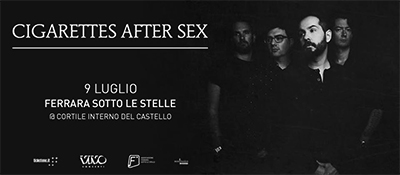 Un grande ritorno quello dei Cigarettes After Sex che, acclamatissimi dal pubblico italiano, approderanno in una tra le location più caratteristiche del nostro paese: il 9 luglio nel cortile medioevale di Ferrara al Ferrara Sotto Le Stelle.