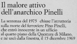 Da segnalare che, nel giorno del 45esimo anniversario della morte di Pinelli c’è stata l’azione simbolica di alcuni studenti dei licei Parini, Beccaria, Vittorio Veneto, Virgilio e Bottoni che hanno gettato un manichino dalla finestra della scuola, per chiedere verità sulla strage di piazza Fontana e sulla morte dell’anarchico Pinelli.