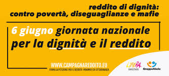 reddito minimoLibera e Gruppo promuovono insieme alle realtà sociali e studentesche il 6 giugno la giornata nazionale della dignità e per il reddito. In oltre 150 piazze, dal Nord al Sud, saranno organizzati banchetti per raccogliere le firme per l’istituzione il reddito minimo o reddito di cittadinanza contro la povertà e le diseguaglianze e per contrastare le mafie.