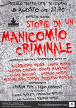 Dopo il successo ottenuto durante il “FiPiLi Horror Festival 2015”, la Compagnia “Piccolo Teatro Città di Livorno” torna in Fortezza Vecchia sabato 8 agosto ore 21.30 con “Storie da un Manicomio Criminale”, frutto originale e divertente di un laboratorio di scrittura e interpretazione teatrale coordinato da Ephraim Pepe e Fabio Vannozzi, ispirato dal testo “Delitti esemplari” di Max Aub.