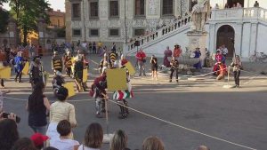 Domani non saranno certo le antiche Compagnie a sfidarsi in Piazza dei Cavalieri, ma le associazioni Signum Rubicundum, Ordo Civitas Pisarum, Mazzascudo Pisa e Libera Compagnia d’Arme delle Tre Fiere.