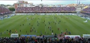 SECONDO TEMPO – Nella ripresa il Pisa si chiude a riccio. Bindi, uno dei migliori in campo, tiene la porta sicura. Al 20’ non è più calcio. Gattuso viene colpito da una bottiglietta in testa, poi un’invasione di campo di uno sparuto gruppo di tifosi foggiani. Dopo una sospensione di quasi mezz’ora si torna a giocare, con l’espulsione dei due tecnici. In questo panorama che ben poco ha a che spartire con lo sport arriva anche un calcio di rigore per il Foggia al 41’, trasformato da Iemmello, su cui ci sono numerosi dubbi.