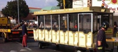 A pochi passi dalla Torre pendente di Pisa, il trenino adibito al trasporto dei turisti si è ribaltato, nei pressi della rotatoria di via Pietrasantina
