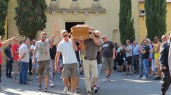 - Oggi eravamo tutti, la tua gente, i banditi con cui hai condiviso battaglie e barricate, gioie e dolori, vittorie e sconfitte…. Tutti li…. e rivederli tutti uniti, anche se nel dolore, sono sicuro ti avrebbe fatto piacere. Non avremmo mai voluto salutarti, fare quegli ultimi maledetti metri che sono stati faticosi nemmeno avessimo marciato chilometri. Ma oggi la frase “chi ha compagni non muore mai” ha avuto un senso pieno e mi piace pensarti che ci hai salutati come in questa foto….. Alessandro Giusti
