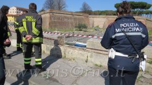 In Piazza della Repubblica nella mattina di oggi un pezzo di spalletta, un blocco di pietra largo 50centimetri e lungo un metro e mezzo, è caduto nel Fosso Reale danneggiando la passerella che conduce alle imbarcazioni, fortunatamente nessuno è rimasto ferito