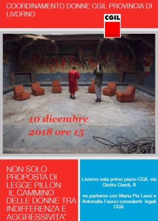“L’obiettivo dell’incontro – spiega Patrizia Villa della segreteria generale Cgil provincia di Livorno – è intavolare un ragionamento che a partire dalla proposta di legge Pillon provi a affrontare trasversalmente i temi dell’abbandono delle politiche di genere. Dobbiamo opporci a questa tendenza: ci sono voluti centinaia di anni per conquistare quei diritti che adesso cercano di cancellare nell’apparente indifferenza generale”. Con Lessi e Faucci si parlerà soprattutto delle possibili conseguenze della proposta di legge Pillon che individua nell’affidamento condiviso tutte le prassi relative al divorzio e alle separazioni, intervenendo sulle coppie regolarmente sposate (sempre meno) e per niente su tutte le altre. “Noi non siamo affatto contrarie all’affidamento condiviso – chiarisce Villa – ma è fondamentale elaborare un piano educativo che sia davvero rispettoso del genere e della possibilità di buona crescita dei figli e delle figlie. Si deve tener conto dell’ormai storico gap occupazionale delle donne e dei troppi episodi di stalking e femminicidi di cui si legge ogni giorno”. Dopo le grandi manifestazioni nazionali del 10 novembre, l’appuntamento del prossimo 10 dicembre dovrà essere un momento di confronto a 360 gradi per arrivare anche a livello territoriale a un’alleanza trasversale che tuteli i diritti civili: “Invitiamo alla partecipazione alla riflessione e condivisione tutti i nostri iscritti e le nostre iscritte – conclude Villa – ma anche le istituzioni, le associazioni e i partiti politici”.