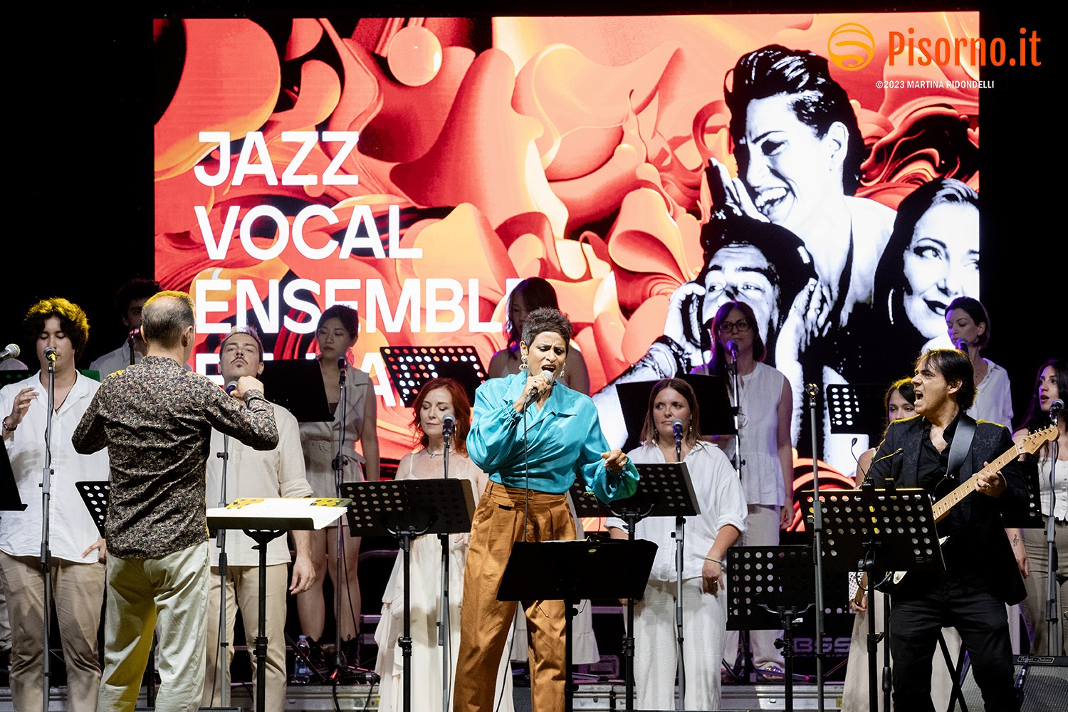 Enorme successo per la serata di Pisa Jazz con protagonisti il Jazz Vocal Ensamble Soulful e Karima, che per un’ora e mezzo hanno deliziato la platea del Giardino Scotto con le loro riletture di classici soul e brani pop e rock, filtrati dalla sensibilità e dalla personalità di Piero Gaddi, il maestro arrangiatore dei brani. Tra i solisti Michela Lombardi e Riccardo Grandini, mentre Karima, ospite d’onore della serata, ha aggiunto classe, eleganza e la sua voce splendida a un ensemble già incredibile.