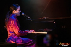 È tornata, finalmente. Nella solita venue che tre anni fa la vide protagonista di un concerto in piena pandemia, con il pubblico a sedere e distanziato; e un anno e mezzo dopo il tour italiano funestato dallo smarrimento di tutti i bagagli, chitarra compresa, all’aeroporto di Firenze. Questa volta fortunatamente è tutto andato liscio, e Joan Wasser, fresca fresca di pubblicazione del suo tredicesimo album (considerando anche il primo ep, i due dischi di cover, i due live e il disco a doppio nome con Benjamin Lazar Davis) è salita sul palco sorridente e felice come sempre, pronta ad incantare le 400 persone presenti con un concerto inaspettamente più lungo rispetto al passato (2 ore precise, con in più un quarto d’ora di pausa fra il primo e il secondo tempo “durante il quale potete andare in bagno o conoscere gli spettatori vicini a voi”); e con musicisti diversi, lo straordinario Will Graefe alla chitarra e Jeremy Gustin che sostituisce il fin qui onnipresente Parker Kindred alla batteria. E Joan che, come al solito, si sposta fra le tre postazioni di pianoforte, synths e chitarra. Il risultato della nuova formazione è un suono potente, corposo e più tendente all’ alt-rock che in passato, anche se le atmosfere soul e r’n’b non mancano certo. Prima parte con il nuovo “Lemons, limes and orchids” a farla da padrone, con i nuovi arrangiamenti di “Warning bell” e di “Hard white wall”, e “Tell me” che rimane il solito pezzo trascinante che è sempre stato. Secondo tempo che vede Joan spaziare fra tutta la sua produzione, con una serie di canzoni eseguite con vestiti tutti nuovi: “The ride”, completamente stravolta e tutta costruita intorno a un arpeggio di chitarra acustica, un’ipnotica versione di “Flushed chest” ci ricorda che disco della madonna sia “Real life”, e “Eternal life” rallentata e rarefatta fa da preludio al gran finale, con una “The magic” acidissima e con un lunghissimo assolo di chitarra à la David Byrne e la splendida “Chemmie” che fa ballare tutta la sala. C’è ancora tempo per un paio di pezzi prima del rito dei selfie e degli autografi, ed è bellissimo vedere Joan in forma smagliante, che sorride e si diverte lei per prima a suonare con i nuovi compagni di viaggio. E una nota di merito a Benjamin Gregory, fedele tecnico del suono della Poliziotta, che ha fatto dei suoni da paura.