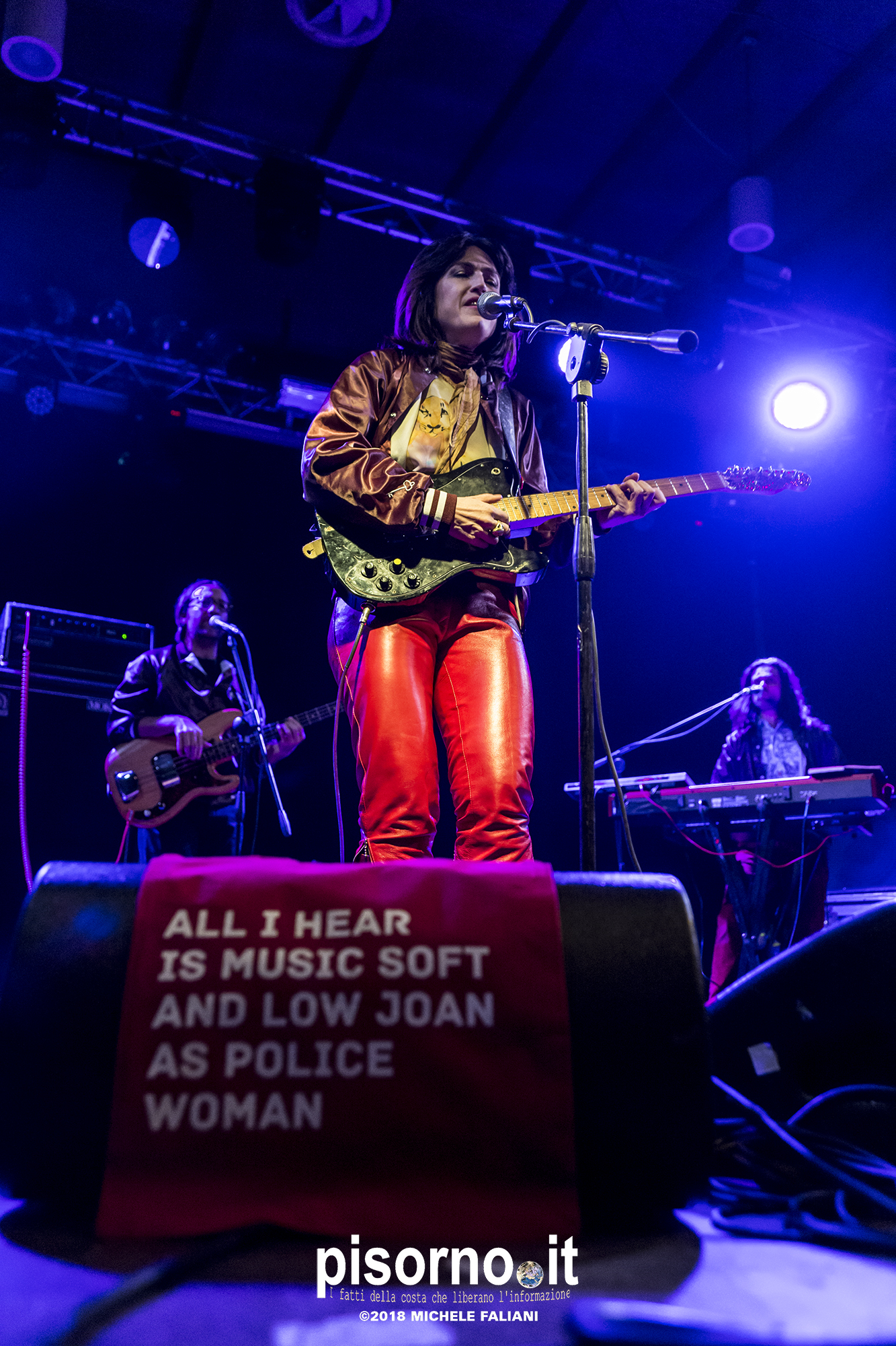 È già da qualche anno che, incontrando Joan dopo il concerto, mi diverto a dirle “Dì la verità, dormi nel frigorifero…”. Perché lei, 48 anni il prossimo luglio, è sempre lì sul palco con il suo aspetto da ragazzina, a regalare bellissime canzoni al suo pubblico, che (a dire la verità) non è mai così numeroso quanto meriterebbe. “Damned devotion” (ve lo dico subito: sarà nei primi tre posti della mia top 20 del 2018) è il suo quinto album – al quale vanno aggiunti un Ep rilasciato nel 2006, un disco di cover venduto solo ai concerti e il lavoro uscito a doppio nome con Benjamin Lazar Davis – ed è sicuramente di qualità altissima. La scaletta gira come ovvio intorno alle canzoni che lo compongono, lasciando pochissimo spazio al disco d’esordio “Real life” (eseguita soltanto “Eternal life”, in una versione stranissima e neanche troppo convincente) e a “To survive” (nessuna canzone eseguita, neanche “Hard white wall” che avremmo ascoltato volentieri con le sonorità della nuova band). Memorabile il trittico di inizio concerto, le stesse tre canzoni che aprono “Damned devotion”, e splendida “What was it like” dedicata al padre, scomparso poco più di un anno fa. E poi, nei bis, l’irresistibile “The magic” e una splendida cover di “Kiss” di Prince, che speriamo venga inserita nel nuovo disco di cover di imminente pubblicazione. Con il pubblico, come accade sempre in Italia, in assoluto delirio e che già non vede l’ora che Joan la Poliziotta torni già a girare la penisola in estate. E sinceramente lo spero anch’io.