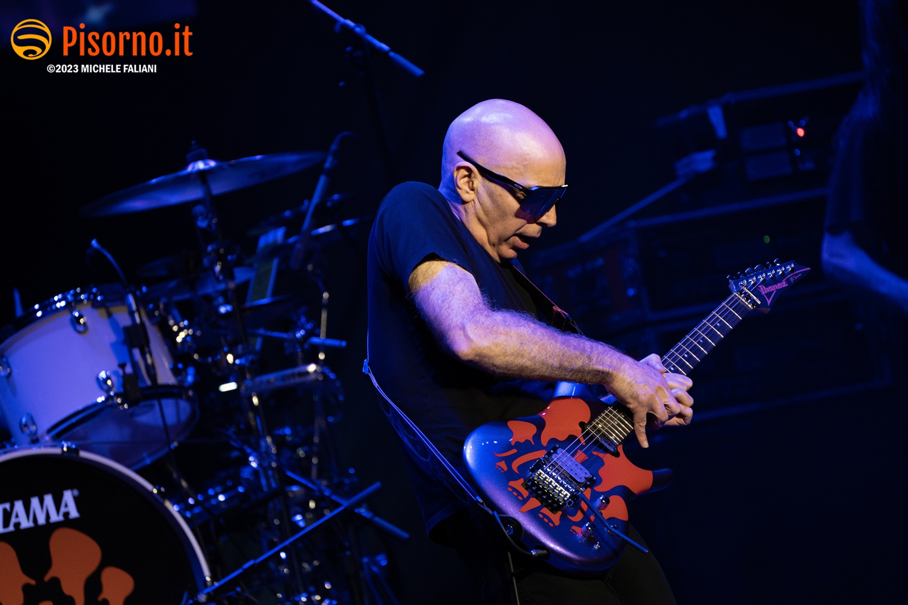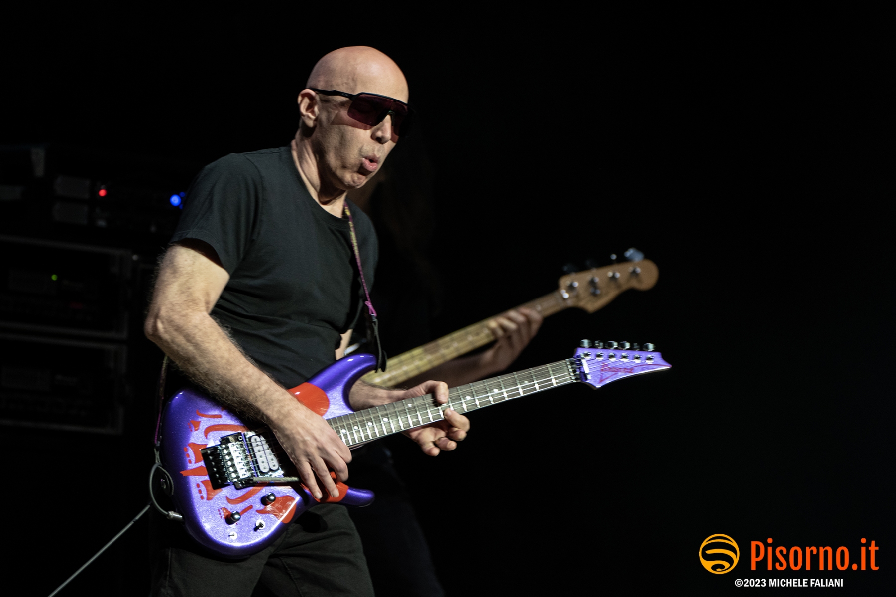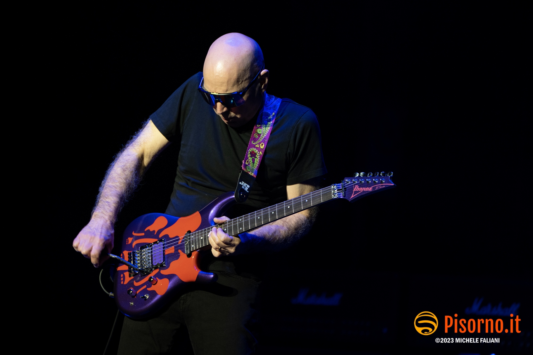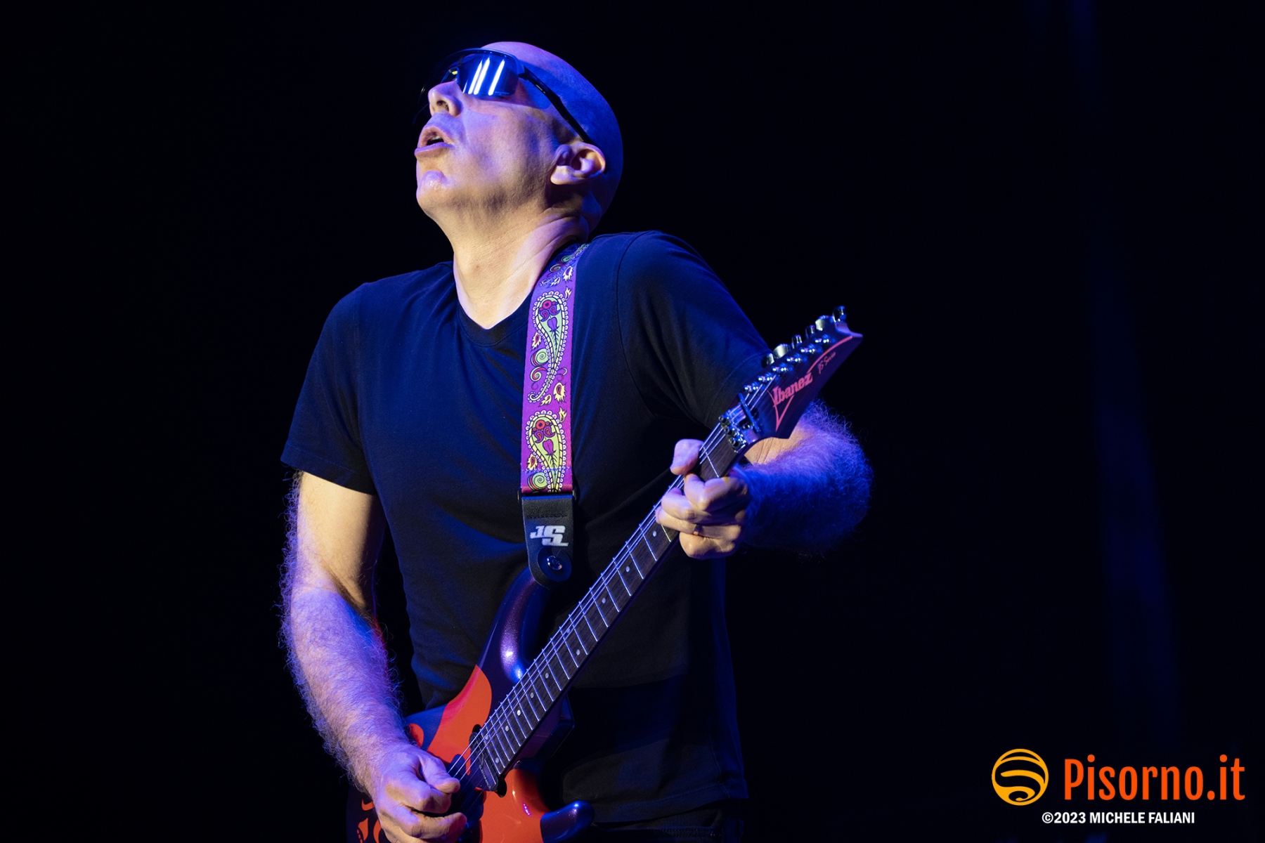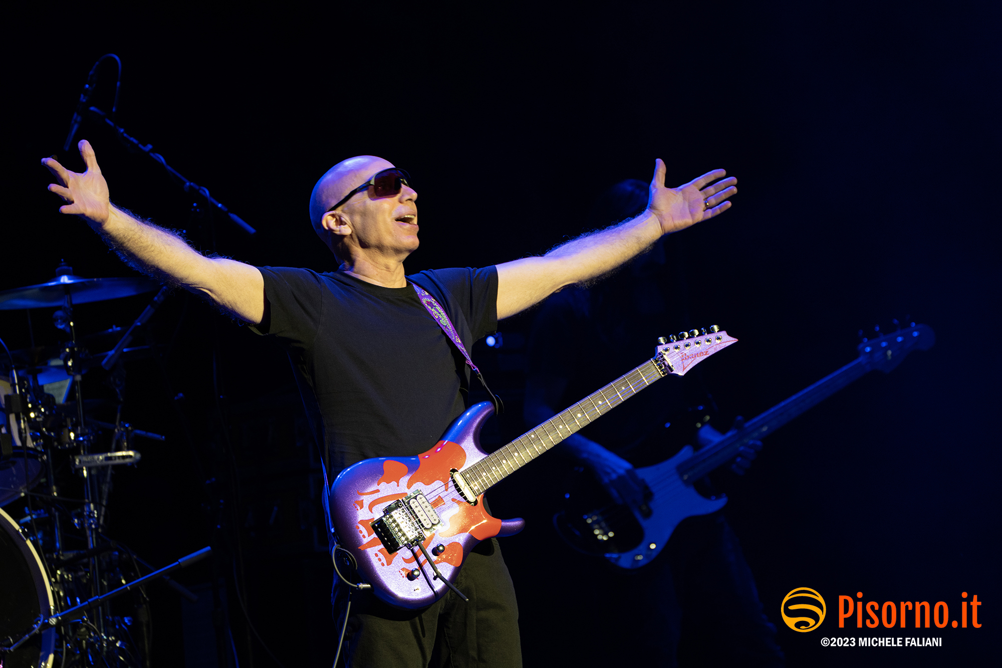 Un Teatro Verdi ancora una volta sold out in ogni suo settore ha salutato il ritorno in Italia di Joe Satriani, incredibile chitarrista che mette un po’ d’accordo tutti, sia gli amanti dell’heavy metal e dell’hard rock che quelli che preferiscono il prog-rock o il rock-blues di derivazione seventies. La tappa fiorentina dell’ Earth Tour 2023, rimandata a suo tempo per i fatti che tutti conosciamo e che non vale neanche più la pena ricordare, dura oltre due ore (compreso un break di 15 minuti come si fa a teatro con spettacoli più “nobili” della musica rock) e incanta le oltre 1000 persone che hanno occupato le comode poltrone del Verdi, con 26 brani strumentali che spaziano dall’hard rock alle atmosfere delle nuove incarnazioni dei King Crimson, fino ad arrivare ad alcune composizioni che ricordano il Frank Zappa di fine anni ’90. Molto spazio anche ai tre componenti della band, protagonisti ognuno di un lungo solo che ha permesso di apprezzare le loro incredibili qualità di musicisti. Per tutta la durata del concerto, sul maxischermo posizionato a fondo palco, una sequenza infinita di visual che hanno accompagnato i fans in un viaggio anche visivo davvero magico. Bravo, bravissimo Satriani.