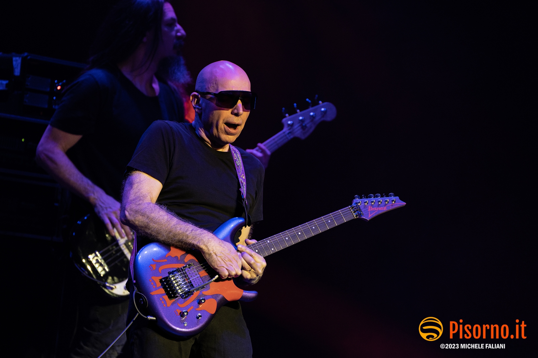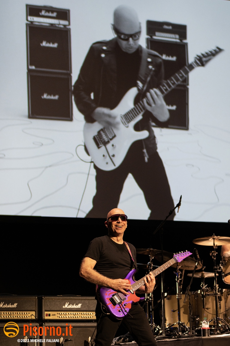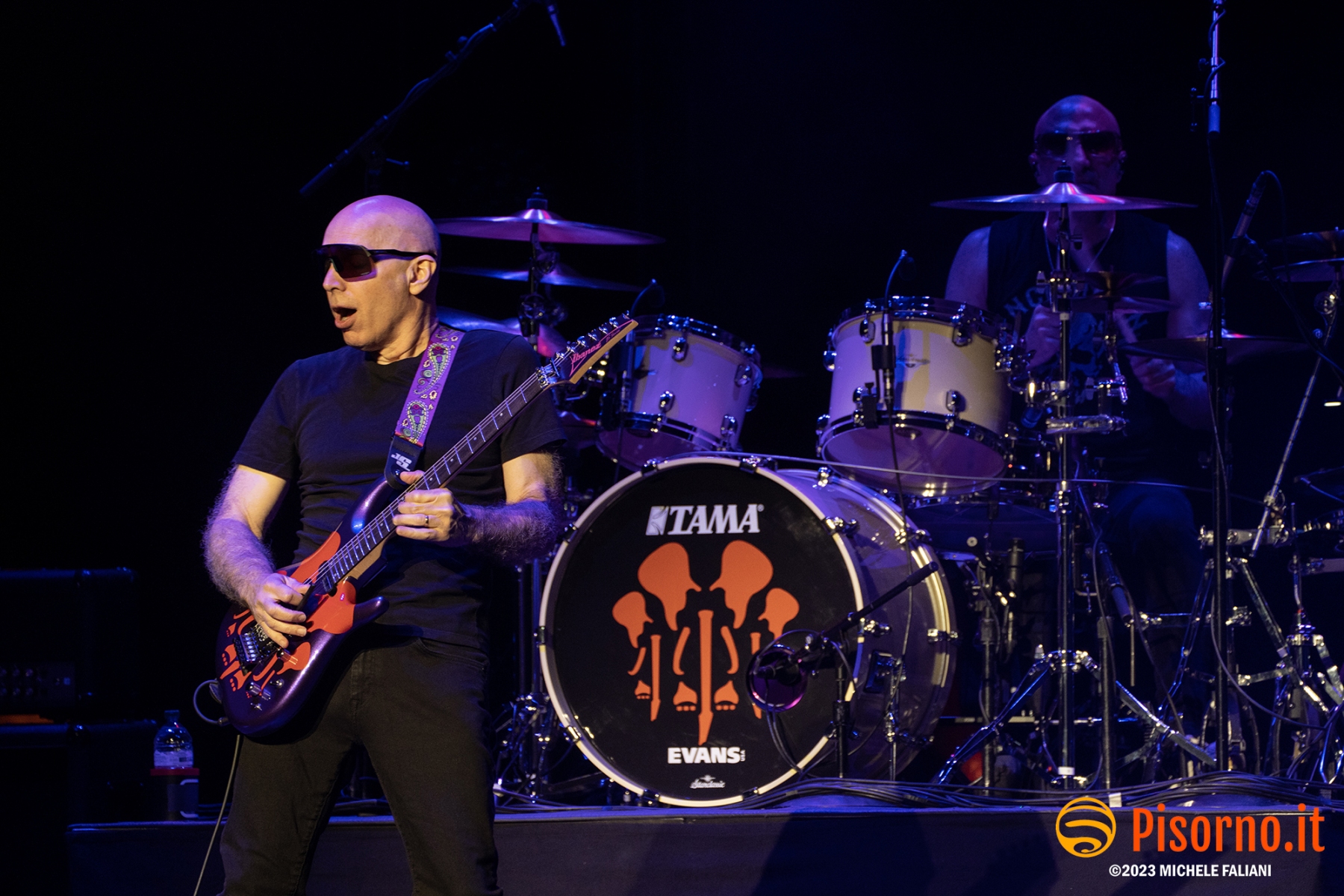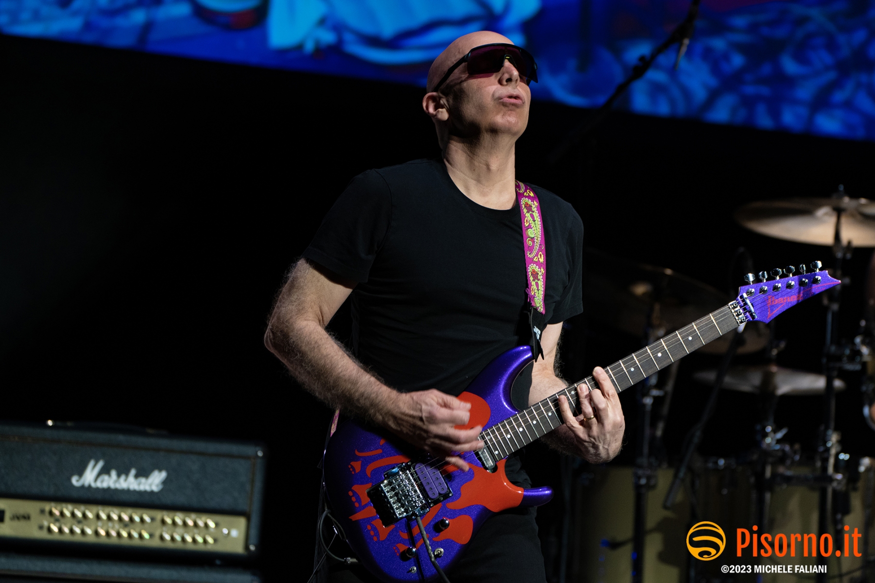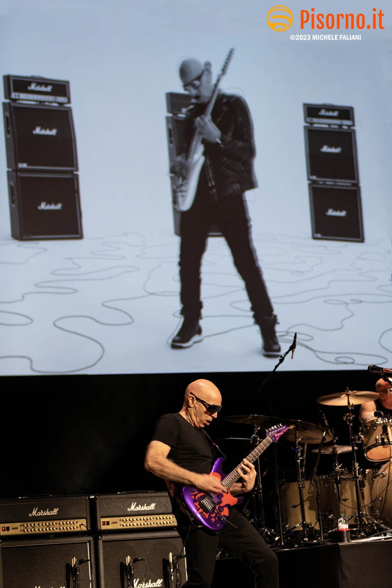 Un Teatro Verdi ancora una volta sold out in ogni suo settore ha salutato il ritorno in Italia di Joe Satriani, incredibile chitarrista che mette un po’ d’accordo tutti, sia gli amanti dell’heavy metal e dell’hard rock che quelli che preferiscono il prog-rock o il rock-blues di derivazione seventies. La tappa fiorentina dell’ Earth Tour 2023, rimandata a suo tempo per i fatti che tutti conosciamo e che non vale neanche più la pena ricordare, dura oltre due ore (compreso un break di 15 minuti come si fa a teatro con spettacoli più “nobili” della musica rock) e incanta le oltre 1000 persone che hanno occupato le comode poltrone del Verdi, con 26 brani strumentali che spaziano dall’hard rock alle atmosfere delle nuove incarnazioni dei King Crimson, fino ad arrivare ad alcune composizioni che ricordano il Frank Zappa di fine anni ’90. Molto spazio anche ai tre componenti della band, protagonisti ognuno di un lungo solo che ha permesso di apprezzare le loro incredibili qualità di musicisti. Per tutta la durata del concerto, sul maxischermo posizionato a fondo palco, una sequenza infinita di visual che hanno accompagnato i fans in un viaggio anche visivo davvero magico. Bravo, bravissimo Satriani.