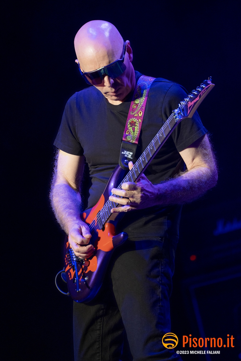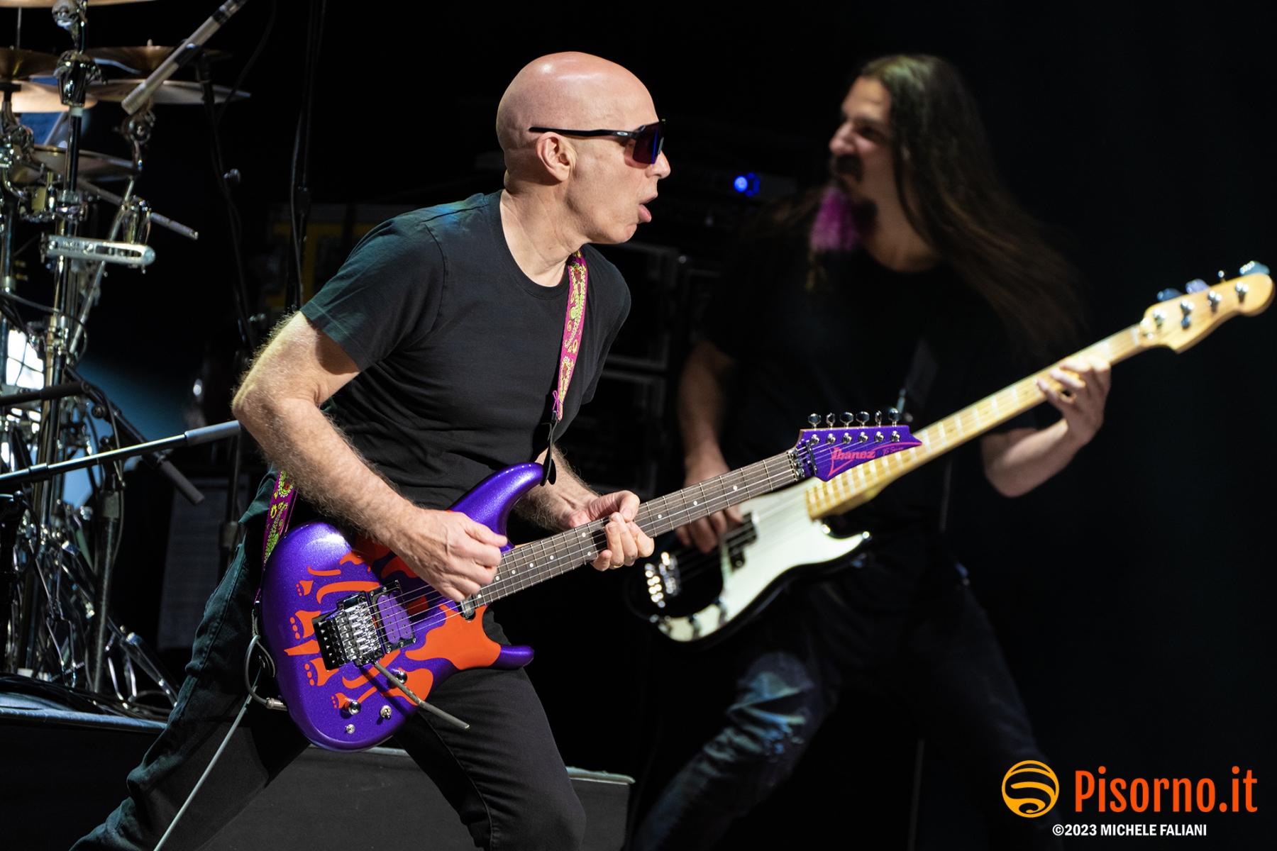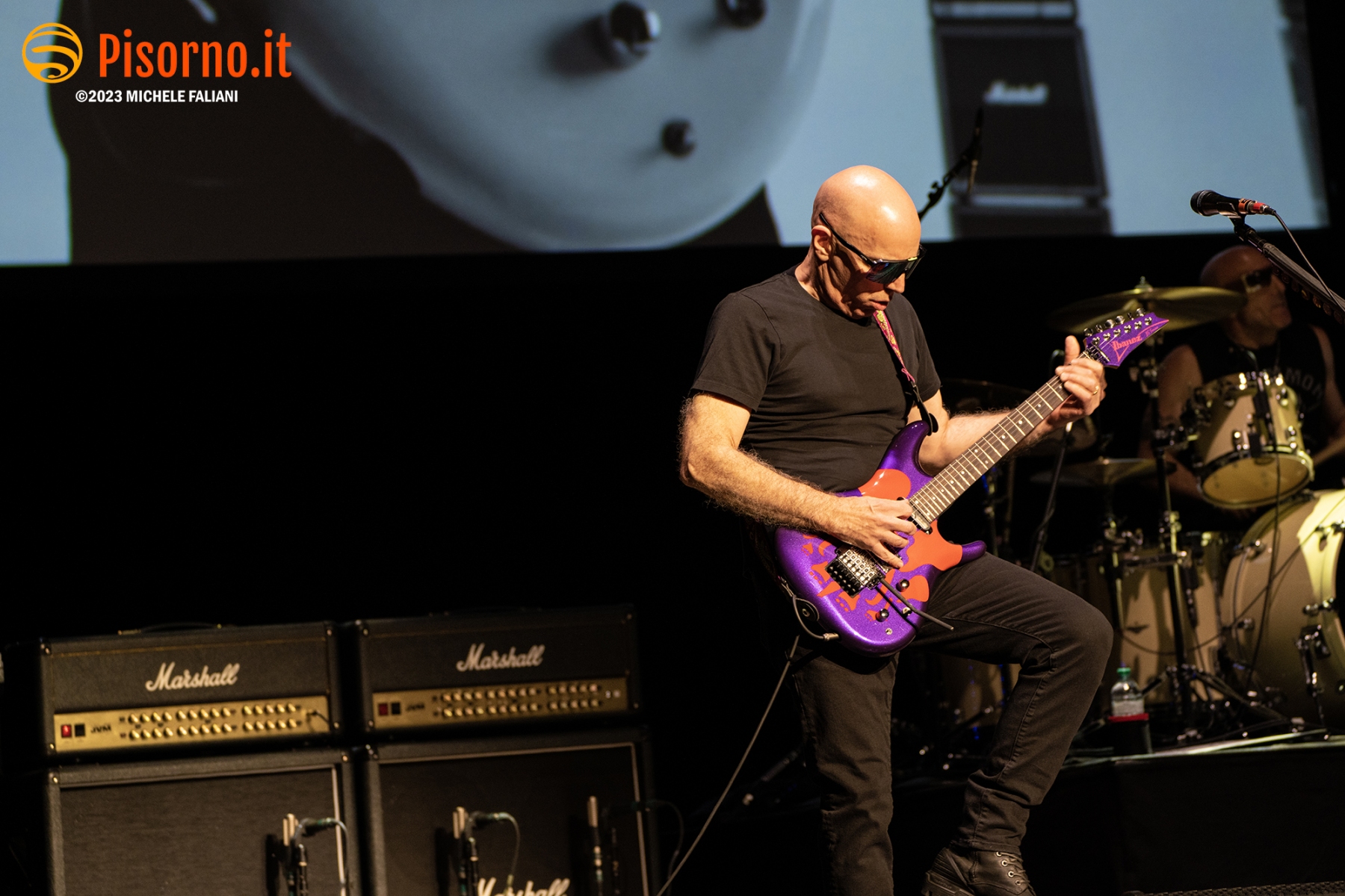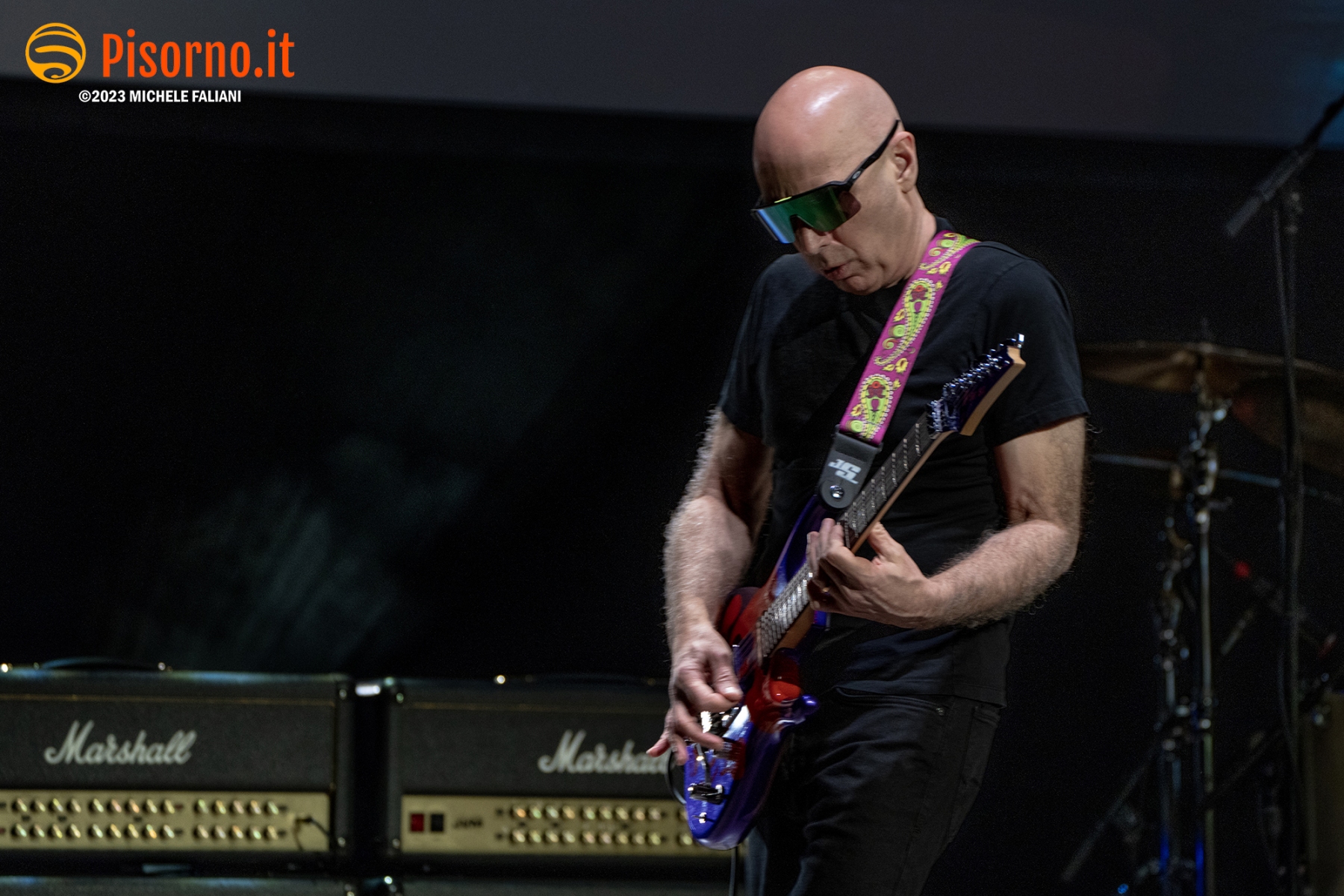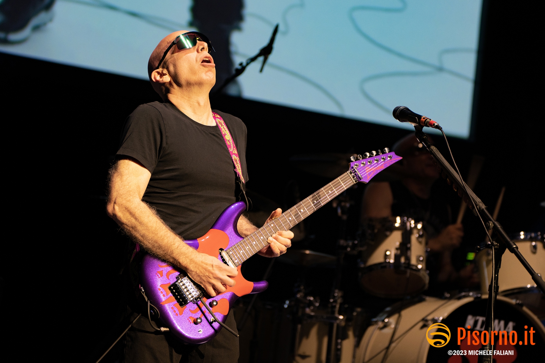 Un Teatro Verdi ancora una volta sold out in ogni suo settore ha salutato il ritorno in Italia di Joe Satriani, incredibile chitarrista che mette un po’ d’accordo tutti, sia gli amanti dell’heavy metal e dell’hard rock che quelli che preferiscono il prog-rock o il rock-blues di derivazione seventies. La tappa fiorentina dell’ Earth Tour 2023, rimandata a suo tempo per i fatti che tutti conosciamo e che non vale neanche più la pena ricordare, dura oltre due ore (compreso un break di 15 minuti come si fa a teatro con spettacoli più “nobili” della musica rock) e incanta le oltre 1000 persone che hanno occupato le comode poltrone del Verdi, con 26 brani strumentali che spaziano dall’hard rock alle atmosfere delle nuove incarnazioni dei King Crimson, fino ad arrivare ad alcune composizioni che ricordano il Frank Zappa di fine anni ’90. Molto spazio anche ai tre componenti della band, protagonisti ognuno di un lungo solo che ha permesso di apprezzare le loro incredibili qualità di musicisti. Per tutta la durata del concerto, sul maxischermo posizionato a fondo palco, una sequenza infinita di visual che hanno accompagnato i fans in un viaggio anche visivo davvero magico. Bravo, bravissimo Satriani.