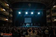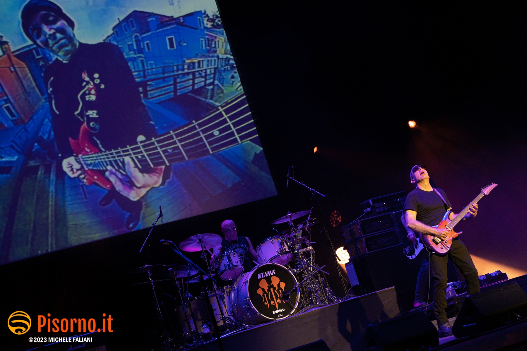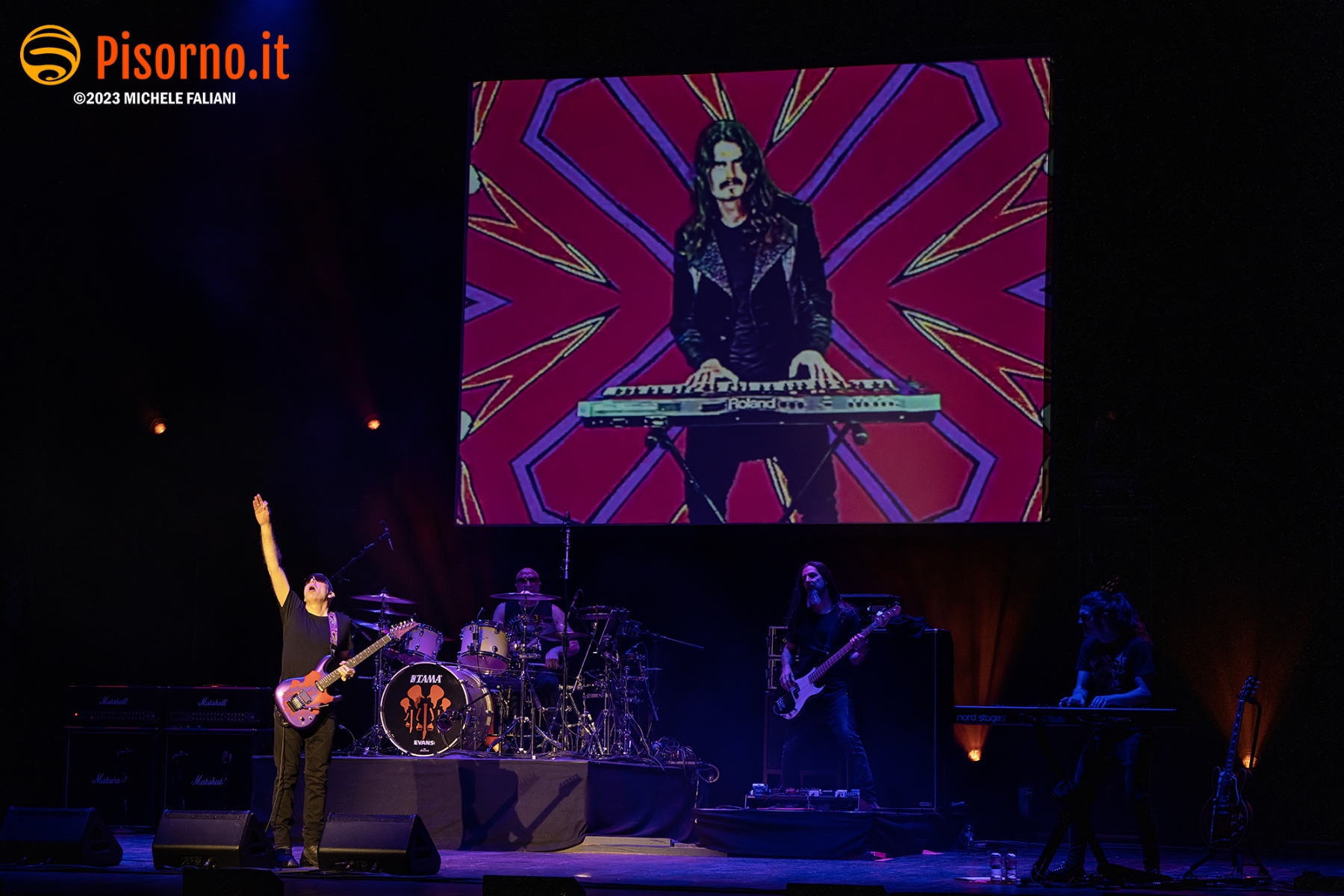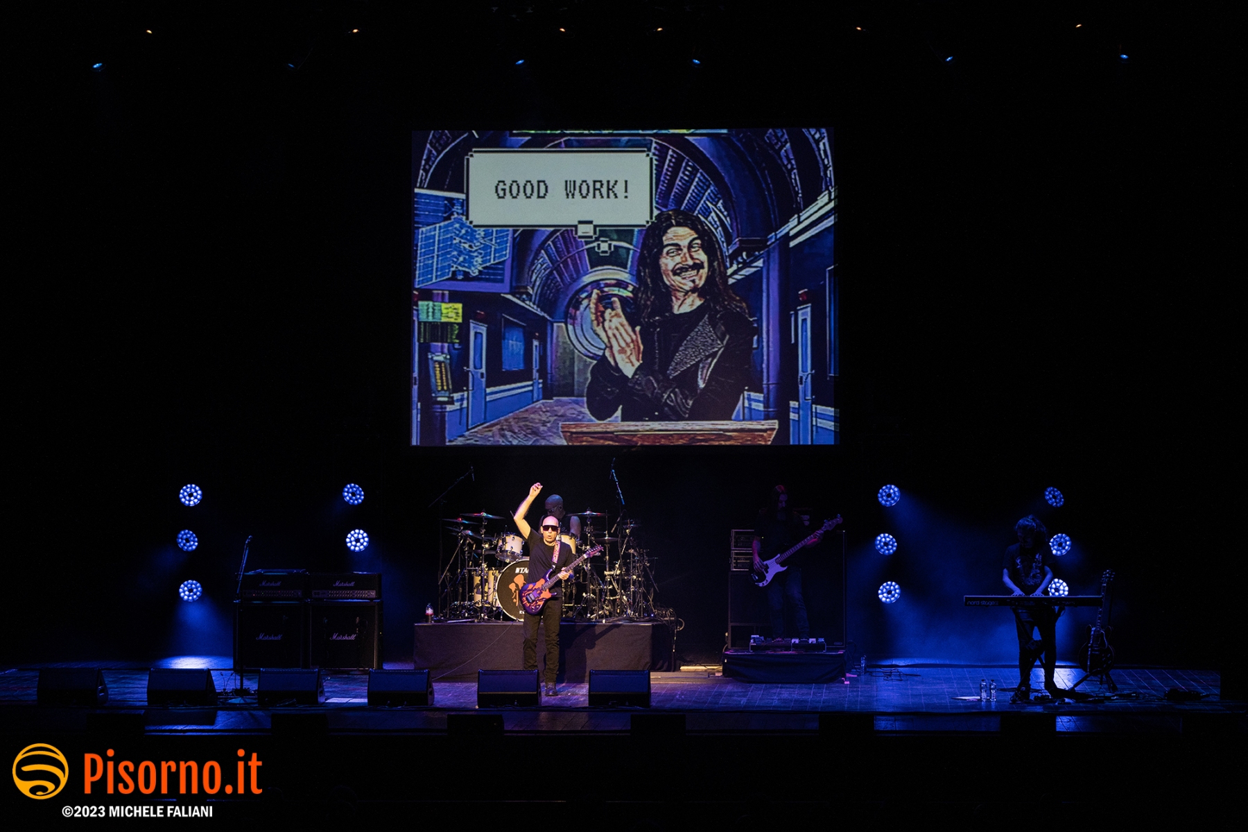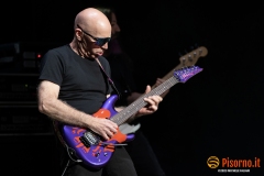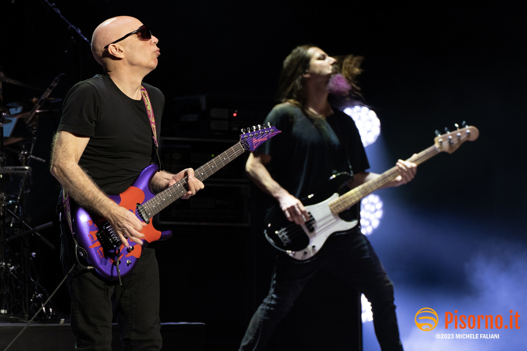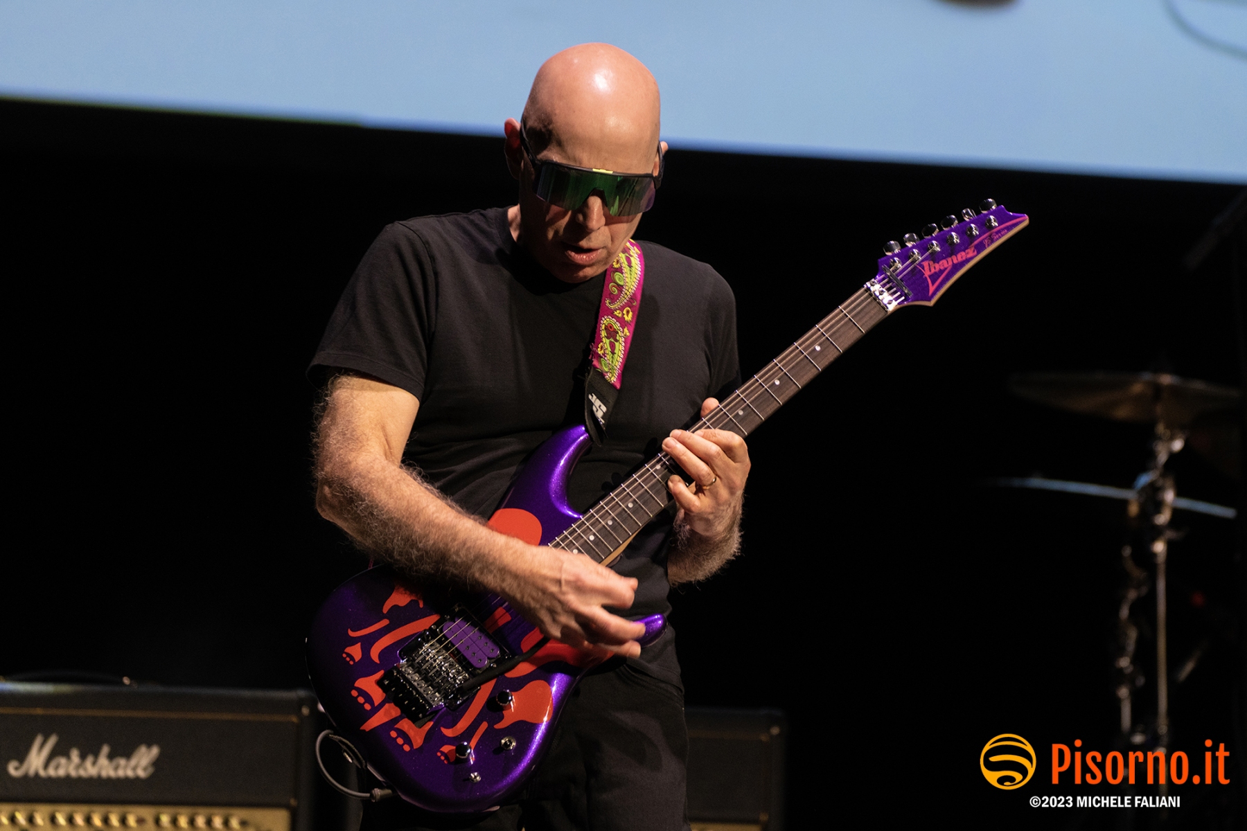 Un Teatro Verdi ancora una volta sold out in ogni suo settore ha salutato il ritorno in Italia di Joe Satriani, incredibile chitarrista che mette un po’ d’accordo tutti, sia gli amanti dell’heavy metal e dell’hard rock che quelli che preferiscono il prog-rock o il rock-blues di derivazione seventies. La tappa fiorentina dell’ Earth Tour 2023, rimandata a suo tempo per i fatti che tutti conosciamo e che non vale neanche più la pena ricordare, dura oltre due ore (compreso un break di 15 minuti come si fa a teatro con spettacoli più “nobili” della musica rock) e incanta le oltre 1000 persone che hanno occupato le comode poltrone del Verdi, con 26 brani strumentali che spaziano dall’hard rock alle atmosfere delle nuove incarnazioni dei King Crimson, fino ad arrivare ad alcune composizioni che ricordano il Frank Zappa di fine anni ’90. Molto spazio anche ai tre componenti della band, protagonisti ognuno di un lungo solo che ha permesso di apprezzare le loro incredibili qualità di musicisti. Per tutta la durata del concerto, sul maxischermo posizionato a fondo palco, una sequenza infinita di visual che hanno accompagnato i fans in un viaggio anche visivo davvero magico. Bravo, bravissimo Satriani.