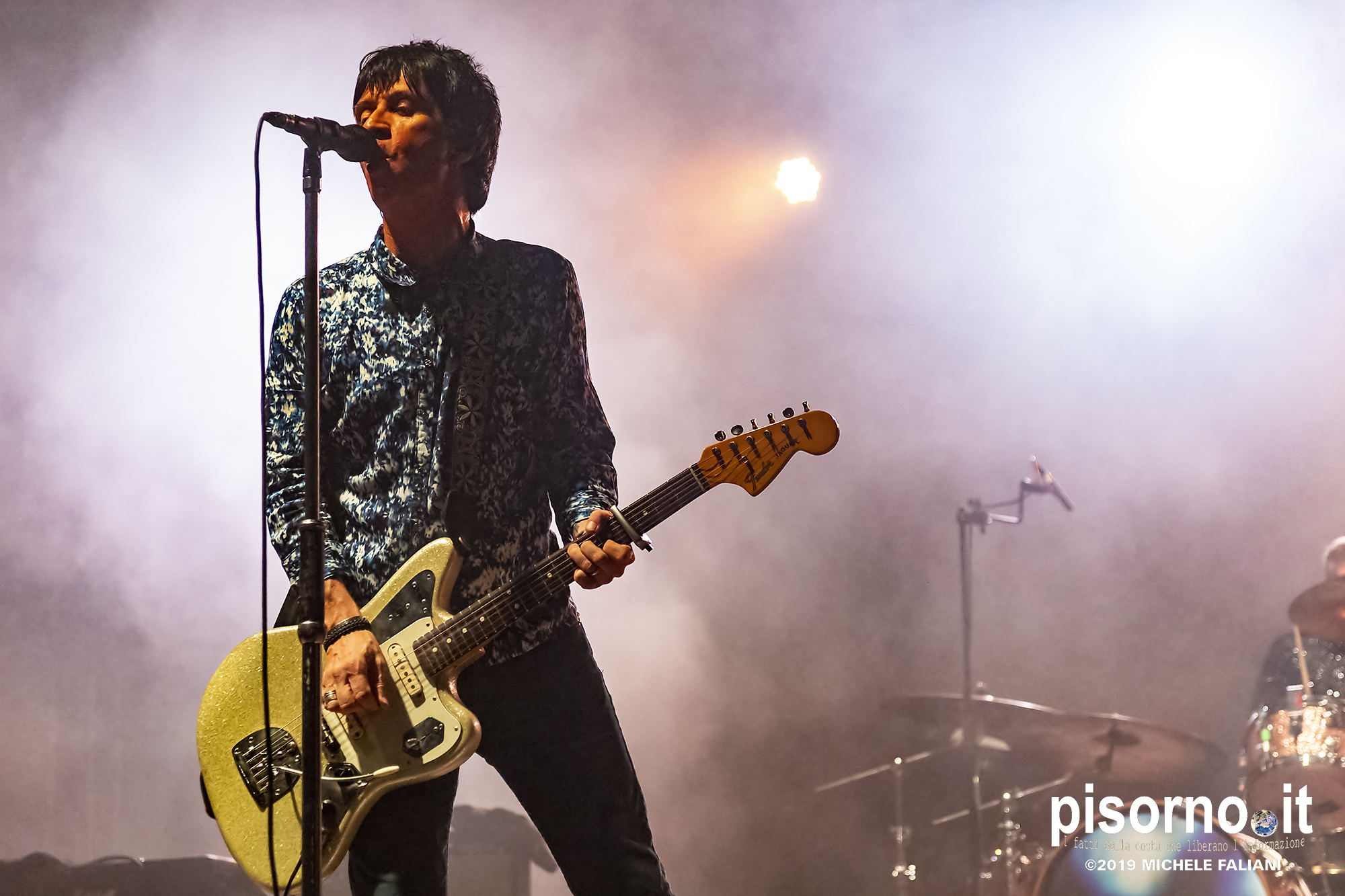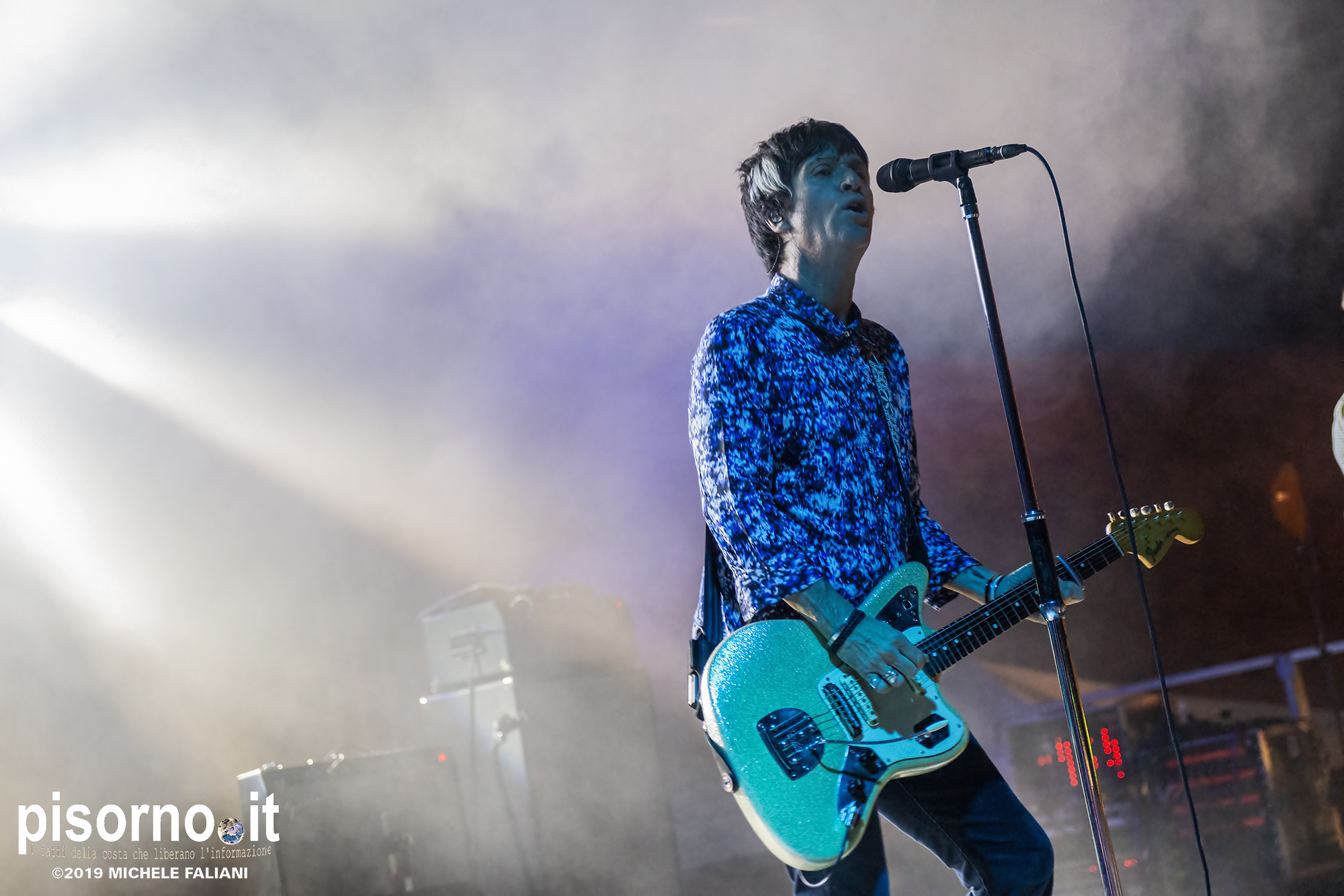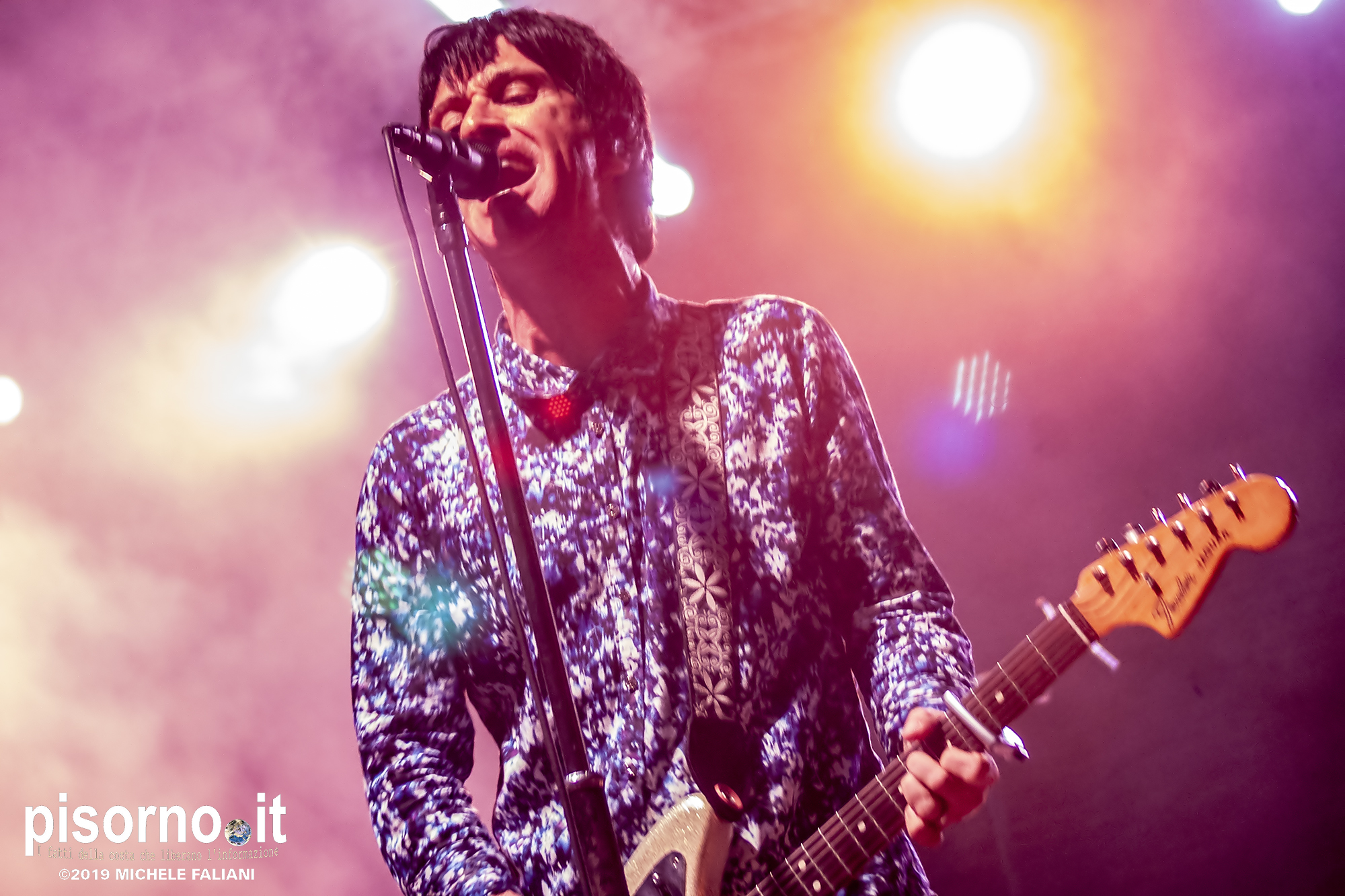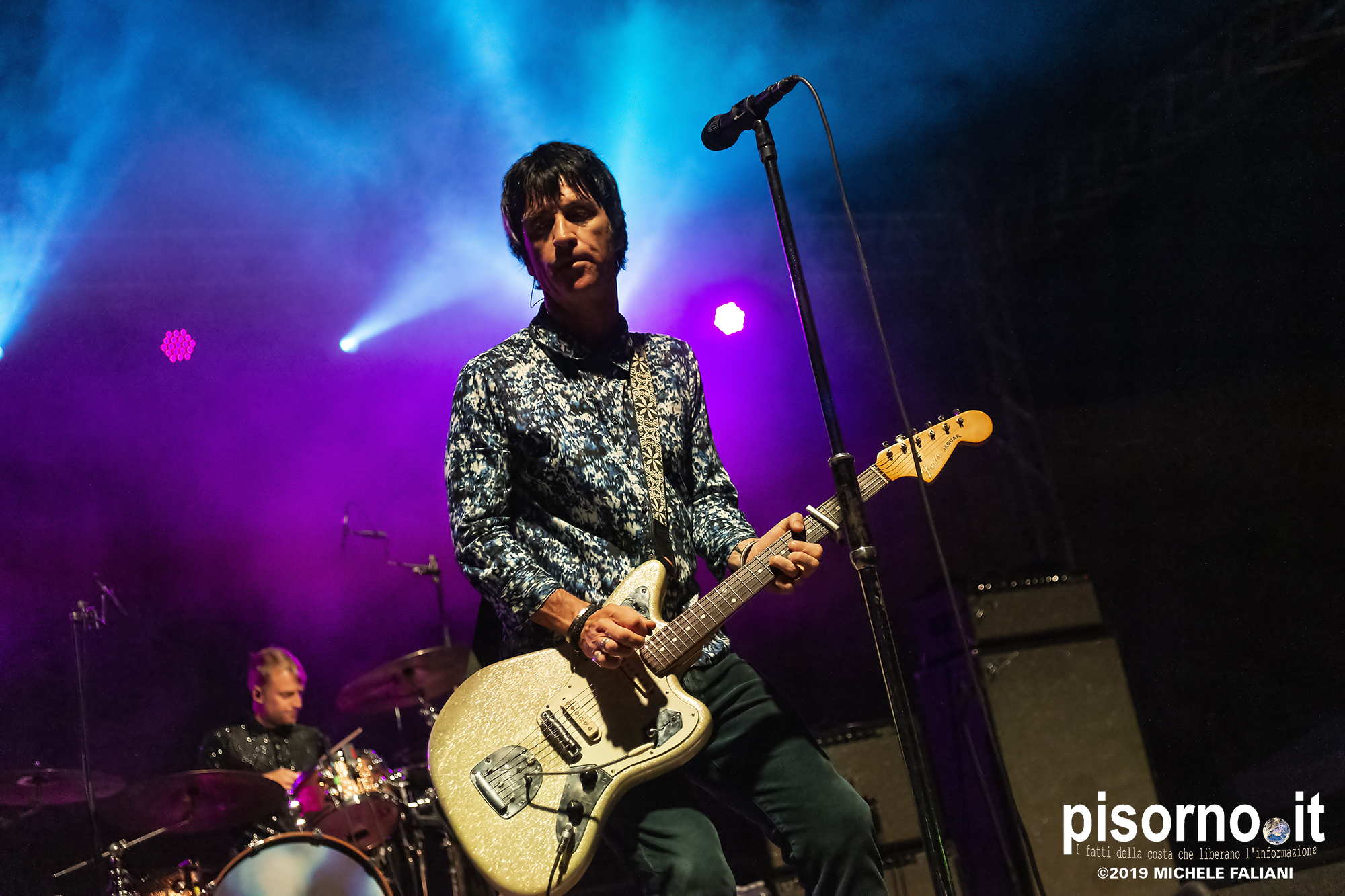 La Rocca Malatestiana di Cesena è un gioiello, e da quando i ragazzi di acieloaperto (bellissimo festival che si svolge ogni anno e che nelle passate edizioni ci ha visto ospiti per i concerti di Devendra Banhart e dei Calexico) ci organizzano concerti come quello di Johnny Marr, ci appare ancora più bella. Non sarò molto obbiettivo a parlare di questo concerto, visto che Johnny (e Morrissey, ovviamente) e gli Smiths sono stati insieme ai R.E.M. il grande amore della mia vita; sarebbe come far parlare Carlo Verdone di Jimi Hendrix, o Francesco De Gregori di Bob Dylan. Ma quello di Cesena, credetemi, è stato davvero perfetto. Strepitoso, anche più di quello dello scorso inverno a Milano, forse perché allora “Call the comet” era appena uscito e adesso che gli ascolti sono arrivati in tripla cifra mi sono sentito più coinvolto anche dalla scelta dei brani. Scelta che ha visto ben 6 canzoni del catalogo degli Smiths (con “Bigmouth strikes again” piazzata seconda in scaletta, per una delle tante ovazioni del pubblico), 2 del disco con gli Electronic e una cover di “I feel you” dei Depeche Mode, che usci su 7″ per il Record Store Day del 2015. Il resto della setlist è stato quasi tutto appannaggio del già citato “Call the comet”, uno dei dischi più belli del 2018, mentre per “The messenger” e per “Playland” c’è stato spazio soltanto per i due singoloni “New town velocity” e “Easy money”. Ma in tutte le 20 tracce del concerto il protagonista è stato lui, che con la sua Fender Jaguar ha deliziato me e tutti gli altri spettatori con i suoi geniali arpeggi e i suoi irresistibili riff, che lo hanno consacrato come uno dei chitarristi più seminali e più identificabili della storia del rock. Sì, certo. Siamo stati per un’ora e mezzo ad ascoltare un genio che ha scritto parecchie pagine della storia del rock degli ultimi 35 anni. È un appuntamento che, alla prossima occasione che Marr verrà in Italia, vi conviene non mancare.