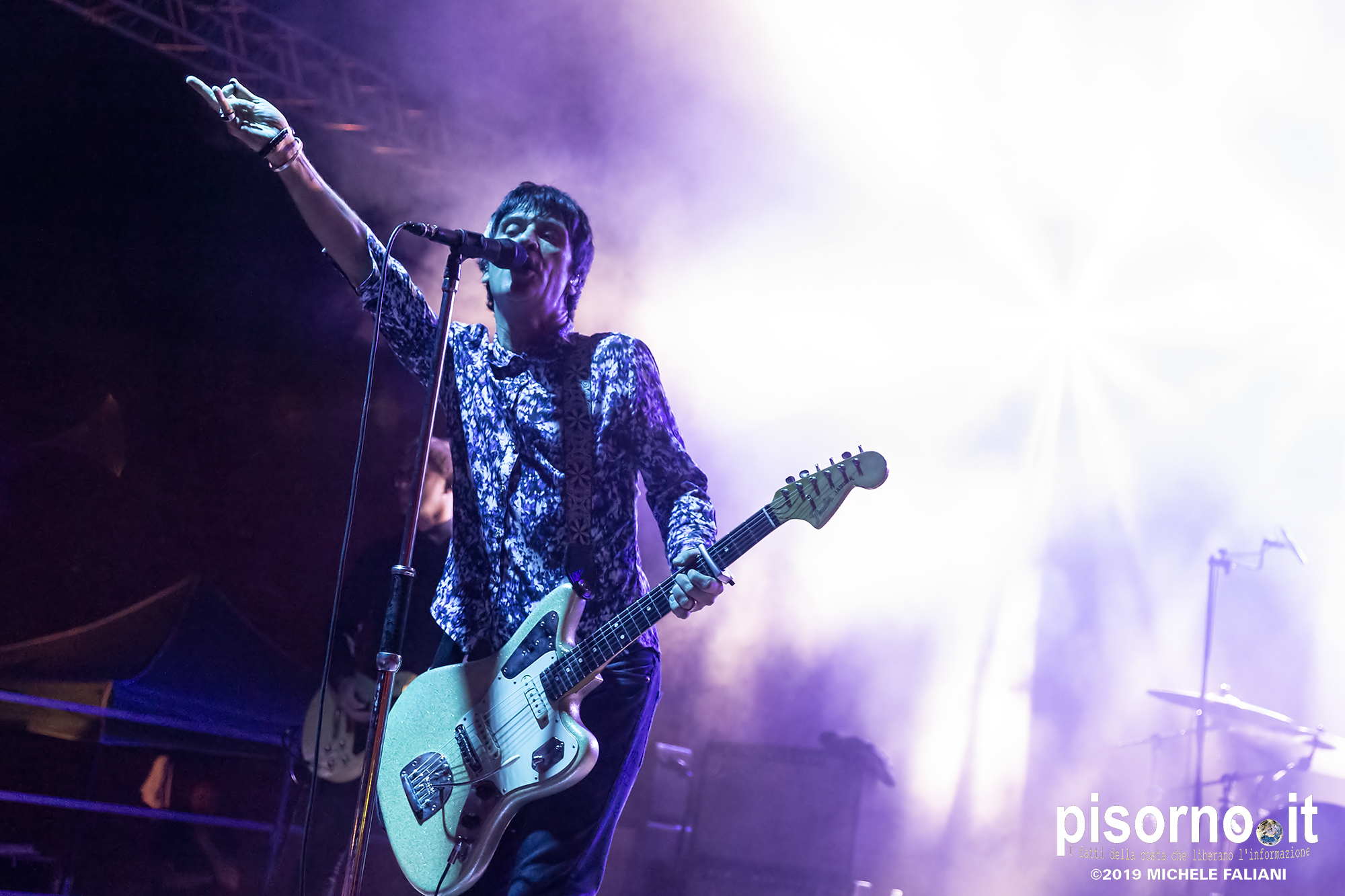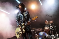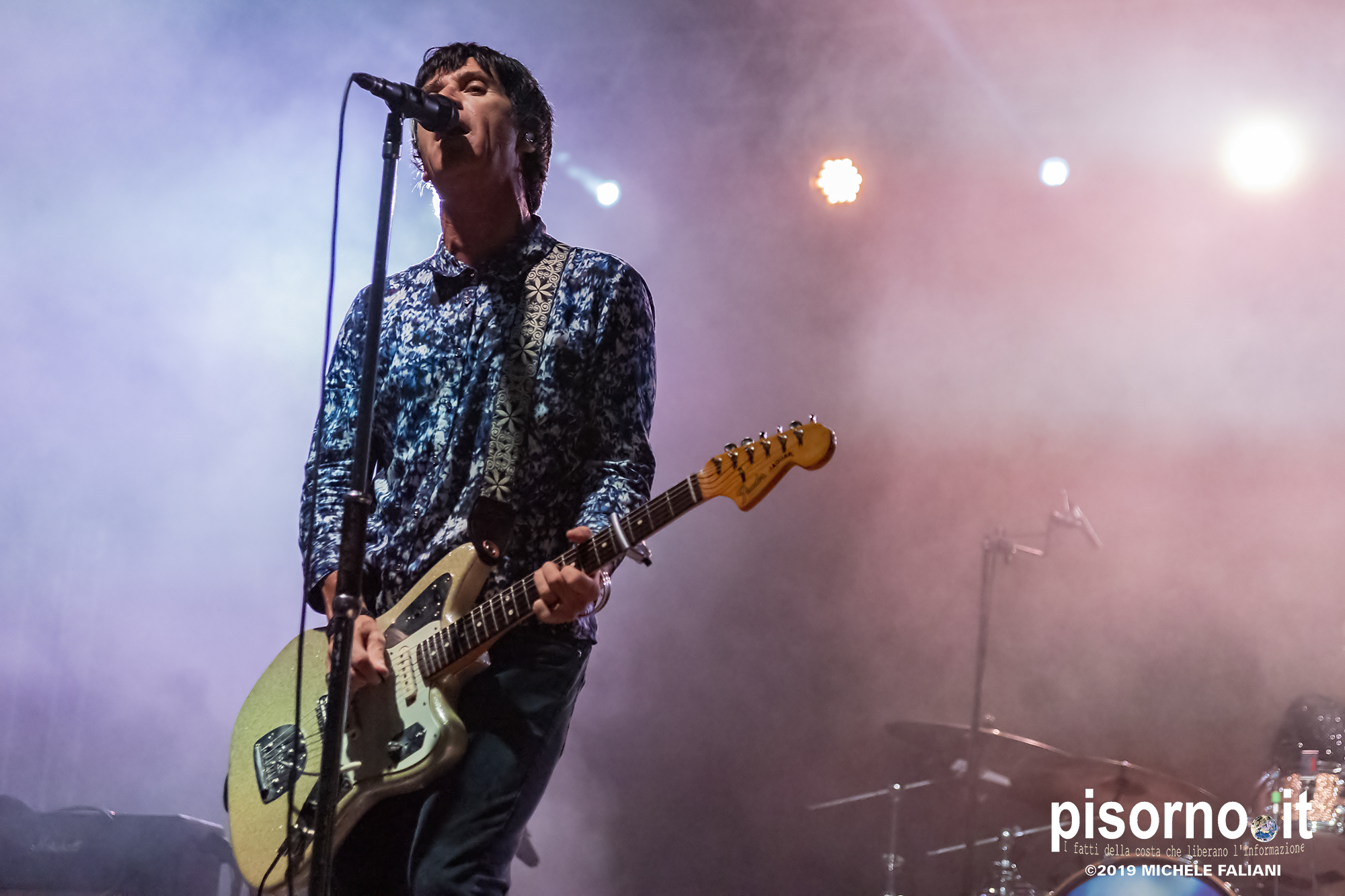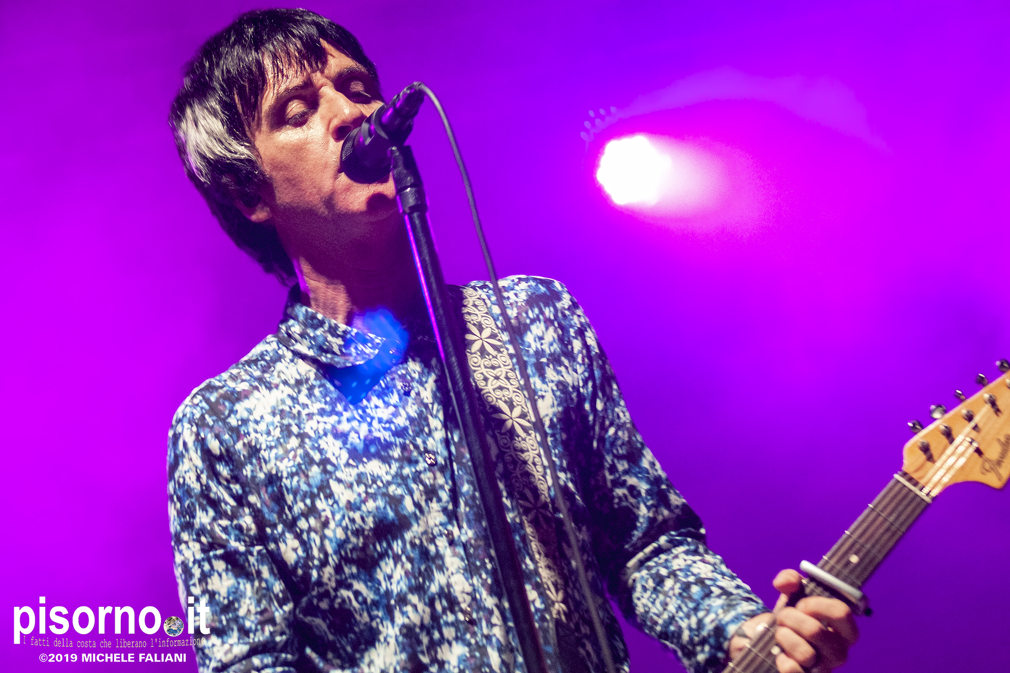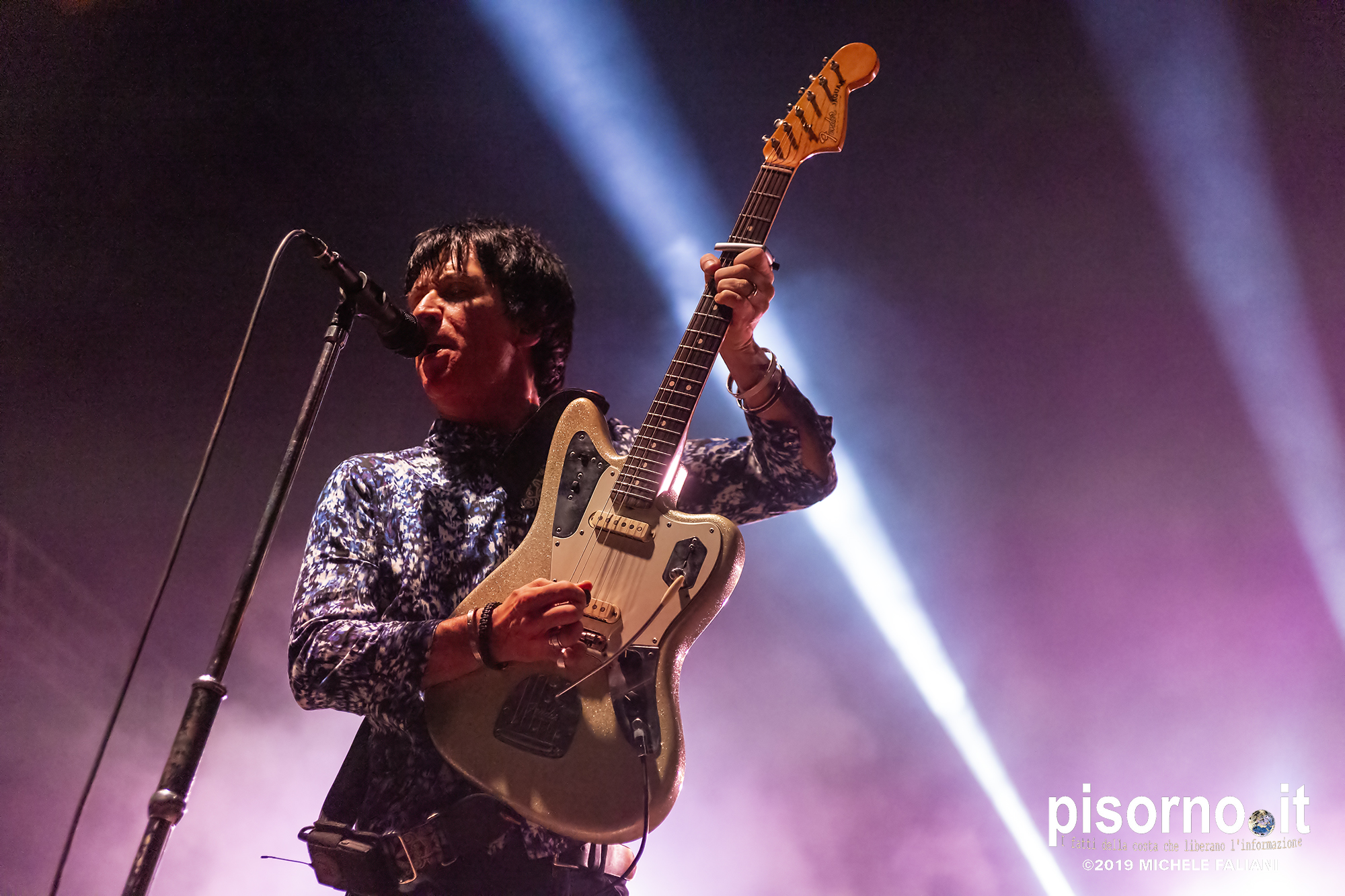 La Rocca Malatestiana di Cesena è un gioiello, e da quando i ragazzi di acieloaperto (bellissimo festival che si svolge ogni anno e che nelle passate edizioni ci ha visto ospiti per i concerti di Devendra Banhart e dei Calexico) ci organizzano concerti come quello di Johnny Marr, ci appare ancora più bella. Non sarò molto obbiettivo a parlare di questo concerto, visto che Johnny (e Morrissey, ovviamente) e gli Smiths sono stati insieme ai R.E.M. il grande amore della mia vita; sarebbe come far parlare Carlo Verdone di Jimi Hendrix, o Francesco De Gregori di Bob Dylan. Ma quello di Cesena, credetemi, è stato davvero perfetto. Strepitoso, anche più di quello dello scorso inverno a Milano, forse perché allora “Call the comet” era appena uscito e adesso che gli ascolti sono arrivati in tripla cifra mi sono sentito più coinvolto anche dalla scelta dei brani. Scelta che ha visto ben 6 canzoni del catalogo degli Smiths (con “Bigmouth strikes again” piazzata seconda in scaletta, per una delle tante ovazioni del pubblico), 2 del disco con gli Electronic e una cover di “I feel you” dei Depeche Mode, che usci su 7″ per il Record Store Day del 2015. Il resto della setlist è stato quasi tutto appannaggio del già citato “Call the comet”, uno dei dischi più belli del 2018, mentre per “The messenger” e per “Playland” c’è stato spazio soltanto per i due singoloni “New town velocity” e “Easy money”. Ma in tutte le 20 tracce del concerto il protagonista è stato lui, che con la sua Fender Jaguar ha deliziato me e tutti gli altri spettatori con i suoi geniali arpeggi e i suoi irresistibili riff, che lo hanno consacrato come uno dei chitarristi più seminali e più identificabili della storia del rock. Sì, certo. Siamo stati per un’ora e mezzo ad ascoltare un genio che ha scritto parecchie pagine della storia del rock degli ultimi 35 anni. È un appuntamento che, alla prossima occasione che Marr verrà in Italia, vi conviene non mancare.
