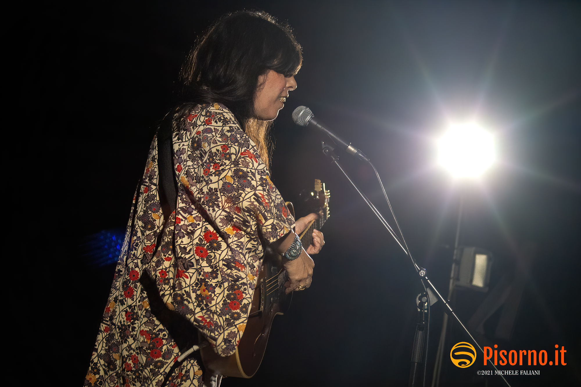 Ad aprire Emma, che per chi ancora non la conoscesse è una cantautrice romana che si divide fra Londra, Parigi e New York da parecchi anni, autrice di tre album e con un quarto in lavorazione. Un set di 7-8 canzoni fra cui la splendida “Julian’s wings” tratta dall’ultimo lavoro “St. Peter’s”, o “Paris rain” da “Minor white” del 2009. Ballate folk eseguite con la tecnica del fingerpicking e interpretate dalla voce incredibile di Emma, straordinaria come sempre, che ha finito con “500 miles away from home” di Bobby Bare, cantata insieme al pubblico.