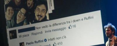 Paolo Ruffini, sulla sua pagina Facebook, ha pubblicizzato lo spettacolo con una foto che lo vede immortalato insieme agli attori disabili della compagnia. In uno dei commenti si legge “non vedo la differenza tra i down e Ruffini”, e Ruffini ha risposto in modo splendido “infatti non c’è”, dimostrando come l’ironia sia un’arma letale contro la stupidità umana.