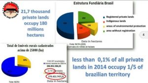 Altri recenti filmati hanno mostrato l’intensificazione della repressione violenta attuata a partire dall’agosto 2016 con immagini di villaggi e abitazioni devastate, di incursioni armate e di famiglie sfollate ai bordi delle strade che testimoniano la ripresa dell’offensiva sul campo da parte dei Fazenderos affiancata al contempo anche da una incisiva azione politica che nel gennaio 2017 ha indotto il governo Temer ad indebolire la Funai, Fondazione Nazionale dell’Indio, tagliando 360 posti da funzionario e togliendole competenze per assegnarle al Congresso, ove su 594 parlamentari ben 207 sono espressione dei latifondisti.