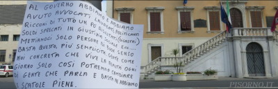 Ma nella protesta di Angelo, oltre alle rivendicazioni sulla vertenza Livorno, c’è anche la denuncia e la solidarietà per molte famiglie che a causa della perdita del lavoro hanno perso anche il diritto all’abitare e, rammenta la vicenda dove gli amministratori del vecchio deposito in via Mayer, hanno tolto la corrente e chiuso l’acqua ben sapendo che all’interno avevano trovato riparo famiglie con minori ma, ha anche parole di vicinanza, e al contempo rabbia, per la dipendente Conad licenziata per un panino.