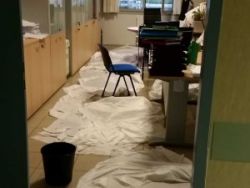 La situazione più drammatica si registra all’edificio 30 con acqua nel vano scale, sale operatorie non operative, spogliatoi allagati con reparti non operativi come la dialisi completamente allagata (intervento dei vigili del fuoco) con pazienti e personale in servizio ad attendere fuori all’aperto in attesa di capire cosa fare poiché l’allagamento potrebbe avere creato ben altri problemi ai macchinari e all’impianto elettrico.