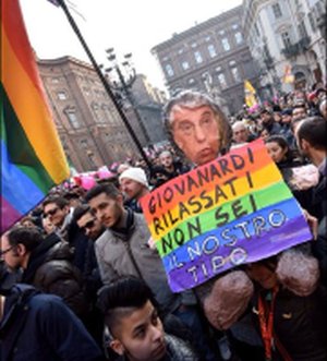 Invece, a sostegno della cosiddetta famiglia tradizionale, sono andati in scena sit-in nelle città di: Torino, Miliano e Siena con attivisti appartenenti al gruppo fondamentalista delle “sentinelle in piedi”, riproponendo il solito copione, a cui ormai ci hanno abituato nelle varie tournée svolte in tutta Italia, in piedi, in silenzio, leggendo un libro. E, non è mancato il protagonismo del solito Carlo Giovanardi (del resto, preso di mira in molti cartelloni dei manifestanti), che ha annunciato la sfida sui numeri al Family Day, di sabato prossimo a Roma.