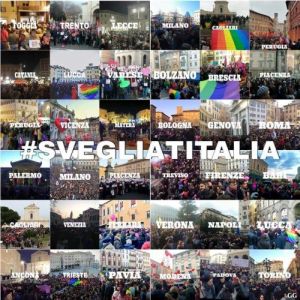 Da segnalare sulle iniziative delle 100 piazze, l’accoglienza da ovazione, con migliaia di applausi, riservata alla parlamentare del Pd Monica Cirinnà (firmataria del ddl sulle unioni civili), al momento in cui è salita sul palco nella manifestazione in piazza del Pantheon a Roma, che ha assicurato: “Siamo qui per diritti, non contro qualcuno”. Anche a Londra un sit-in con circa 200manifestanti con tanto di cartelli, sveglie e striscioni per chiedere “uguali diritti”.