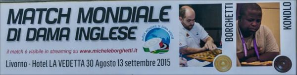 Dal 30 agosto al 13 settembre 2015 si svolgerà a Livorno, presso ‘Hotel La Vedetta” a Montenero, il match mondiale per l’assegnazione del titolo di Campione del mondo di dama (tipologia inglese, la più diffusa nel mondo).