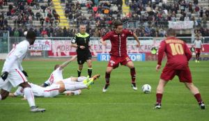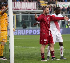- Ora il pubblico di fede amaranto chiede la vittoria e la squadra sembra crederci. Il tempo scorre via veloce, nel recupero l’azione da gol più nitida per la squadra amaranto: tiro ancora una volta di Cazzola, deviazione di un difensore biancorosso e miracolo di Micai che smanaccia una palla velenosa.