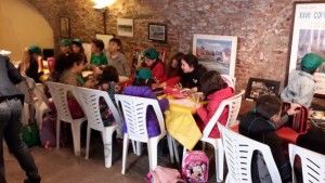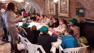 Con le classi II A e II B della Scuola Elementare C. Cattaneo, accompagnate dalle insegnanti Chiara Scarpellini, Manuela Ghignola e Tiziana Tafuri, il giorno 28 aprile, sono state invece preparate 3 attività: una sulla realizzazione delle bandiere dei 16 rioni della nostra città; le altre due prevedevano la realizzazione di due cartelloni, uno sulla rielaborazione di ciò che è stato fatto in aula, l’altro sulle modalità di trasporto e di immagazzinamento delle merci che venivano depositate nelle cantine dei palazzi mercantili come quella dell’attuale Coppa Barontini.