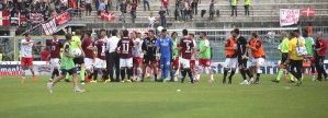 La partita si conclude oltre il triplice fischio del direttore di gara, infatti il portiere Mazzoni viene espulso per aver rifilato un colpo proibito al centrocampista Brighenti. Saltano i nervi ad alcuni giocatori, terna arbitrale e dirigenti hanno il loro bel daffare per tener calmi i più agitati. La situazione si tranquillizza e la partita termina con i giocatori ospiti che vanno a far festa sotto il settore occupato dai propri tifosi mentre il popolo di fede amaranto mastica amaro ma applaude comunque la squadra.