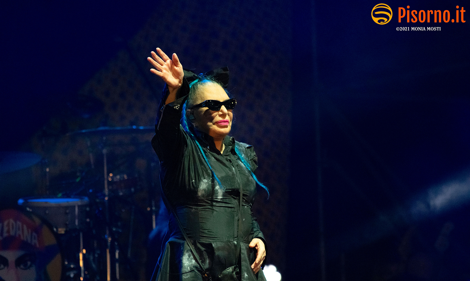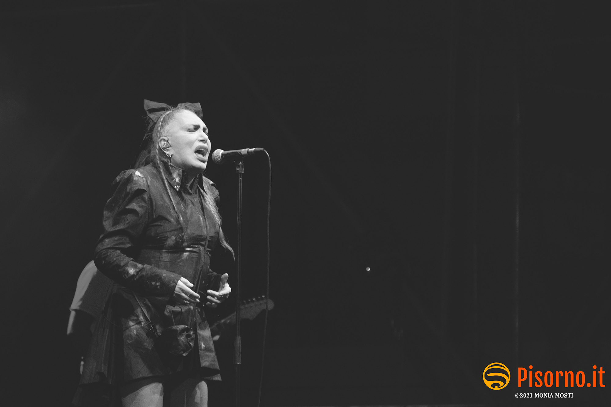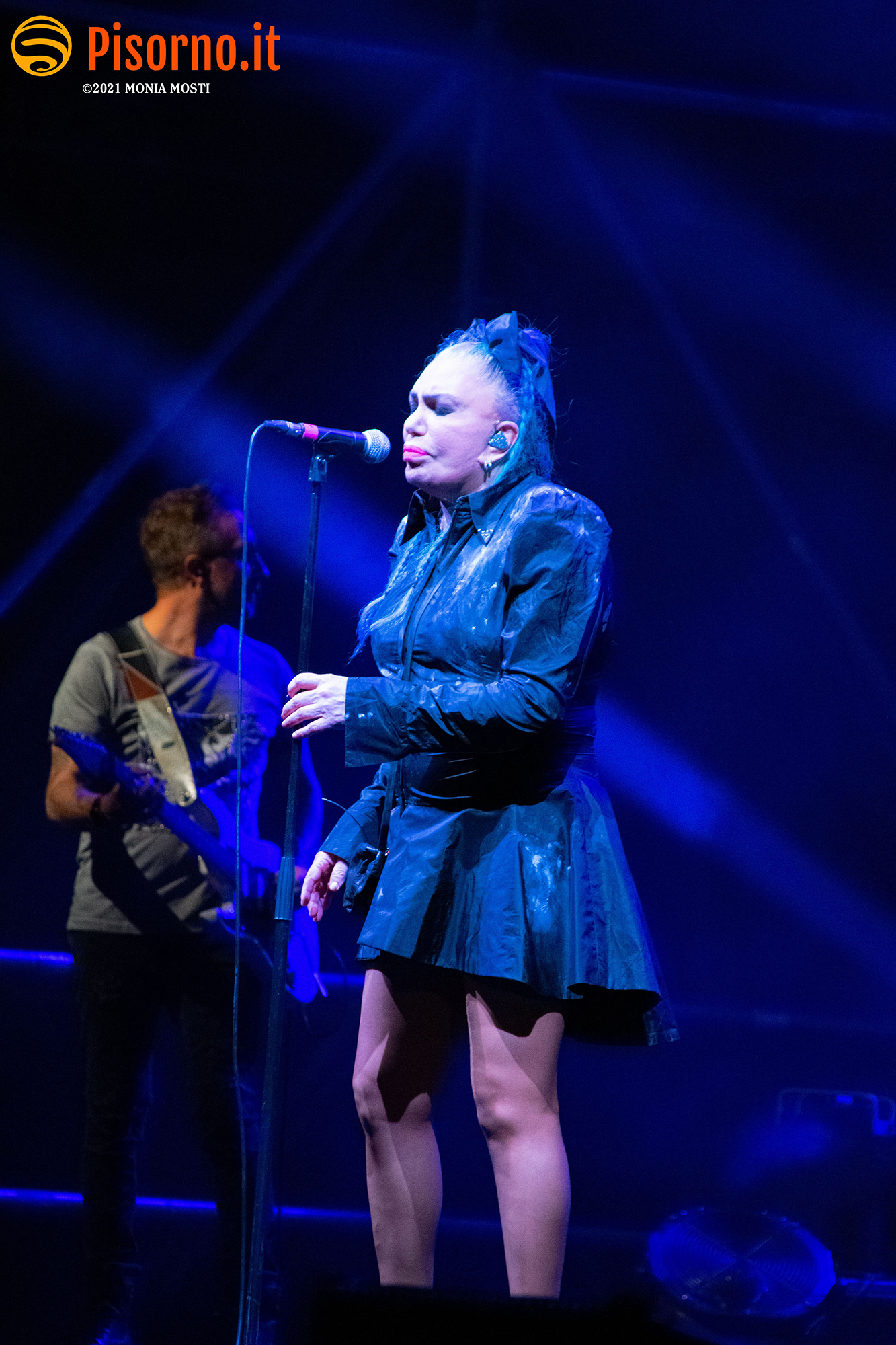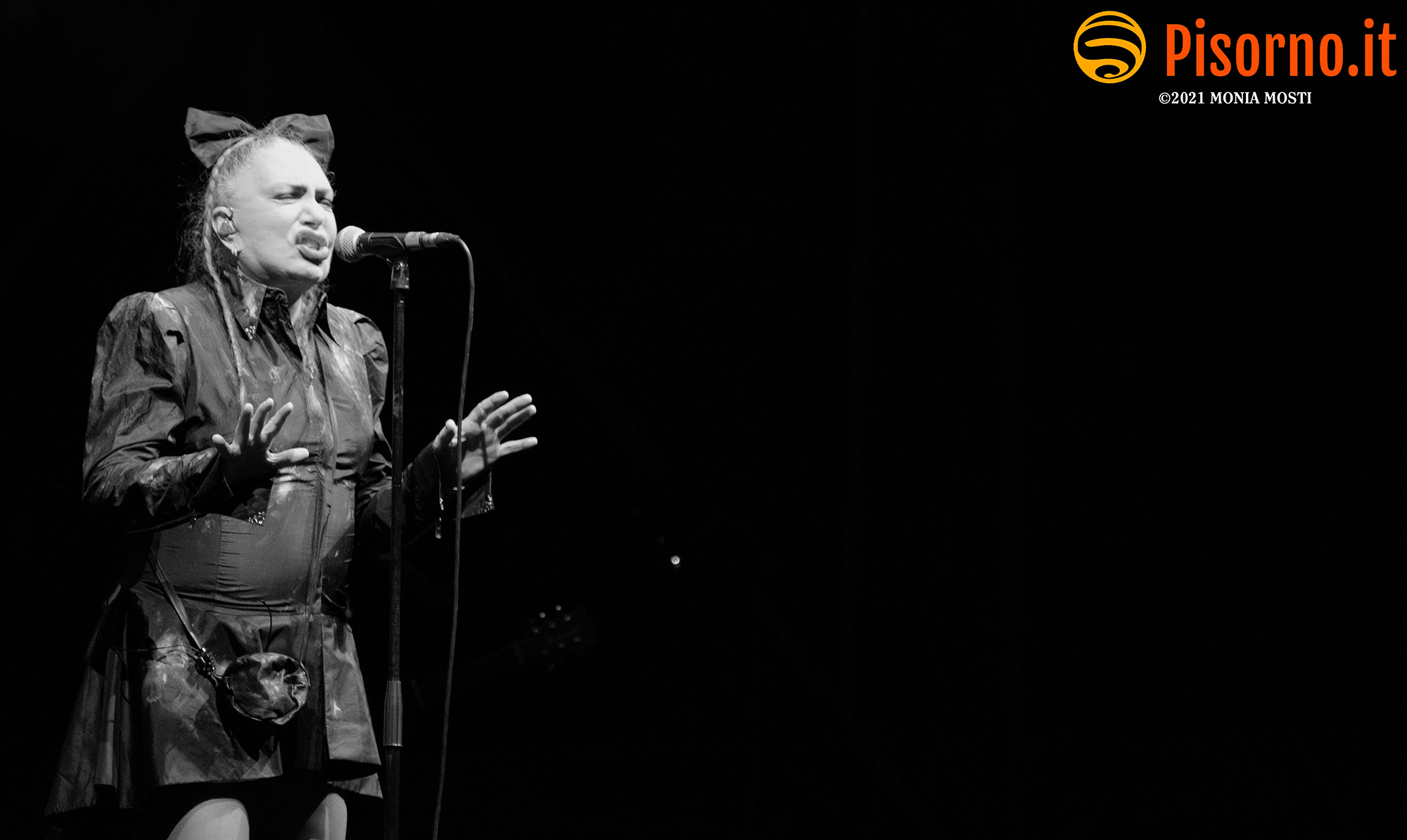 La cantante di Bagnara Calabra inizia il concerto con il brano che dà nome al tour ed invita il pubblico a rispettare le regole Anti-Covid19 per evitare di ritrovarsi di nuovo rinchiusa nel suo armadio e non poter incontrare il suo pubblico che tanto ama. Questo appello rischia però di “freddare” la platea nella primissima parte di concerto fino a quando l’atmosfera si scalda con la straordinaria esecuzione di “Cosa ti aspetti da me” presentata dalla Bertè come il sassolino nella scarpa che si è tolta dopo che Claudio Baglioni non la selezionò per il suo Sanremo ma che ebbe un grande successo nel Sanremo 2019, quello guidato da Amadeus. Durante la serata vengono eseguiti brani che altri autori scrissero per lei come “Il mare d’inverno” scritta da Enrico Ruggeri, “ J’adore Venise” scritta da Ivano Fossati e “Re” scritta da Pino Mango e con la quale si presentò a Sanremo 1986 con la famosissima pancia da donna incinta e che tanto le costò sia in termini di critiche che di contratto discografico (“Solo Sting apprezzò la mia scelta” dichiara la Bertè). Commovente il momento in cui la Bertè ricorda quel tragico 12 maggio 1995 in cui perse la sorella Mimì e per la quale scrisse “Luna”. La bravura della sua band è indiscutibile, Ivano Zanotti alla batteria trascina letteralmente la folla e con il suo groove impeccabile attira l’attenzione di tutti. Alle chitarre sia elettriche che acustiche ci sono Marco Grasselli e Stefano Cerisoli che si alternano nelle parti soliste. Al basso Pierluigi Mingotti, alle tastiere Alberto Lunari e ai cori Aida Giulia Teodolinda Castignola conosciuta come Aida Cooper la quale esegue una versione molto originale di “Help” dei Beatles. Il concerto finisce con qualche bis tra i quali le celeberrime “E la luna bussò” e “In alto mare”.
