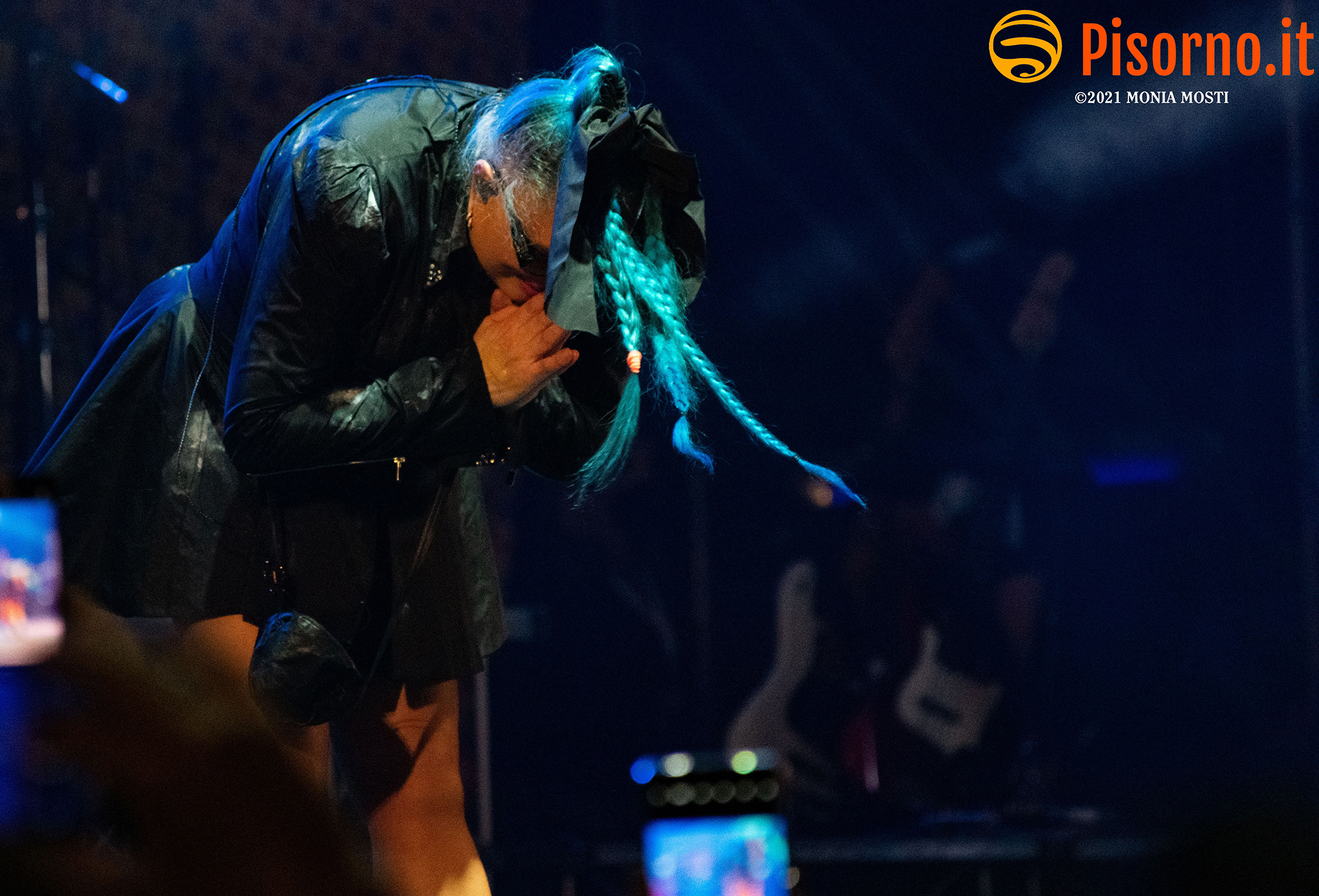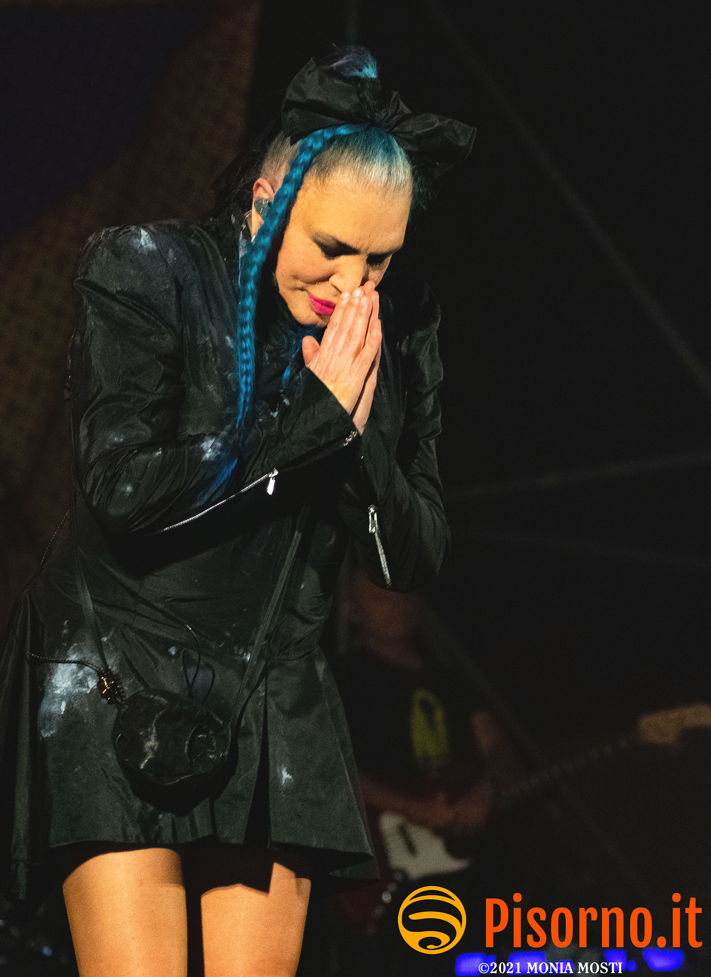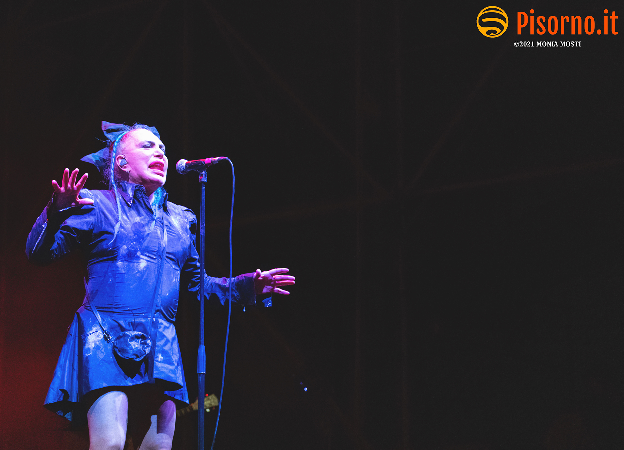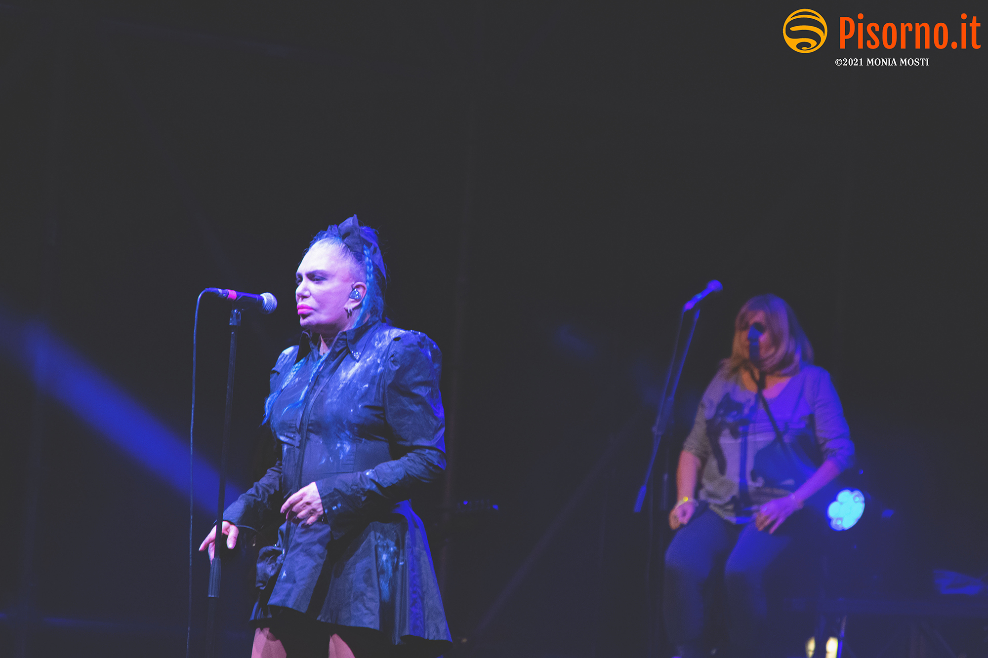 La cantante di Bagnara Calabra inizia il concerto con il brano che dà nome al tour ed invita il pubblico a rispettare le regole Anti-Covid19 per evitare di ritrovarsi di nuovo rinchiusa nel suo armadio e non poter incontrare il suo pubblico che tanto ama. Questo appello rischia però di “freddare” la platea nella primissima parte di concerto fino a quando l’atmosfera si scalda con la straordinaria esecuzione di “Cosa ti aspetti da me” presentata dalla Bertè come il sassolino nella scarpa che si è tolta dopo che Claudio Baglioni non la selezionò per il suo Sanremo ma che ebbe un grande successo nel Sanremo 2019, quello guidato da Amadeus. Durante la serata vengono eseguiti brani che altri autori scrissero per lei come “Il mare d’inverno” scritta da Enrico Ruggeri, “ J’adore Venise” scritta da Ivano Fossati e “Re” scritta da Pino Mango e con la quale si presentò a Sanremo 1986 con la famosissima pancia da donna incinta e che tanto le costò sia in termini di critiche che di contratto discografico (“Solo Sting apprezzò la mia scelta” dichiara la Bertè). Commovente il momento in cui la Bertè ricorda quel tragico 12 maggio 1995 in cui perse la sorella Mimì e per la quale scrisse “Luna”. La bravura della sua band è indiscutibile, Ivano Zanotti alla batteria trascina letteralmente la folla e con il suo groove impeccabile attira l’attenzione di tutti. Alle chitarre sia elettriche che acustiche ci sono Marco Grasselli e Stefano Cerisoli che si alternano nelle parti soliste. Al basso Pierluigi Mingotti, alle tastiere Alberto Lunari e ai cori Aida Giulia Teodolinda Castignola conosciuta come Aida Cooper la quale esegue una versione molto originale di “Help” dei Beatles. Il concerto finisce con qualche bis tra i quali le celeberrime “E la luna bussò” e “In alto mare”.