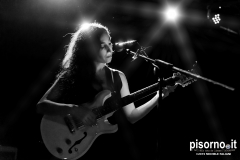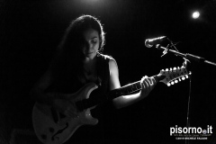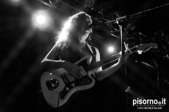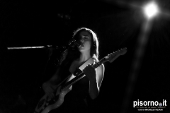 È uscito da qualche mese “For my crimes”, l’ottavo album di Marissa Nadler, e il tour promozionale l’ha portata in Italia per tre date. Noi l’abbiamo seguita nella tappa di Bologna, e le differenze con il concerto di Parma di qualche anno fa sono state sostanziali. Sia ben chiaro, Marissa è ancora timidissima come cinque anni fa, tanto da pregare il suo chitarrista Milky Burgess a ‘intrattenere’ il pubblico quando si rendeva necessario accordare la chitarra; è che in questo lustro il suono della Nadler si è leggermente discostato dal folk spettrale delle origini, aggiungendo suoni più crudi e ritmi più sostenuti, per un risultato che si avvicina di più ad altre due nostre beniamine come Angel Olsen e Sharon Van Etten (non a caso entrambe ospiti nell’ultimo disco). A partire da “Poison”, la prima traccia della scaletta che è anche il lato A di un 7″ recentemente pubblicato a doppio nome con John Cale, passando per il fingerpicking di “Drive” (“Non è una cover, ma vi prometto che quella dei R.E.M. la imparo per la prossima volta che vengo” scherza prima di iniziare), per il capolavoro “All our of catastrophes” è un susseguirsi di piccoli capolavori eterei e sognanti, nei quali la Nadler gioca con la loop station per creare strati di chitarre e voci che incantano il pubblico del Locomotiv, fino ad arrivare al doppio bis di “We are coming back” e alla sorpresa finale di “Save me a place” dei Fleetwood Mac, eseguita da sola senza l’aiuto di Milky. 13 canzoni, un’ora e 20 minuti di perfezione e di brividi ininterrotti.
