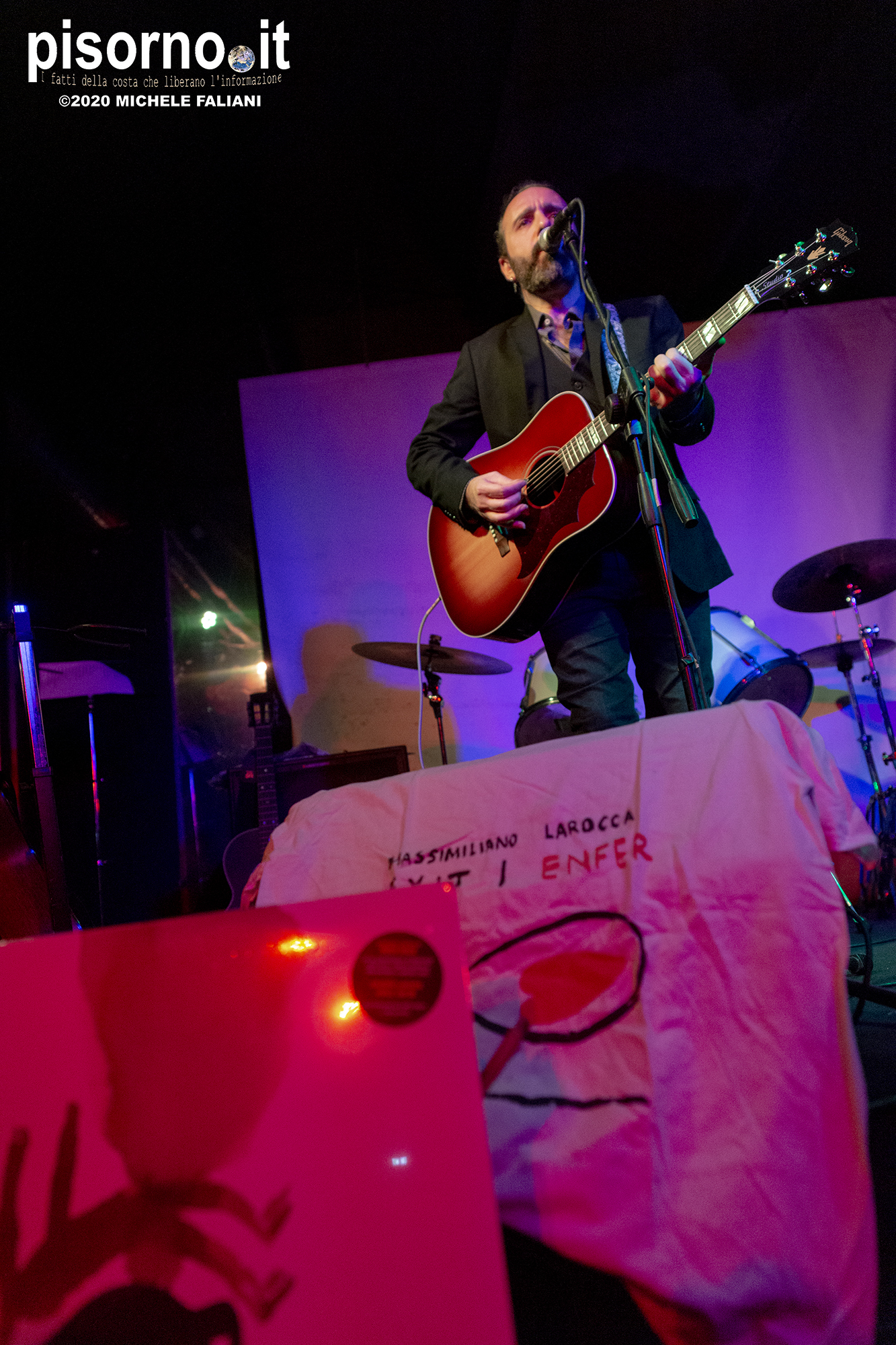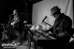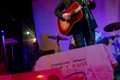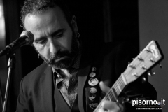 “Exit | Enfer”, il quinto album di Massimiliano Larocca, è uscito da quasi un anno, ma lockdown e restrizioni ne hanno impedito un’accurata promozione. Un disco importante, prodotto dall’ex Bad Seed Hugo Race e con ospiti prestigiosi come Howe Gelb, Don Antonio, Lorenzo Corti ed Enrico Gabrielli, proposto nella serata al Caracol in un’inconsueta veste unplugged, da Max e dal pianista Gianfilippo Boni. Tutta la scaletta incentrata sull’album, eseguito quasi per intero, più qualche escursione nei repertori di alcuni dei musicisti che hanno maggiormente contribuito alla formazione di Larocca (Luigi Tenco, Bob Dylan e Lou Reed), eseguite in modo più che convincente. Ma anche i brani di “Exit | Enfer”, pur in versione stripped-down, hanno mantenuto intatte la loro forza espressiva e il loro fascino. Menzione particolare per “Cose che non cambiano”, eseguita in due versioni diverse, per “Black love” e per “Perdiamoci”, e per il finale, con la partecipazione di Dome La Muerte, per una bella versione di “Sunday morning” dei Velvet Underground.