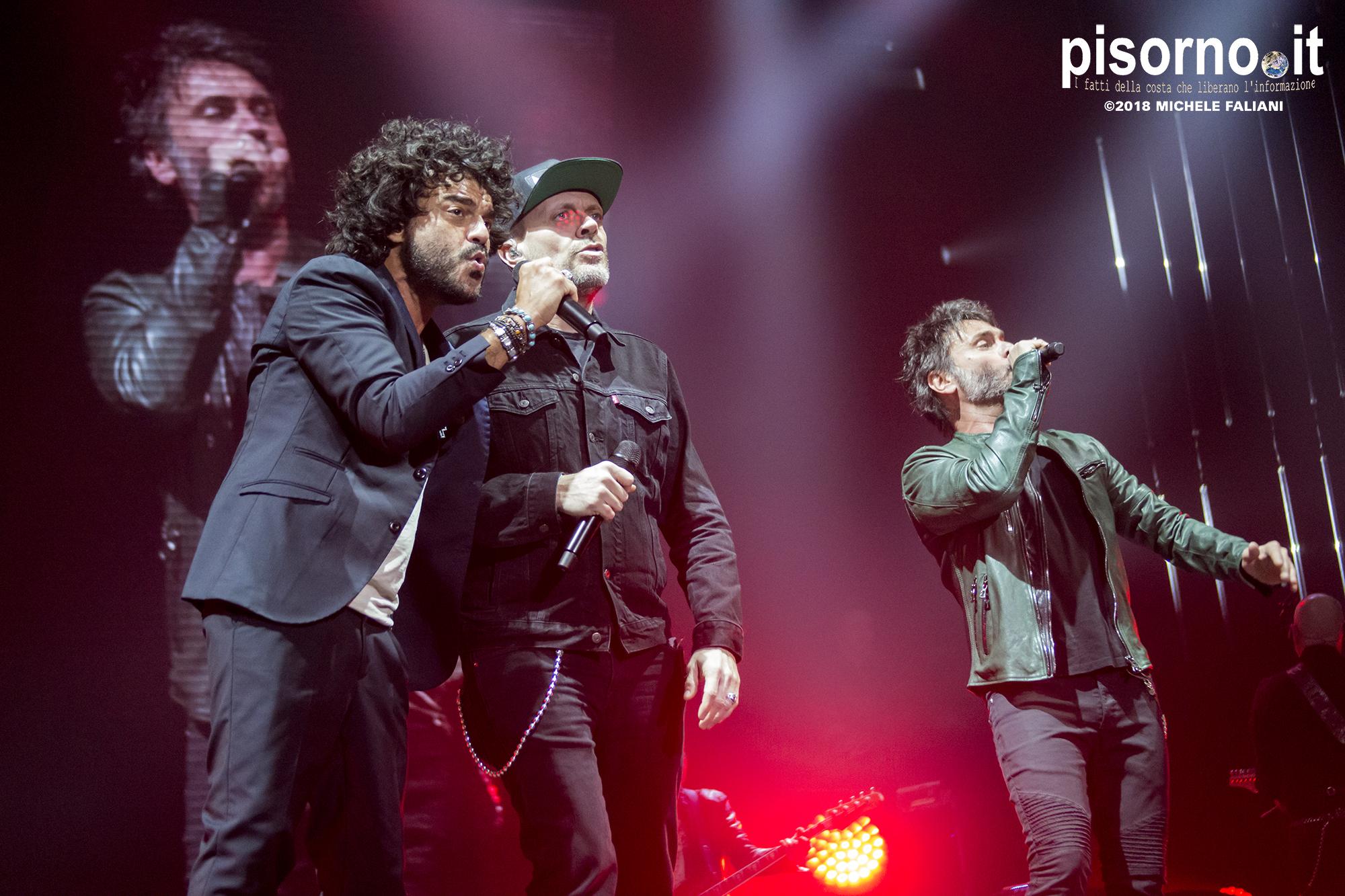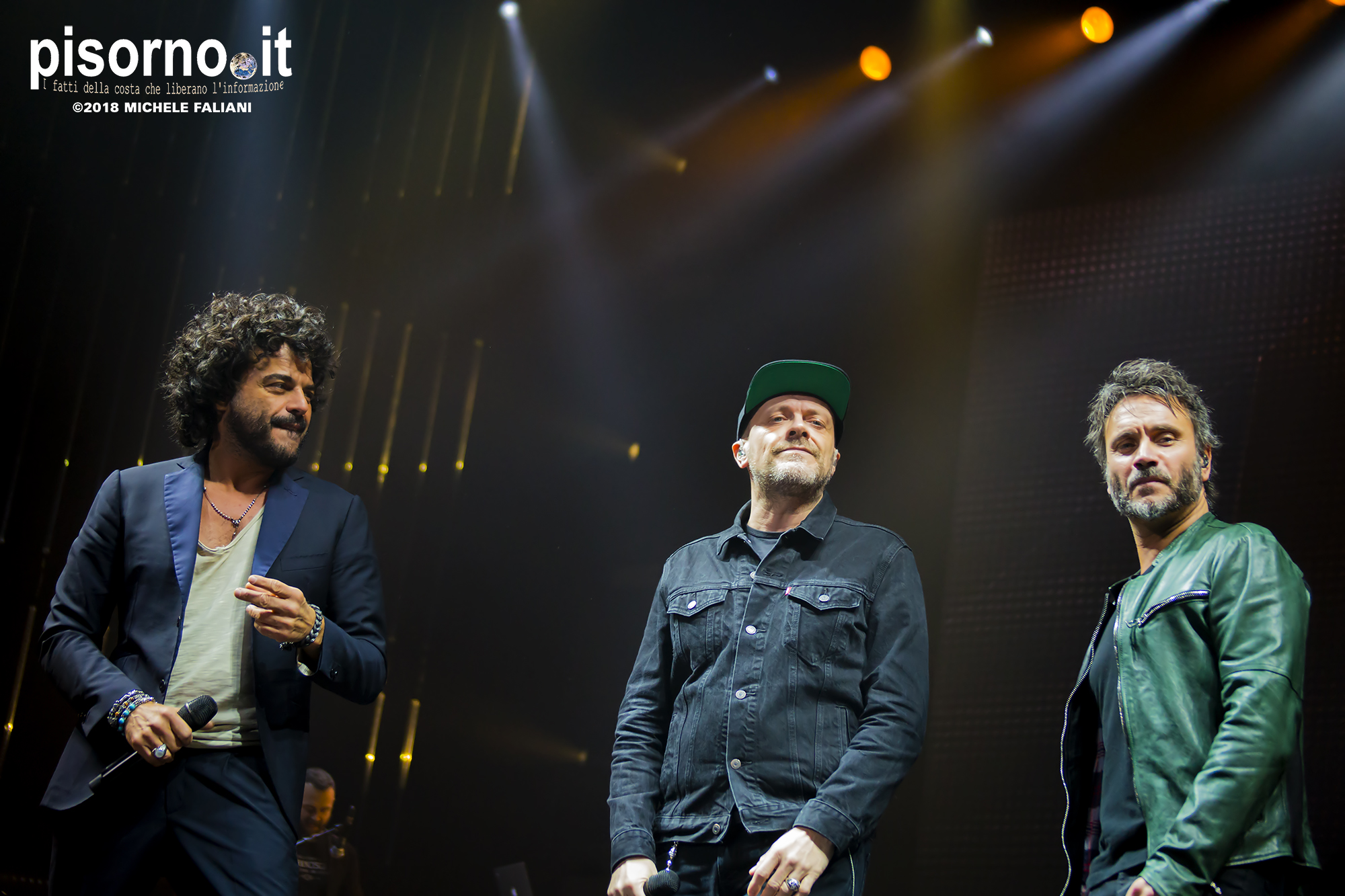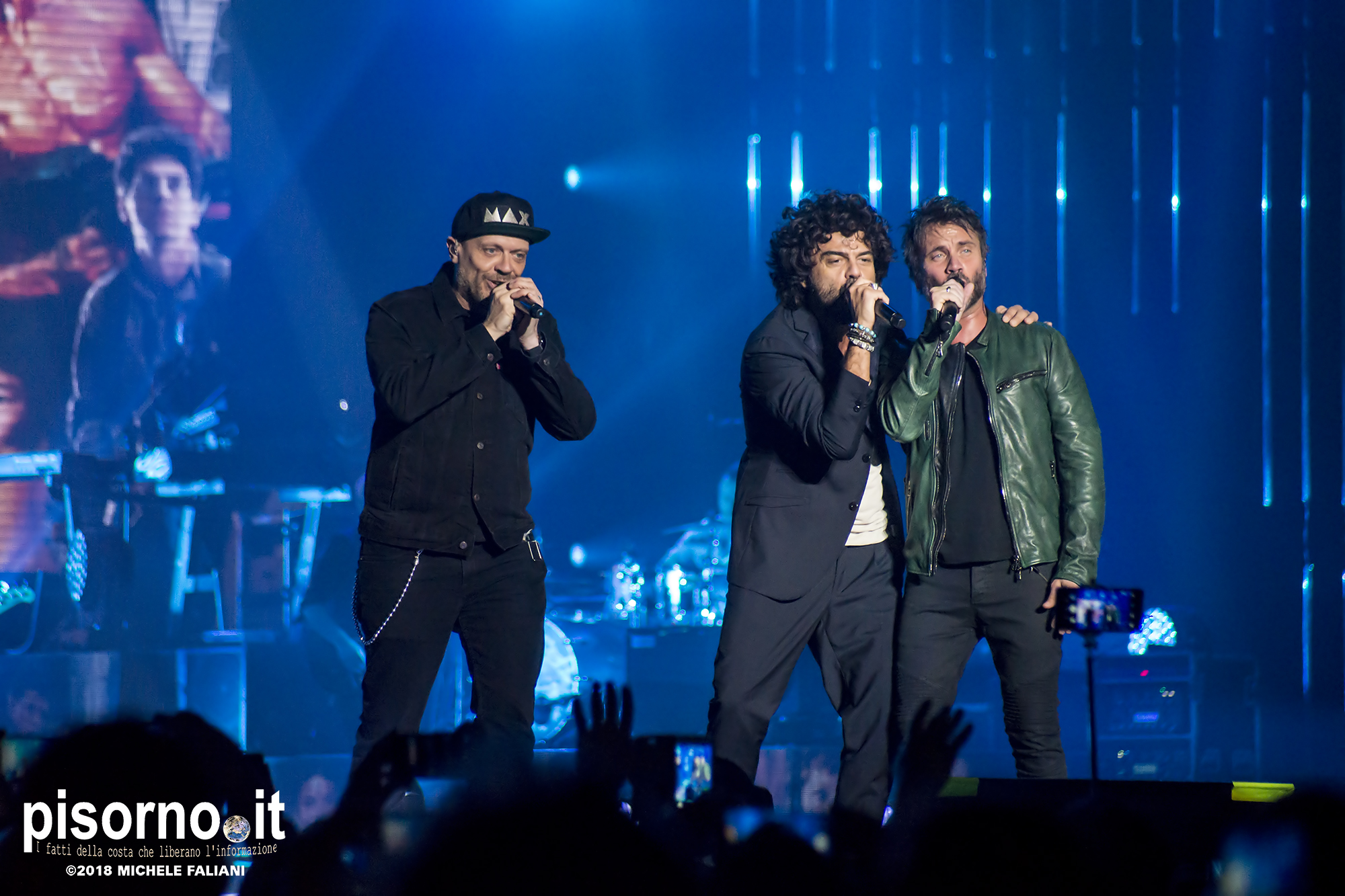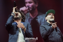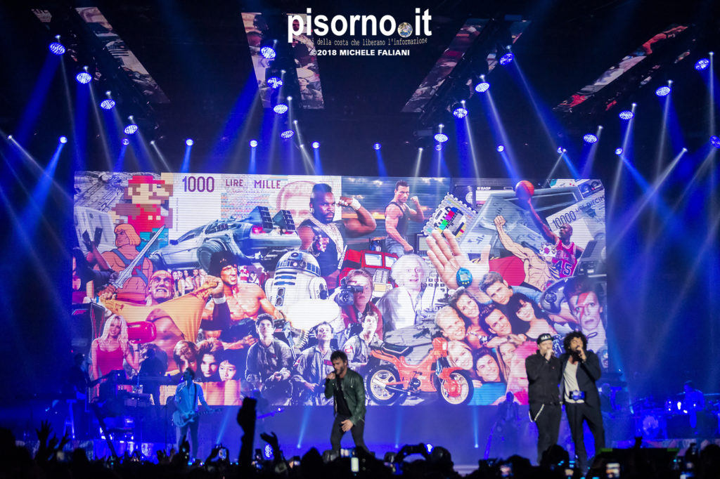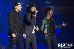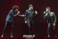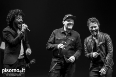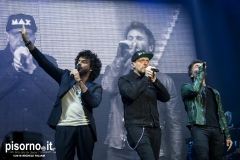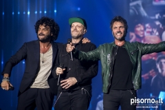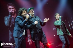 Ok, non saremo ai livelli degli storici tour di Dalla & De Gregori o di De André con la PFM, ma trovatemi tre artisti capaci di mettere insieme i loro numeri: Pezzali ha venduto più di 7 milioni di dischi, Renga ha quasi toccato il numero dei 2000 concerti (carrieria con i Timoria compresa), Nek è l’artista più suonato dalle radio ogni volta che pubblica un disco. Inevitabile che questo tour congiunto (idea nata durante le registrazioni di “Duri da battere”, singolo di Max Pezzali con ospiti i due amici) riscuotesse il successo che sta avendo. Anche al Modigliani Forum di Livorno sold out sfiorato e pubblico in delirio per quasi due ore mezzo, con uno dopo l’altro alcuni degli inni della musica pop dai ’90 in poi: Gli anni, Il mio giorno più bello nel mondo, Laura non c’è, Hanno ucciso l’Uomo Ragno e tante altre. Una bella festa che ha reso felici migliaia di persone. E non è questo lo scopo dei concerti dal vivo?