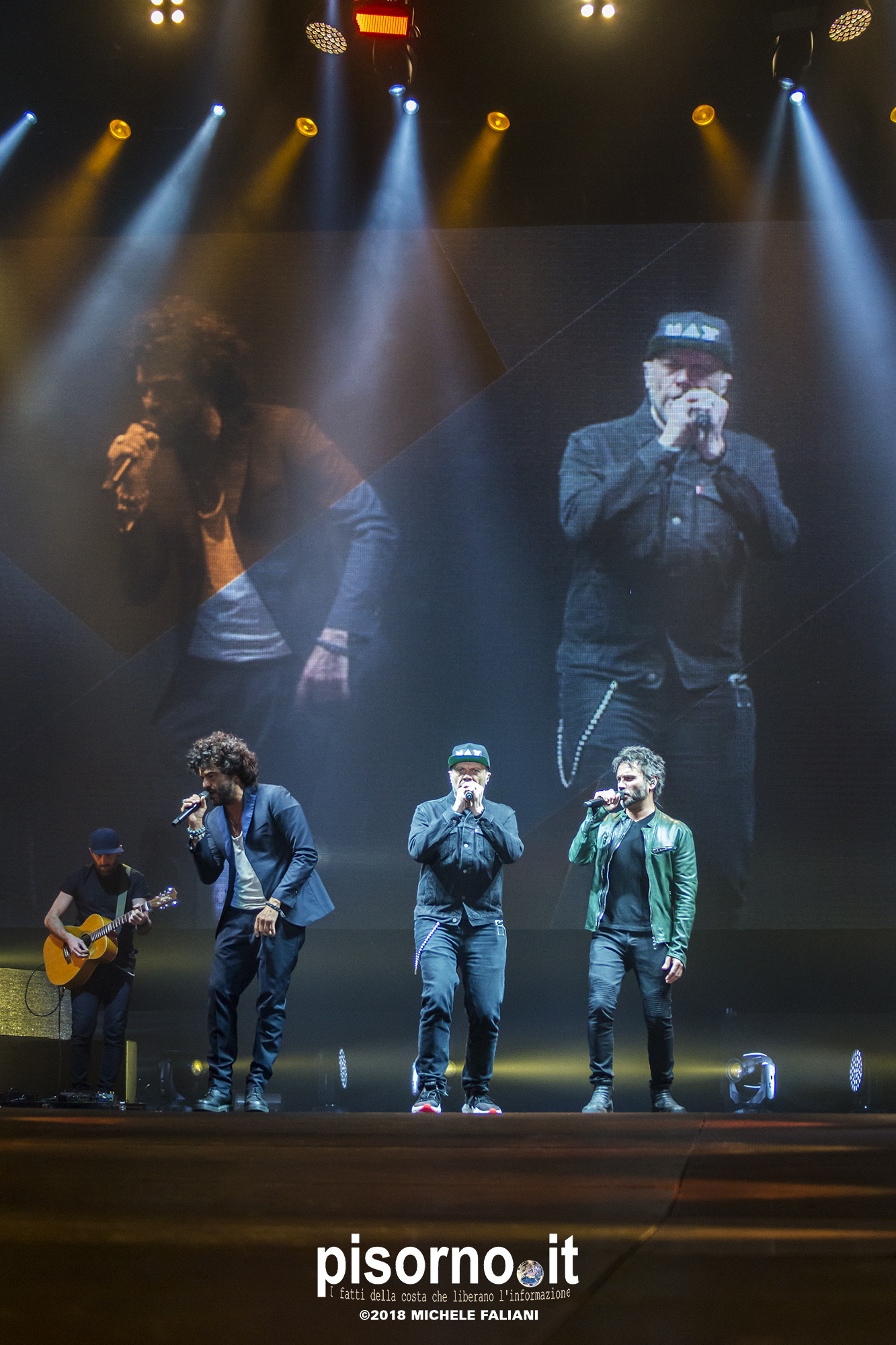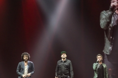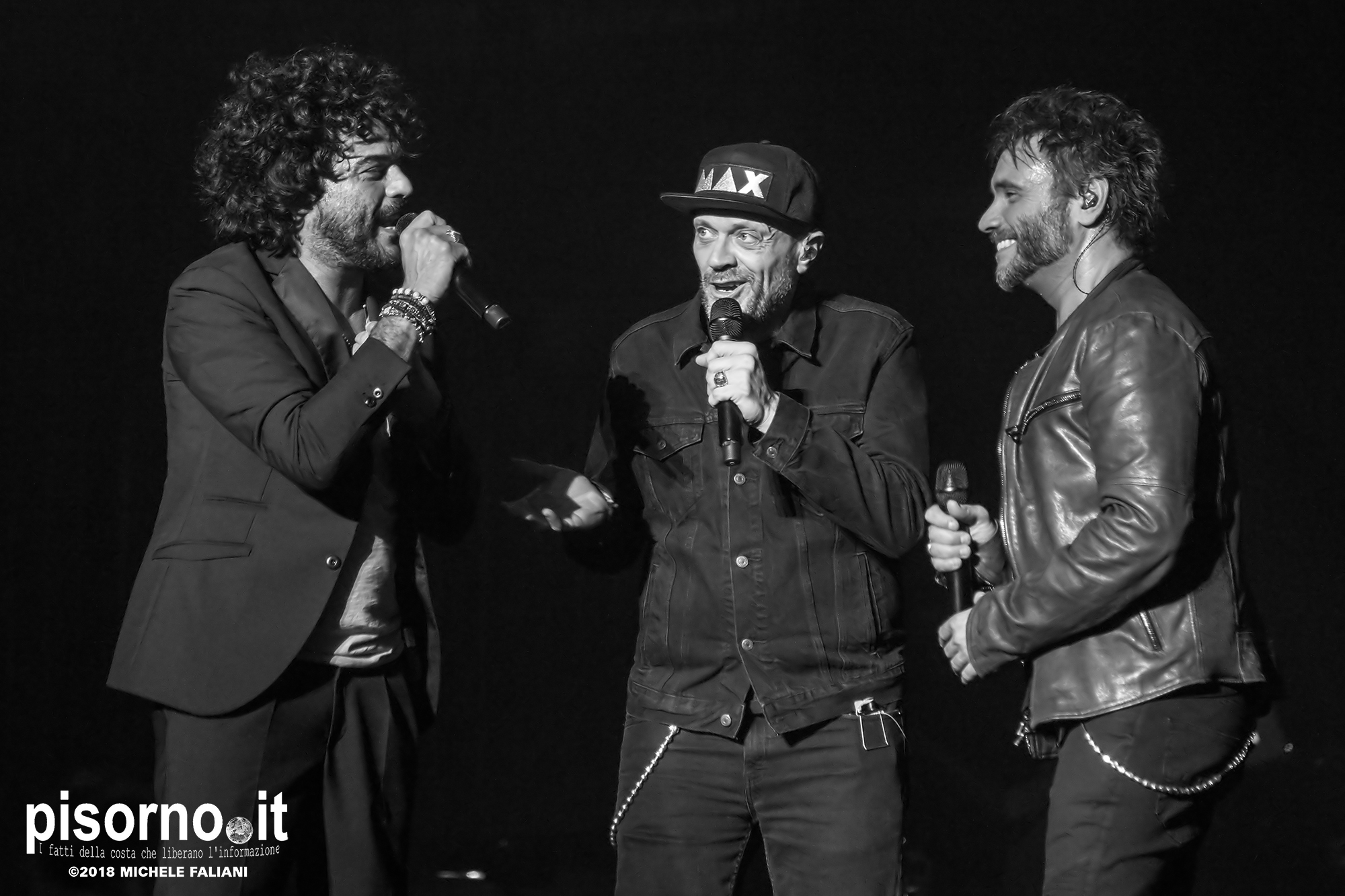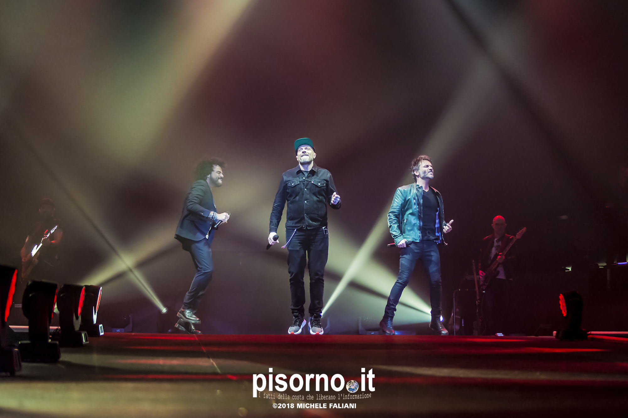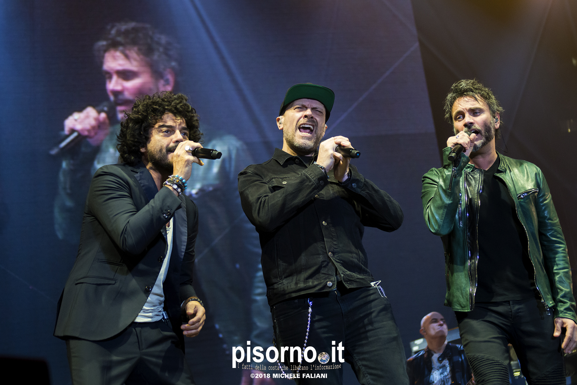 Ok, non saremo ai livelli degli storici tour di Dalla & De Gregori o di De André con la PFM, ma trovatemi tre artisti capaci di mettere insieme i loro numeri: Pezzali ha venduto più di 7 milioni di dischi, Renga ha quasi toccato il numero dei 2000 concerti (carrieria con i Timoria compresa), Nek è l’artista più suonato dalle radio ogni volta che pubblica un disco. Inevitabile che questo tour congiunto (idea nata durante le registrazioni di “Duri da battere”, singolo di Max Pezzali con ospiti i due amici) riscuotesse il successo che sta avendo. Anche al Modigliani Forum di Livorno sold out sfiorato e pubblico in delirio per quasi due ore mezzo, con uno dopo l’altro alcuni degli inni della musica pop dai ’90 in poi: Gli anni, Il mio giorno più bello nel mondo, Laura non c’è, Hanno ucciso l’Uomo Ragno e tante altre. Una bella festa che ha reso felici migliaia di persone. E non è questo lo scopo dei concerti dal vivo?