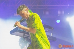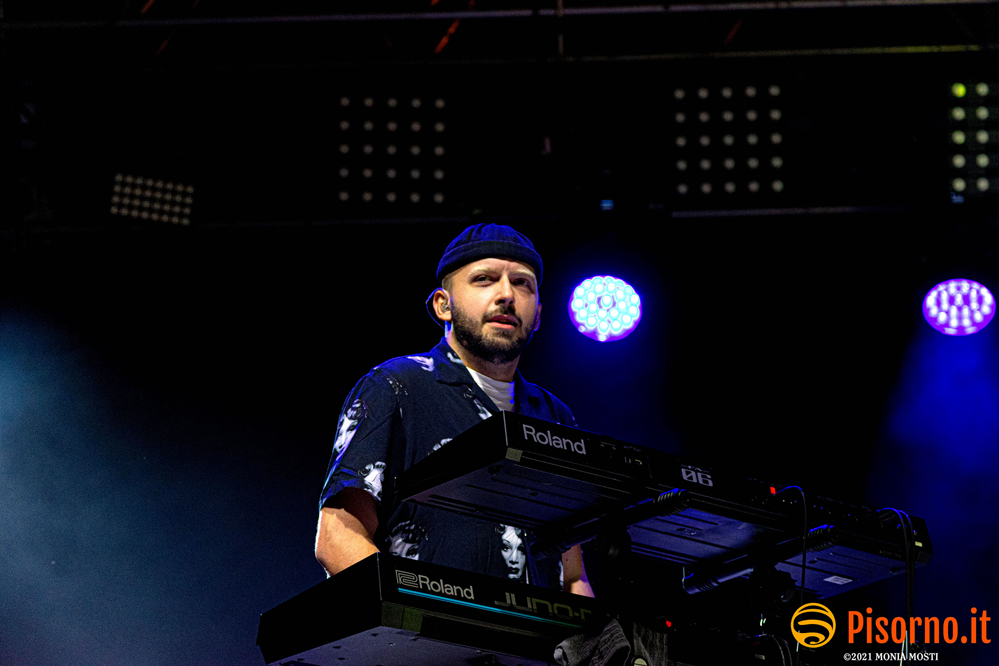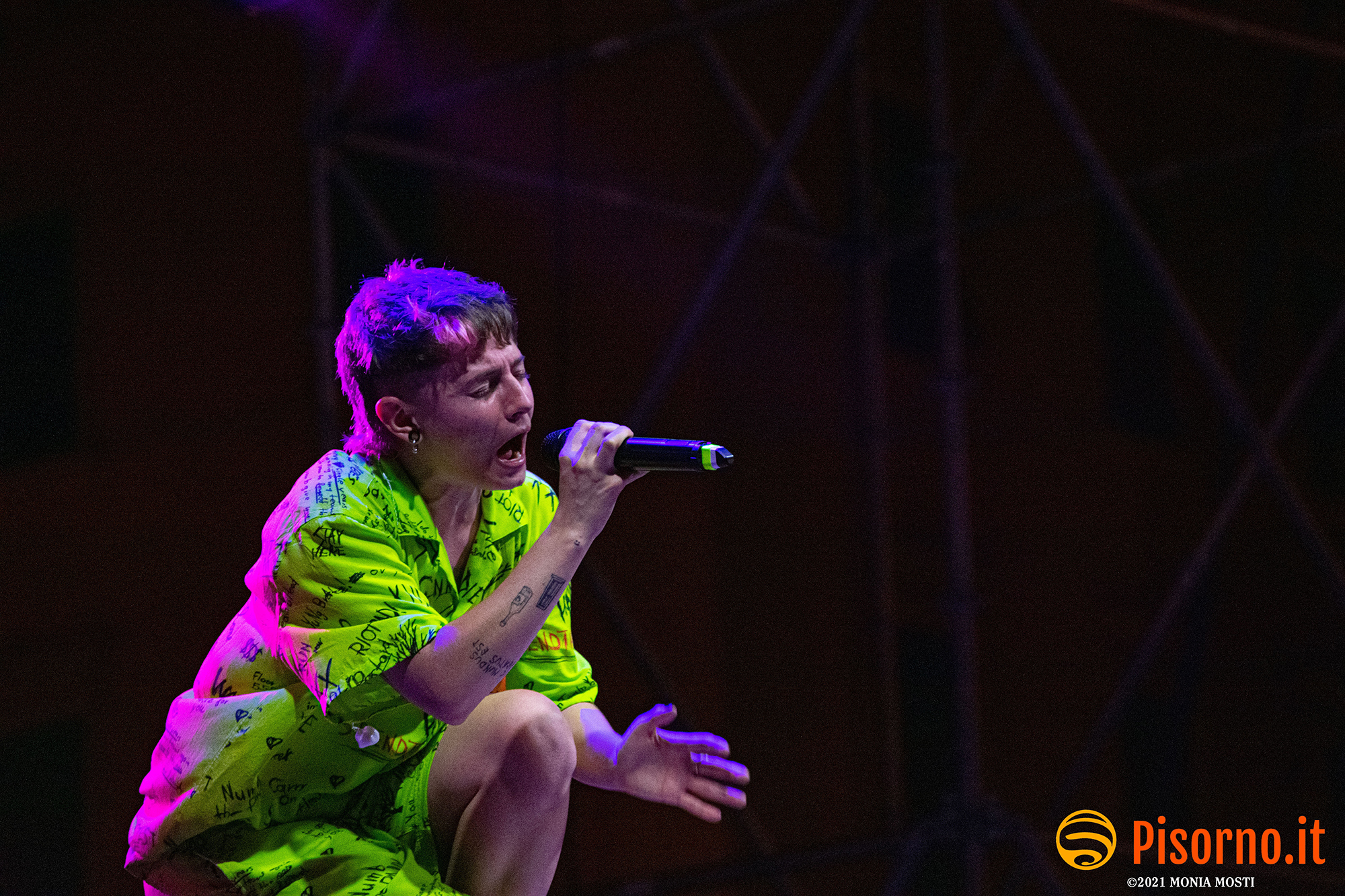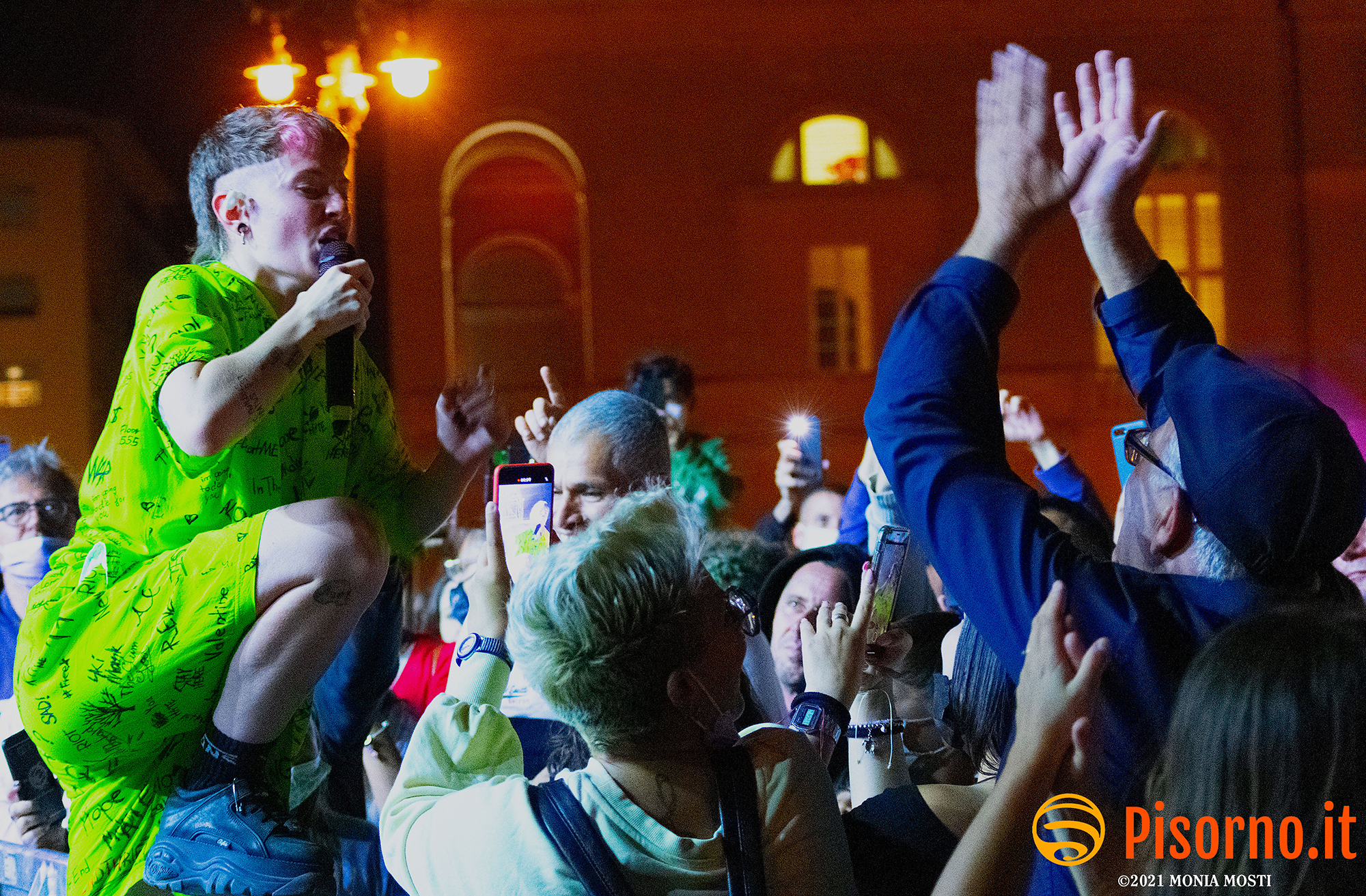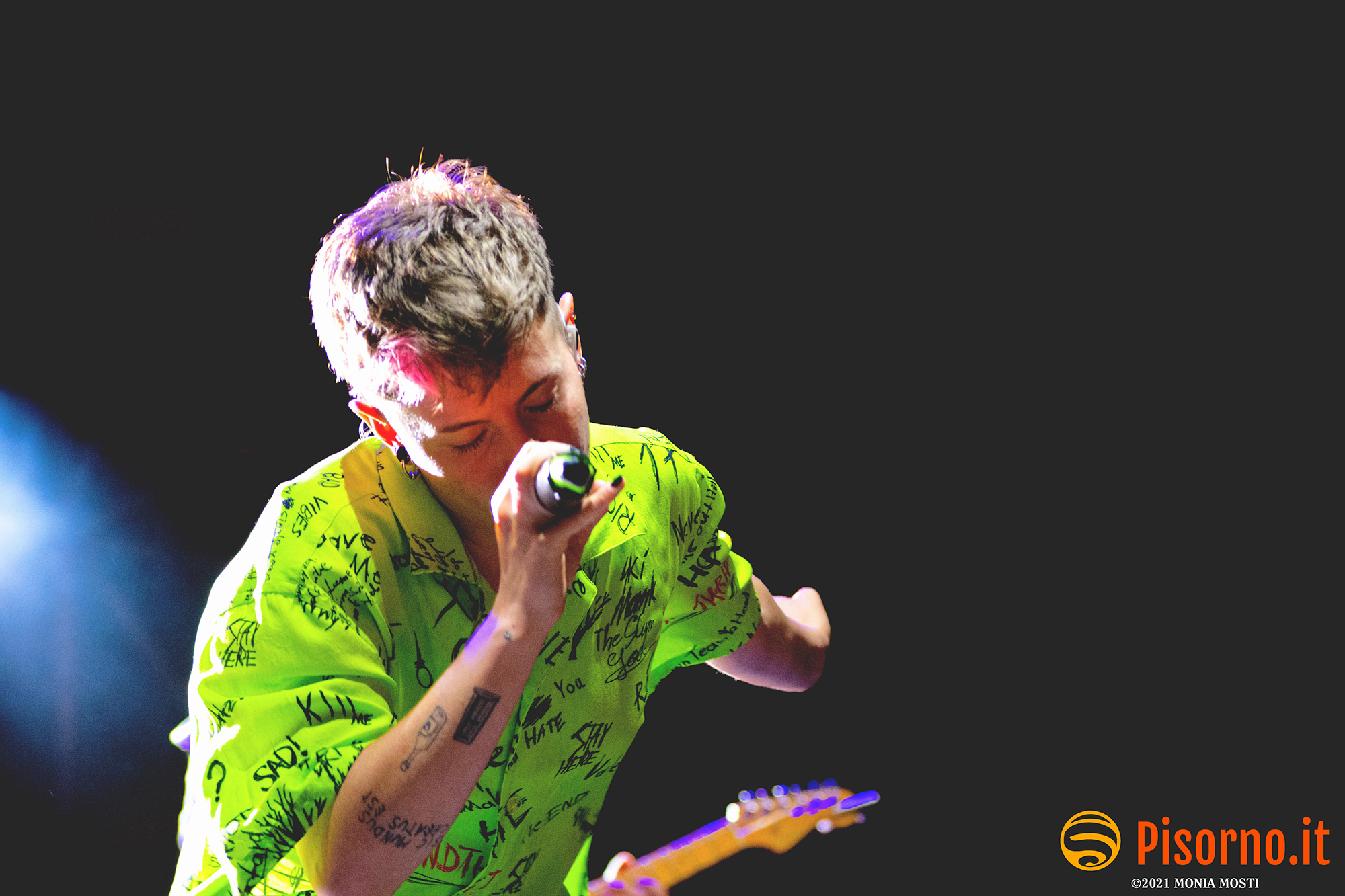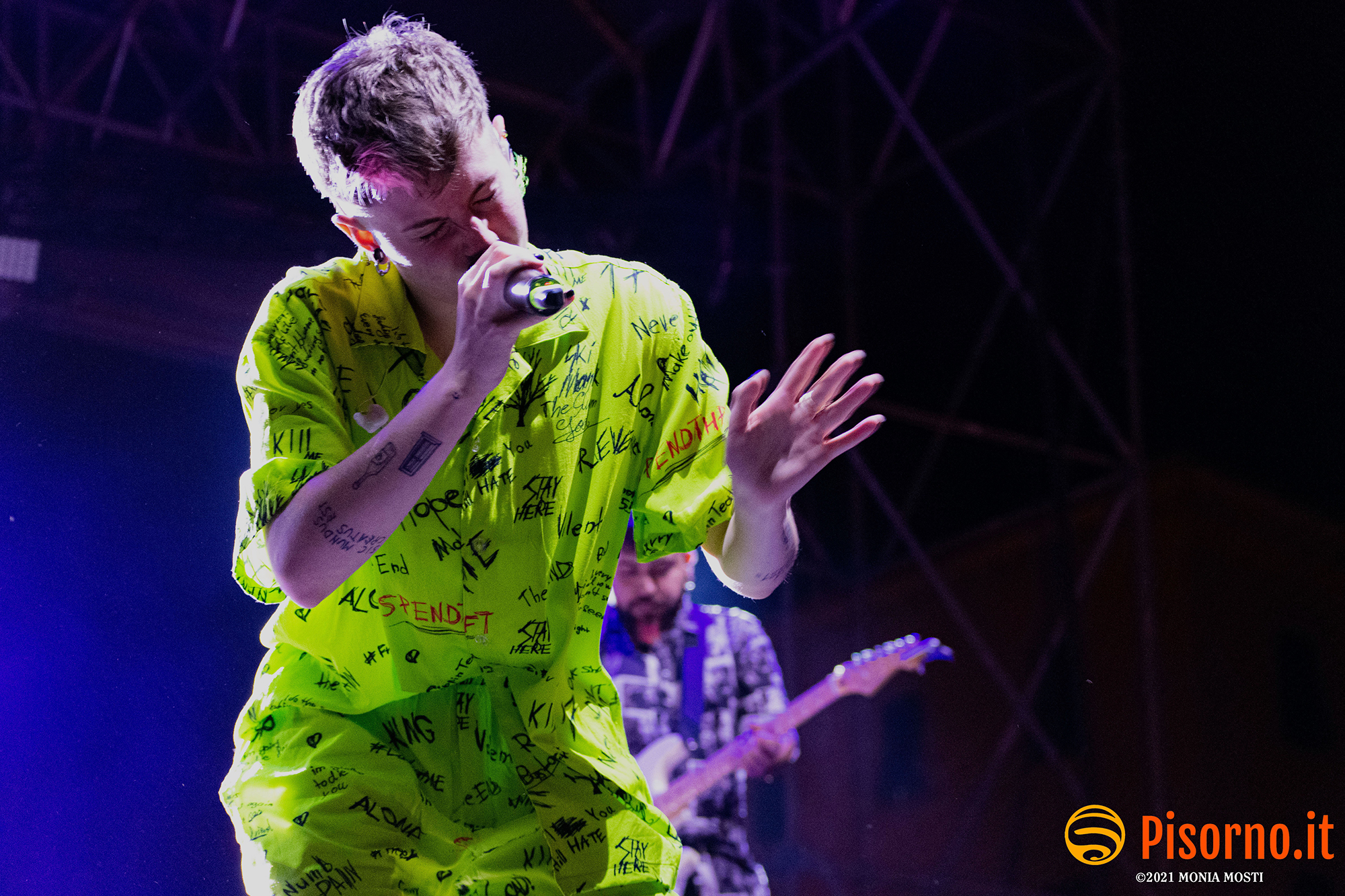 Arriva dalla platea Benedetta Alessi, la leader della band Melancholia, come a sottolineare l’importanza del rapporto tra lei ed il pubblico. I Melancholia aprono così il concerto per la seconda serata di Effetto Venezia 2021 in Piazza della Repubblica. La band diventata famosa per la sua partecipazione ad “X Factor 2020” si cimenta in cover come “Grounds” degli Idols e “Look at me” di XXXTentation fino a presentare il loro ultimo singolo “Medicine”. A metà serata la leader indiscussa invita il pubblico ad abbandonare gli smartphone per fare i video e ad usarli solo per accendere le torce perchè: “Quello che vedrete con i vostri occhi e non attraverso lo schermo di un telefono sarà qualcosa da ricordare” e così l’atmosfera diventa un qualcosa di magico da imprimere nella memoria durante l’esecuzione di “Alone”. Piacevole seppur discordante il contrasto tra l’energia di Benedetta e l’immobilismo surreale degli altri due componenti della band, ovvero Filippo Petruccioli (chitarra) e Fabio Azzarelli (tastiere – Synth). Il concerto si chiude con “Léon” e con un bis (Medicine) durante il quale il pubblico si stringe tutto attorno alla voce impeccabile di Benedetta.