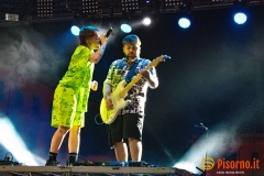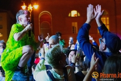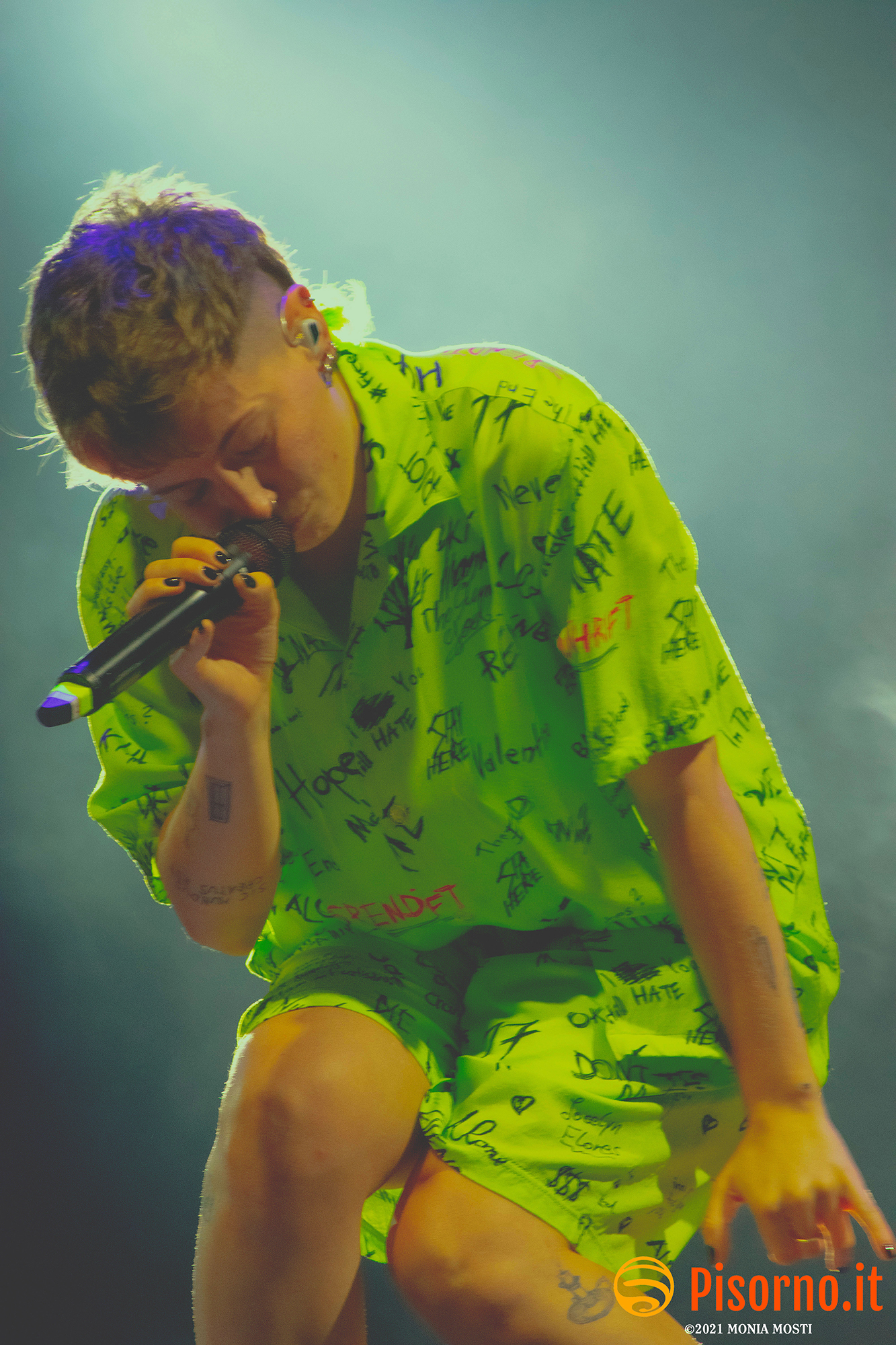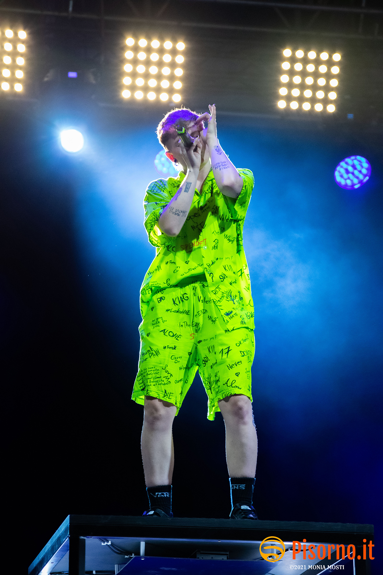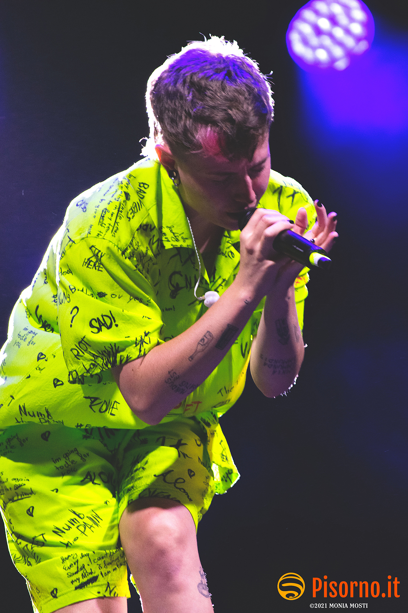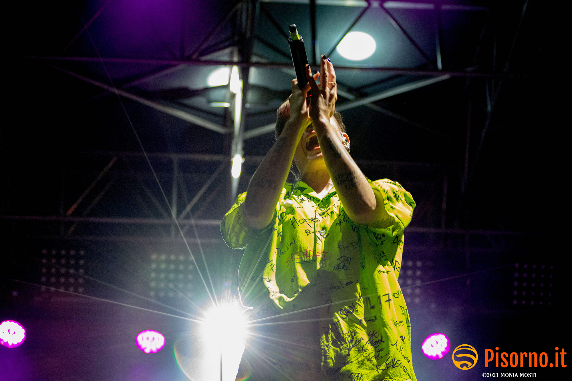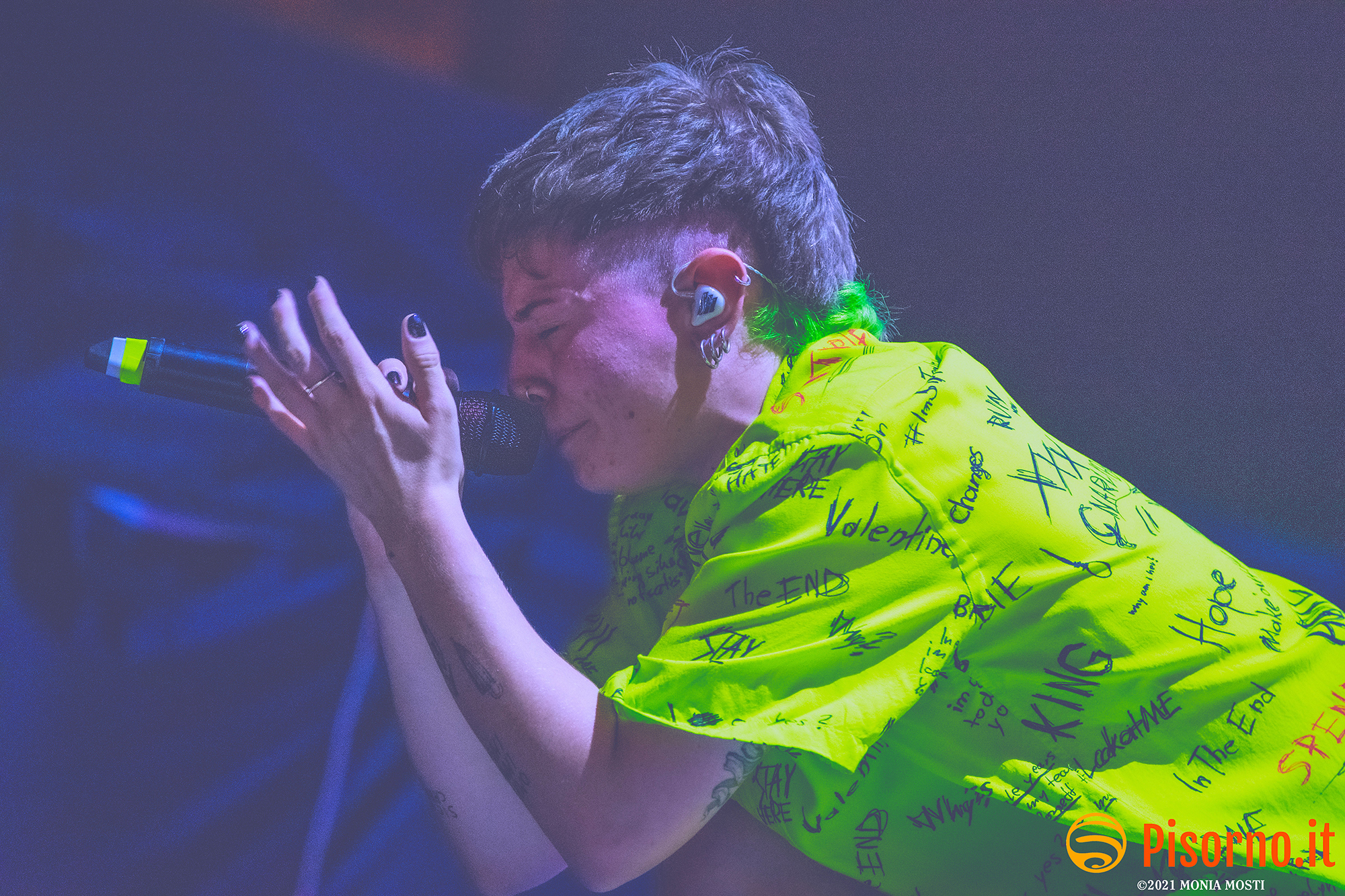 Arriva dalla platea Benedetta Alessi, la leader della band Melancholia, come a sottolineare l’importanza del rapporto tra lei ed il pubblico. I Melancholia aprono così il concerto per la seconda serata di Effetto Venezia 2021 in Piazza della Repubblica. La band diventata famosa per la sua partecipazione ad “X Factor 2020” si cimenta in cover come “Grounds” degli Idols e “Look at me” di XXXTentation fino a presentare il loro ultimo singolo “Medicine”. A metà serata la leader indiscussa invita il pubblico ad abbandonare gli smartphone per fare i video e ad usarli solo per accendere le torce perchè: “Quello che vedrete con i vostri occhi e non attraverso lo schermo di un telefono sarà qualcosa da ricordare” e così l’atmosfera diventa un qualcosa di magico da imprimere nella memoria durante l’esecuzione di “Alone”. Piacevole seppur discordante il contrasto tra l’energia di Benedetta e l’immobilismo surreale degli altri due componenti della band, ovvero Filippo Petruccioli (chitarra) e Fabio Azzarelli (tastiere – Synth). Il concerto si chiude con “Léon” e con un bis (Medicine) durante il quale il pubblico si stringe tutto attorno alla voce impeccabile di Benedetta.