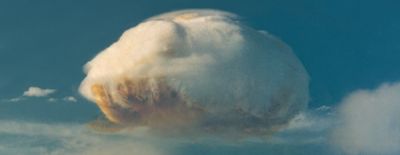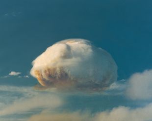 La mostra infatti si ispira ad una poco conosciuta storia della città di Las Vegas. A partire dagli anni quaranta fino agli anni sessanta dello scorso secolo, una delle attrazioni di Las Vegas era la possibilità di guardare i test delle bombe atomiche che avvenivano nel deserto a poche miglia dalle terrazze degli hotel. I turisti erano soliti fare delle fotografie di queste drammatiche e potenti scene trasformandole in souvenir. Alberto Sinigaglia ha ricercato il materiale iconografico riguardante l’invenzione e lo sviluppo della bomba atomica contenuto nell’archivio immagini dei laboratori scientifici di Los Alamos. Esplorando questa vasta collezione di immagini e film, e agendo su di loro allo stesso modo di un turista, l’autore se ne è appropriato, restituendoci, attraverso la loro manipolazione o innocue, morbide, misteriose nuvole sospese nel cielo, od oggetti abbastanza comuni, resi straordinari dall’essere fotografati e caricati di un potere scaramantico. L’autore ci mostra una fotografia quale privilegiato deposito di valori sociali e culturali in un mondo saturo di immagini, invitandoci ad essere consapevoli di ciò che vediamo, di come lo vediamo, e di come le immagini scatenano e danno una forma alle nostre emozioni e alla nostra comprensione del mondo.