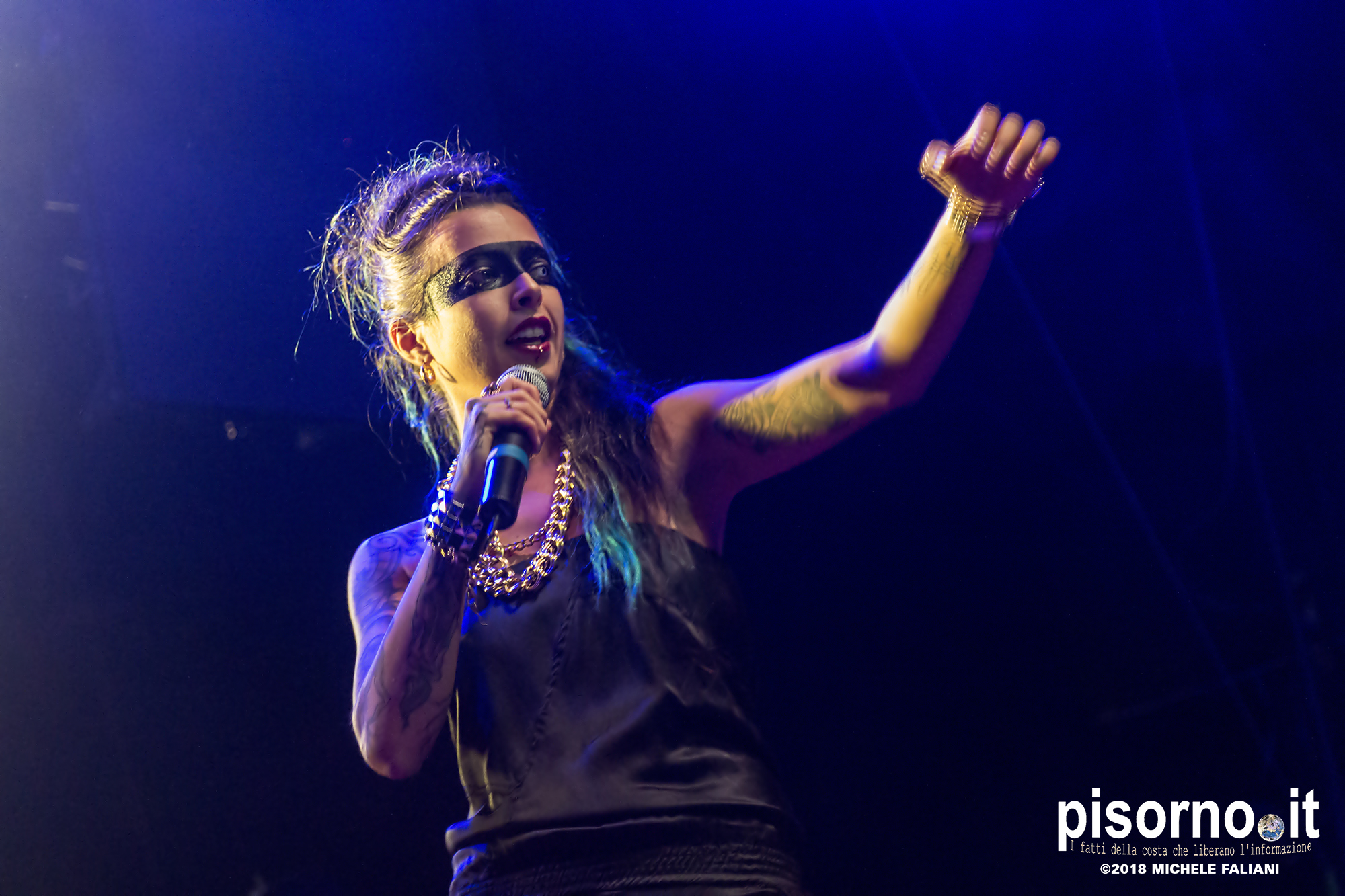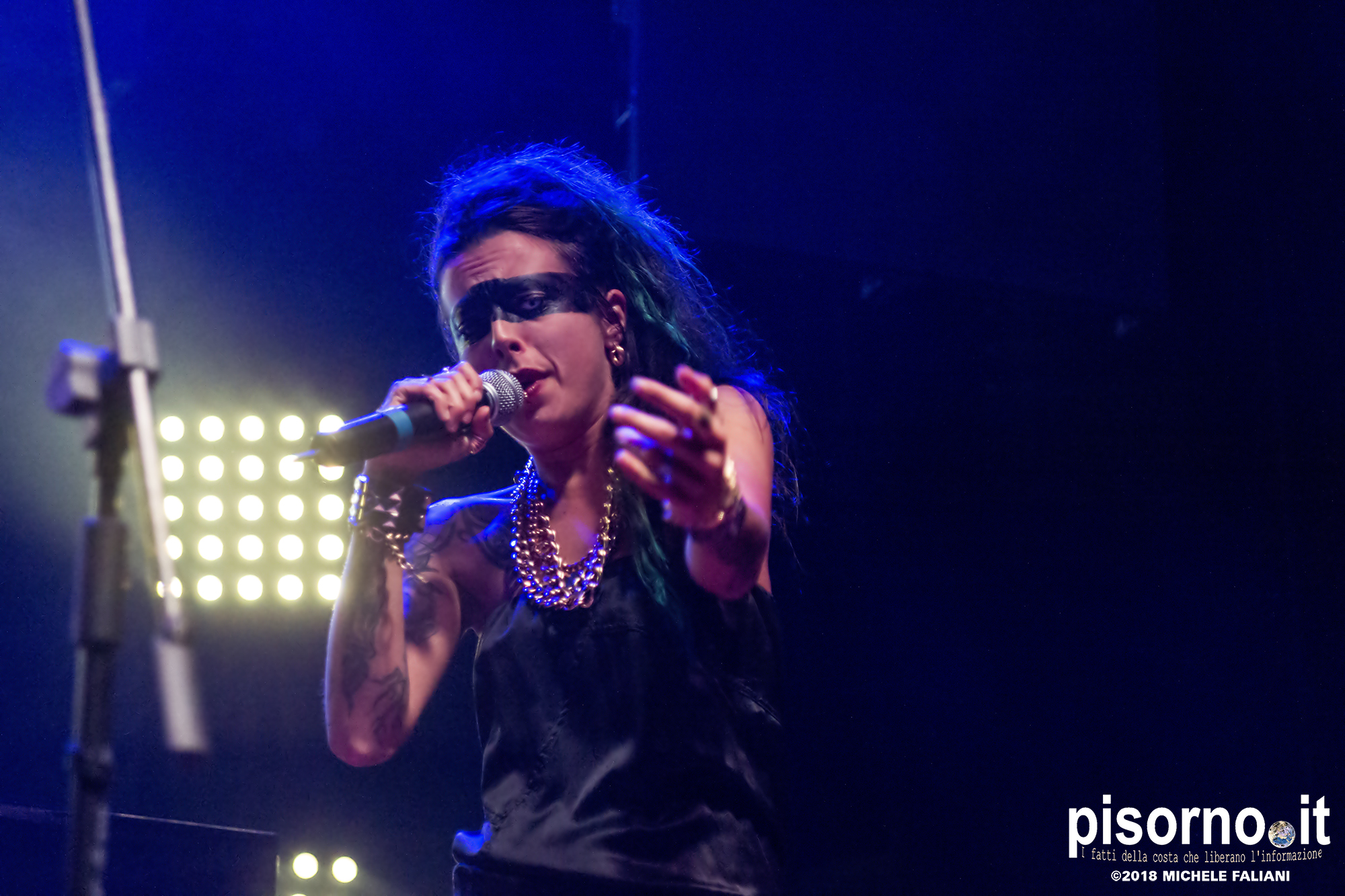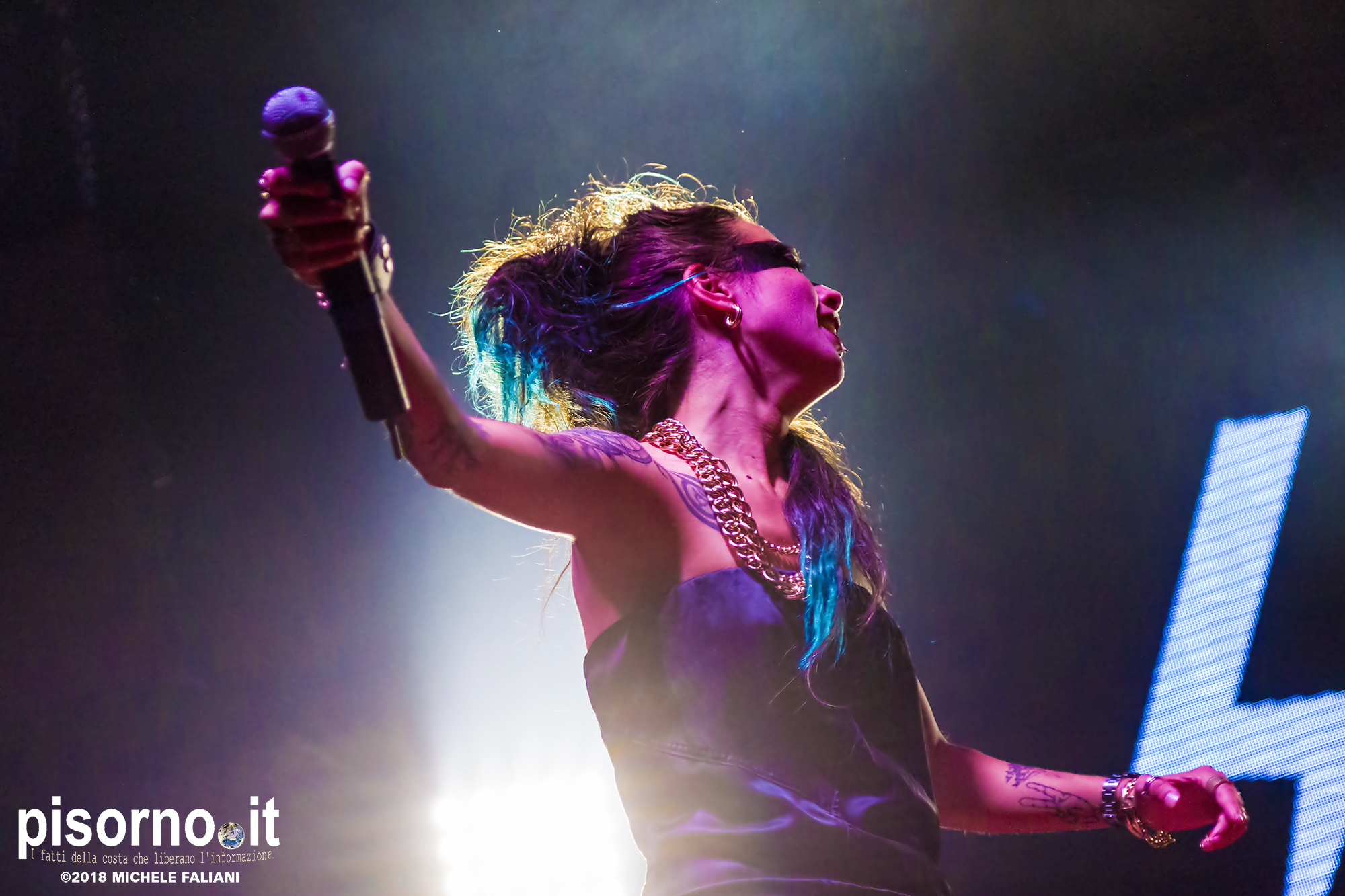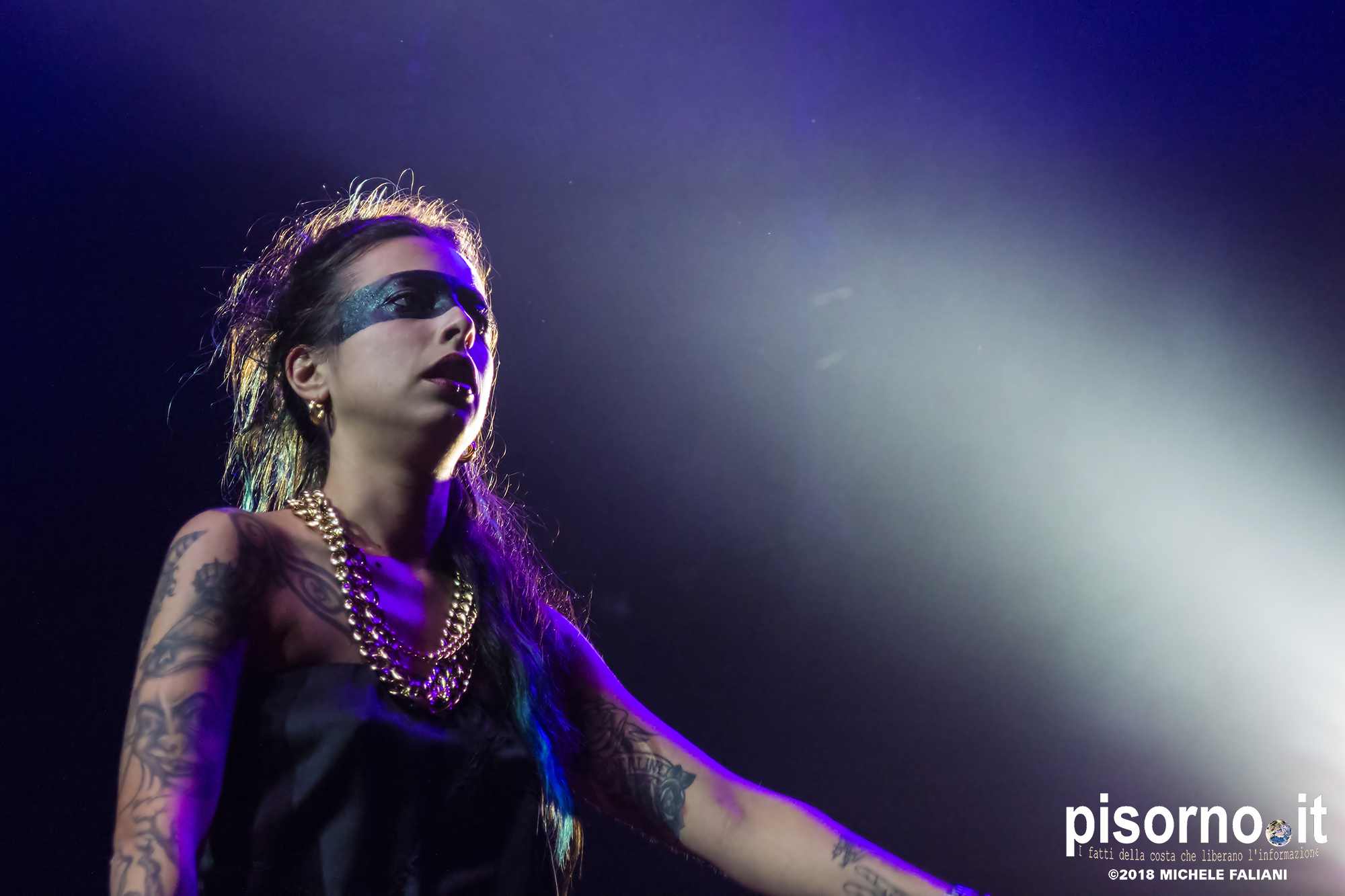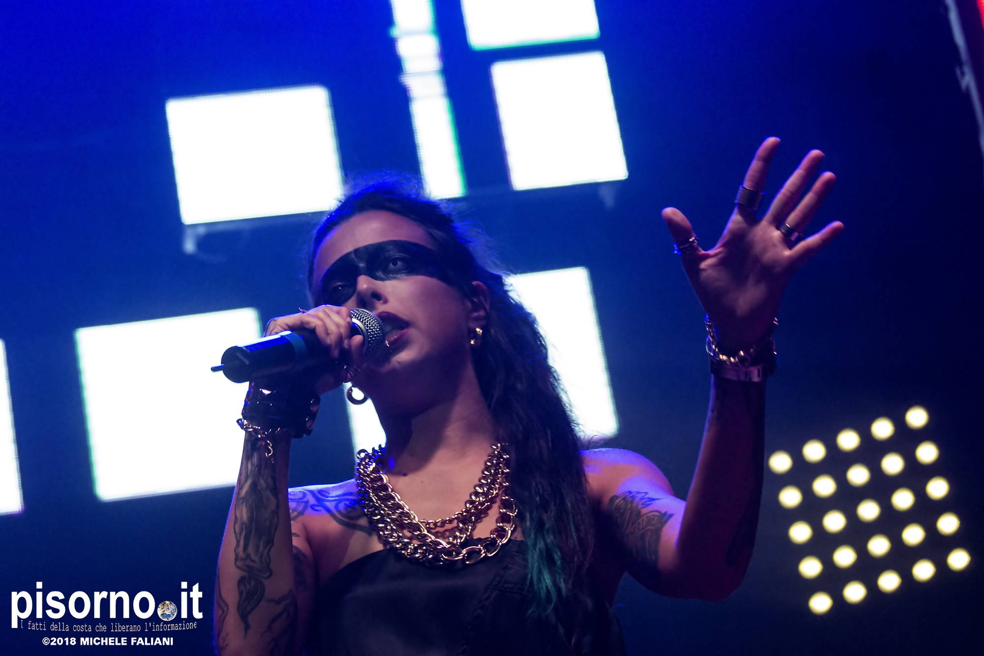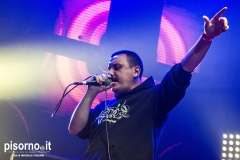 Ad aprire il concerto è stata Supersønica, rapper livornese attiva da un paio d’anni. Una mezz’ora sul palco da navigata performer (nonostante sia attiva solo da un paio d’anni) nella quale ha eseguito quasi tutti le canzoni del suo repertorio, per finire il set con l’ultimo singolo “Inframondo”, sicuramente la sua canzone più matura e intimista. Anche il suo, per chi ancora non la conoscesse, è un nome da tenere d’occhio.