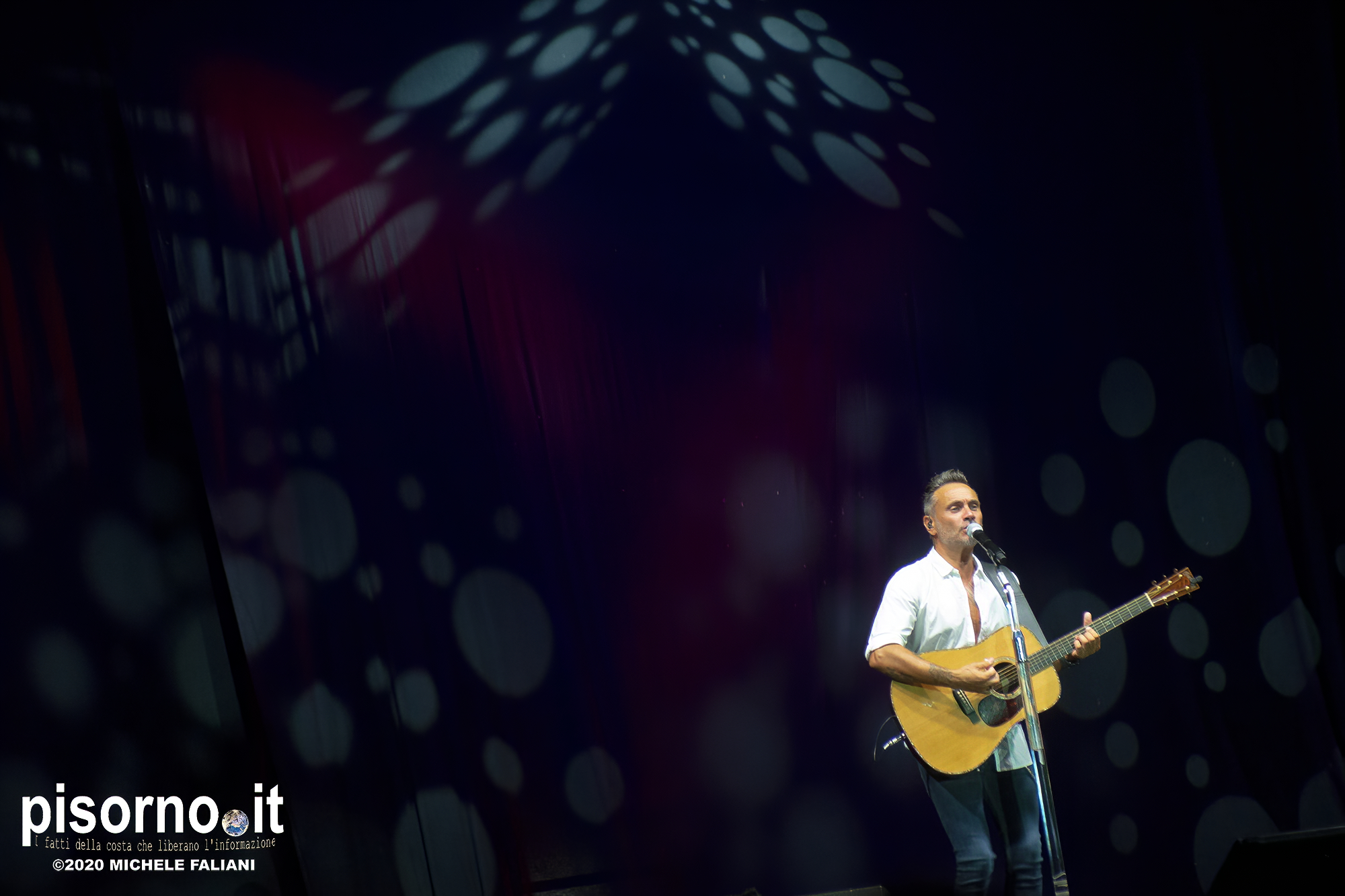 La serata finale, come detto, è coincisa con il concerto voce e chitarra di Nek, che ha attirato giovani e giovanissimi nel giardino di Castello Pasquini, sfiorando il sold-out. Un concerto che ha visto il cantautore di Sassuolo cantare la propria storia musicale in ordine cronologico, partendo dalla prima canzone imparata con la chitarra (di John Denver), per arrivare ai brani dell’ultimo album, pubblicato proprio alla fine del lockdown. Un totale di 30 canzoni in poco più di un’ora e mezzo, alcune appena accennate, altre legate insieme da un medley, altre ancora (i celeberrimi cavalli di battaglia “Laura non c’è” e “Se una regola c’è” su tutti) eseguite integralmente ma come detto solo con il supporto della chitarra elettrica. Un Nek a nudo per i suoi fans più incalliti, che racconta e si racconta mettendo una dopo l’altra le canzoni che hanno segnato indelebilmente il pop italiano degli ultimi 25 anni. Uno show che ha messo in evidenza (al di là dei gusti personali) le grandissime dote vocali di Filippo nonché quelle di chitarrista. E il pubblico, non solo quello femminile, ha gradito e anche parecchio.